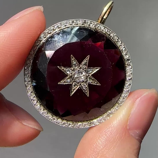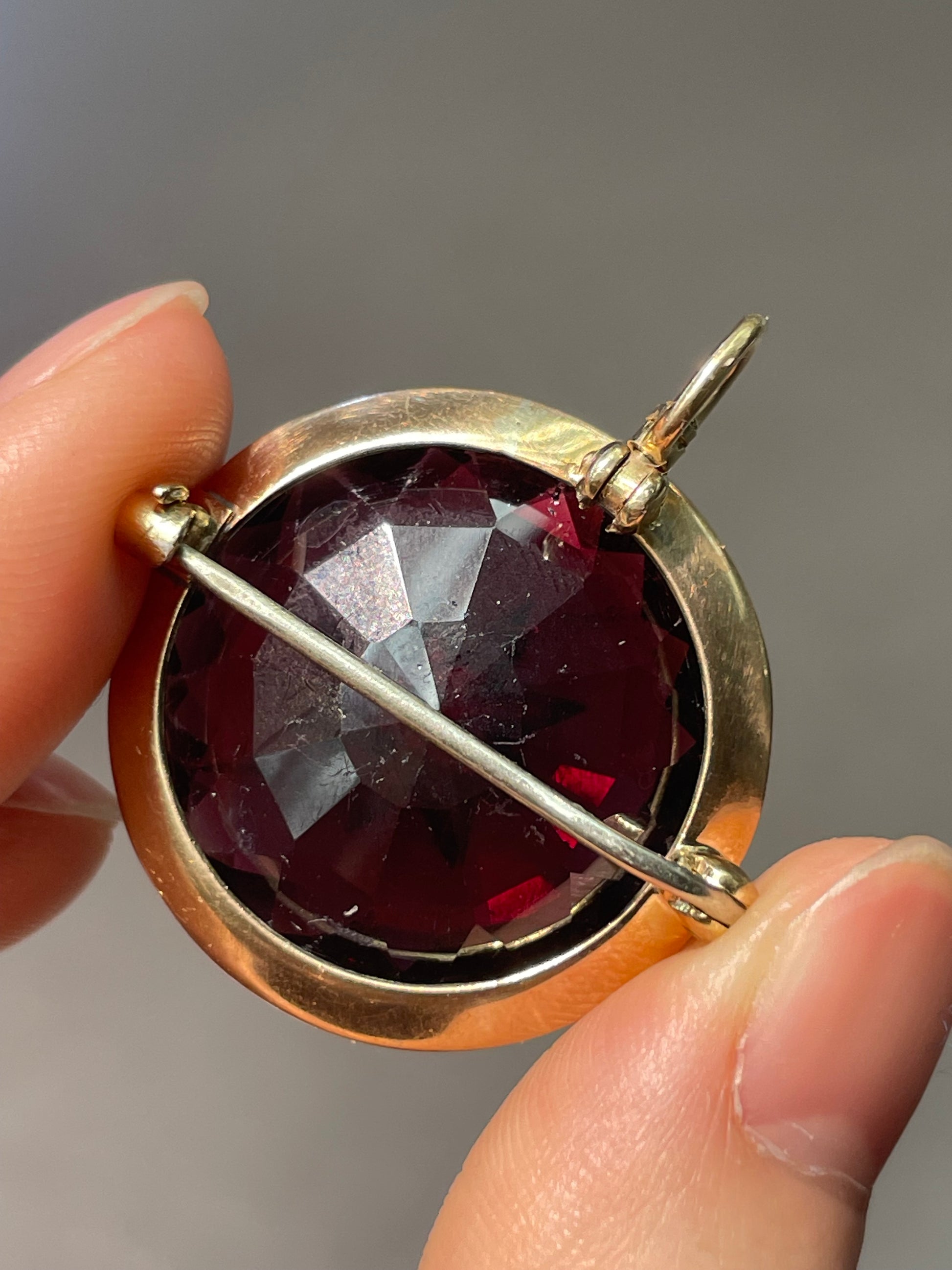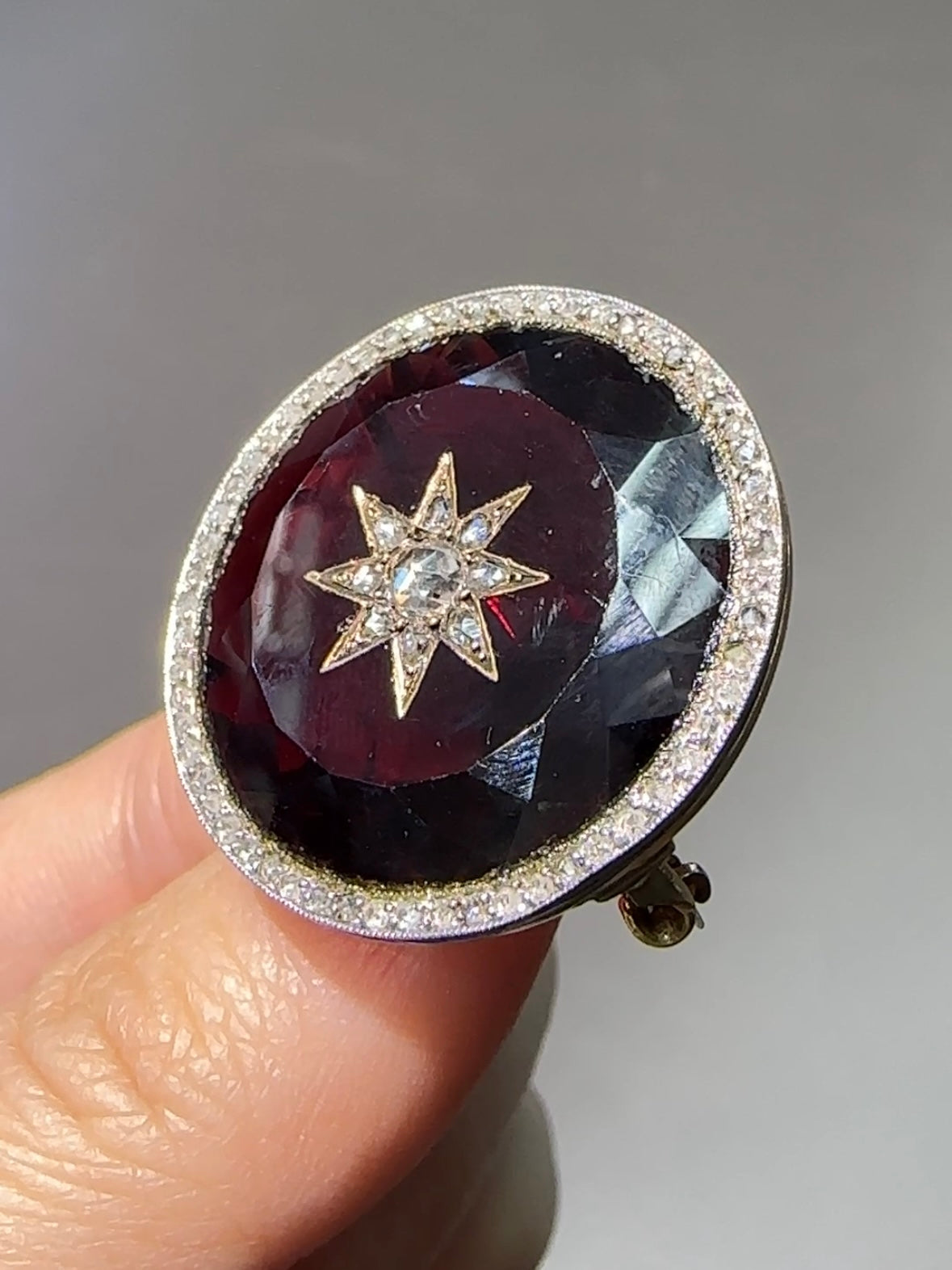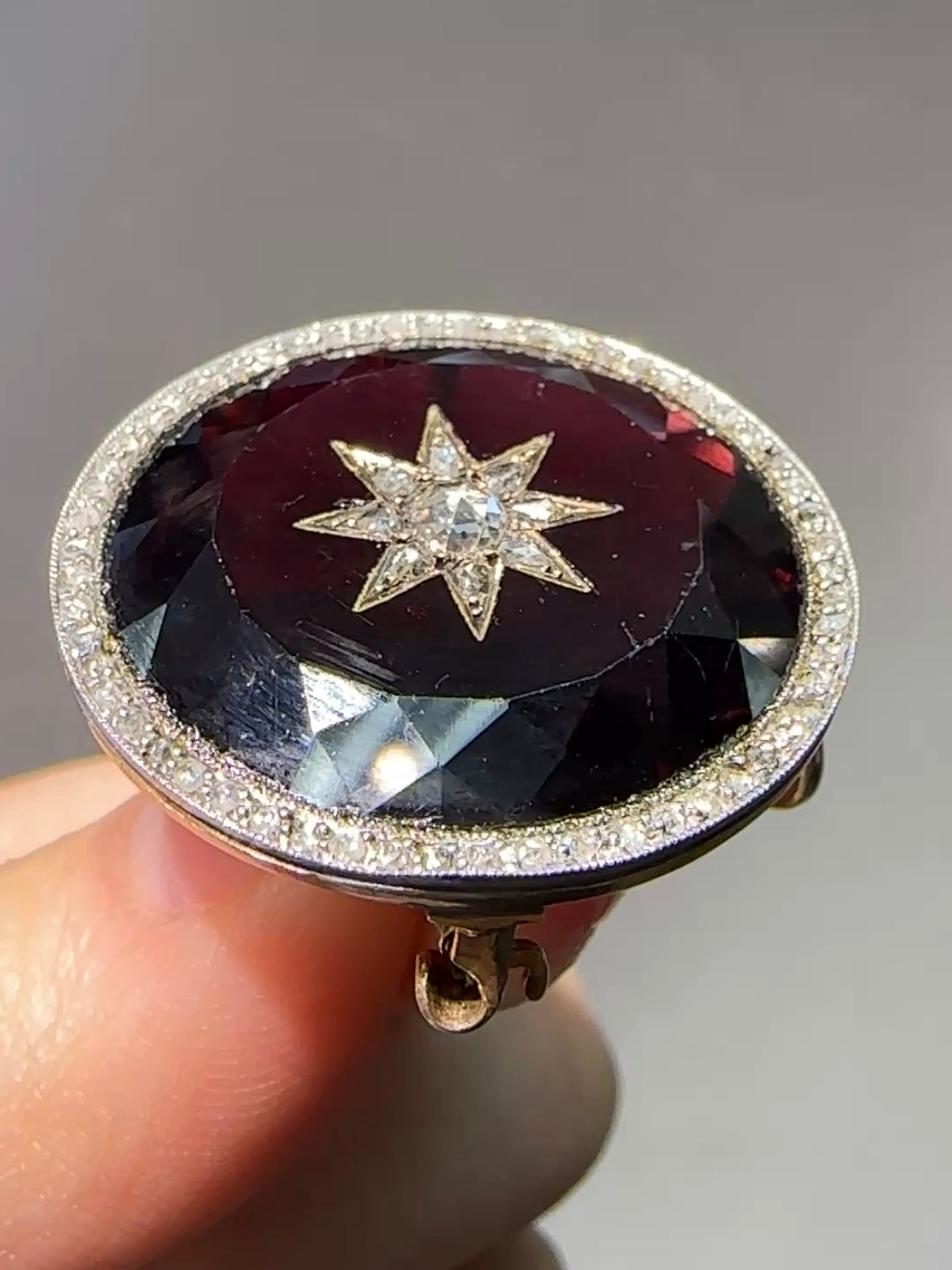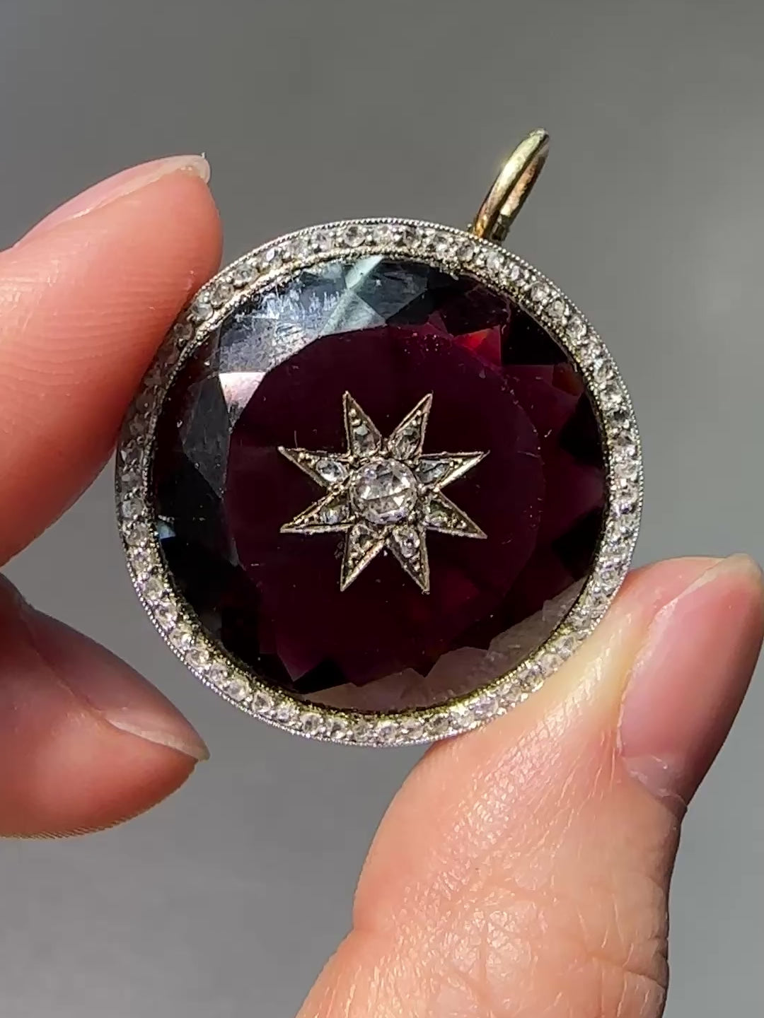 古董 14K 黄金钻石石榴石星光吊坠胸针