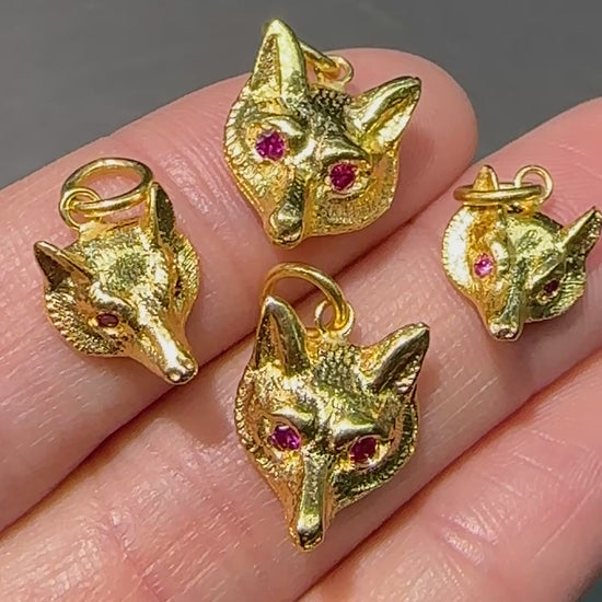 这款令人惊叹的古董狐狸吊饰由 14K 黄金制成,狐狸头细节精美,体现了这种聪明、活泼的动物的精神。从警觉的耳朵到精致的皮毛,再到迷人的红宝石眼睛,每一个小细节都设计得引人注目,让人心动不已!