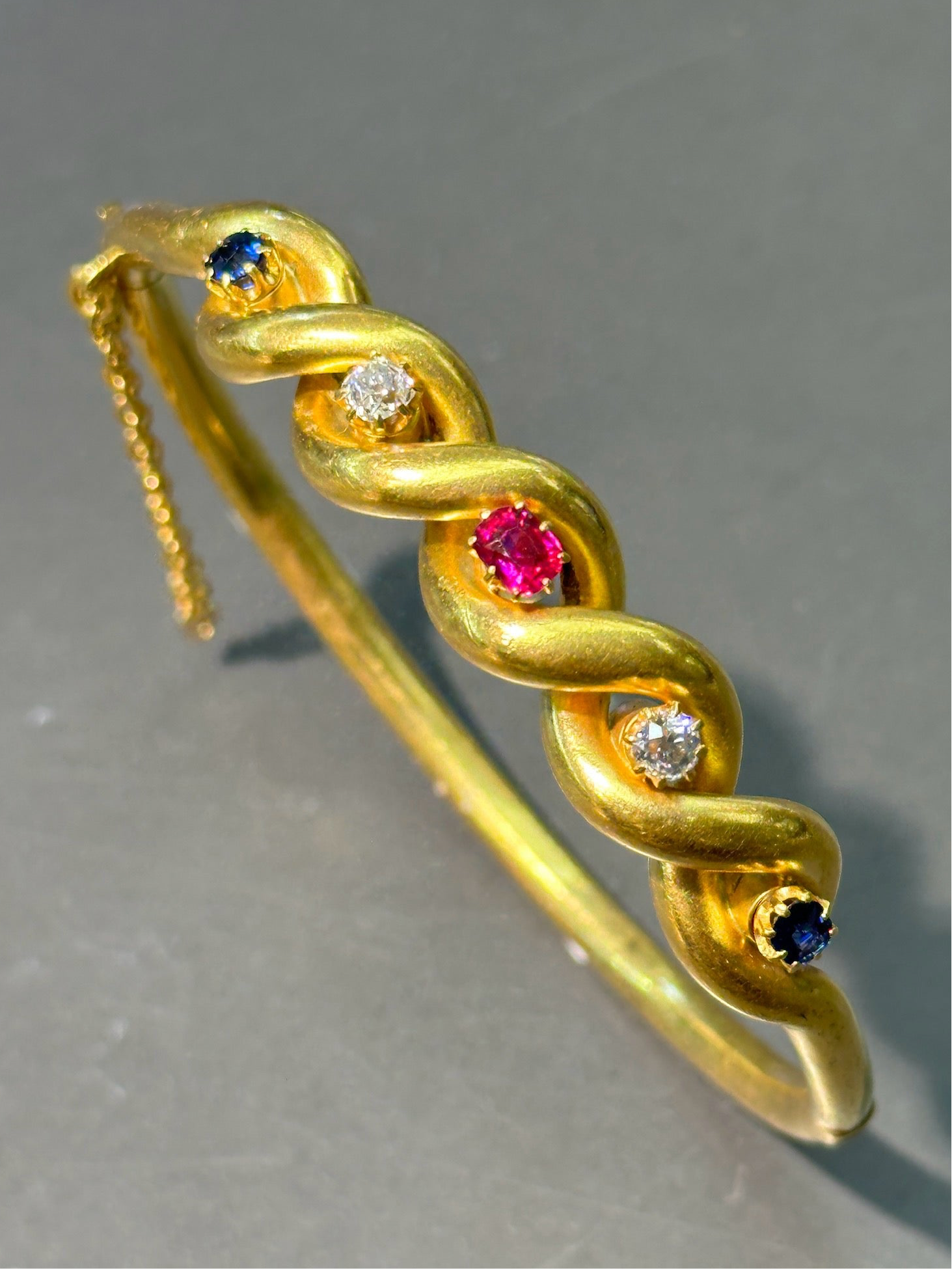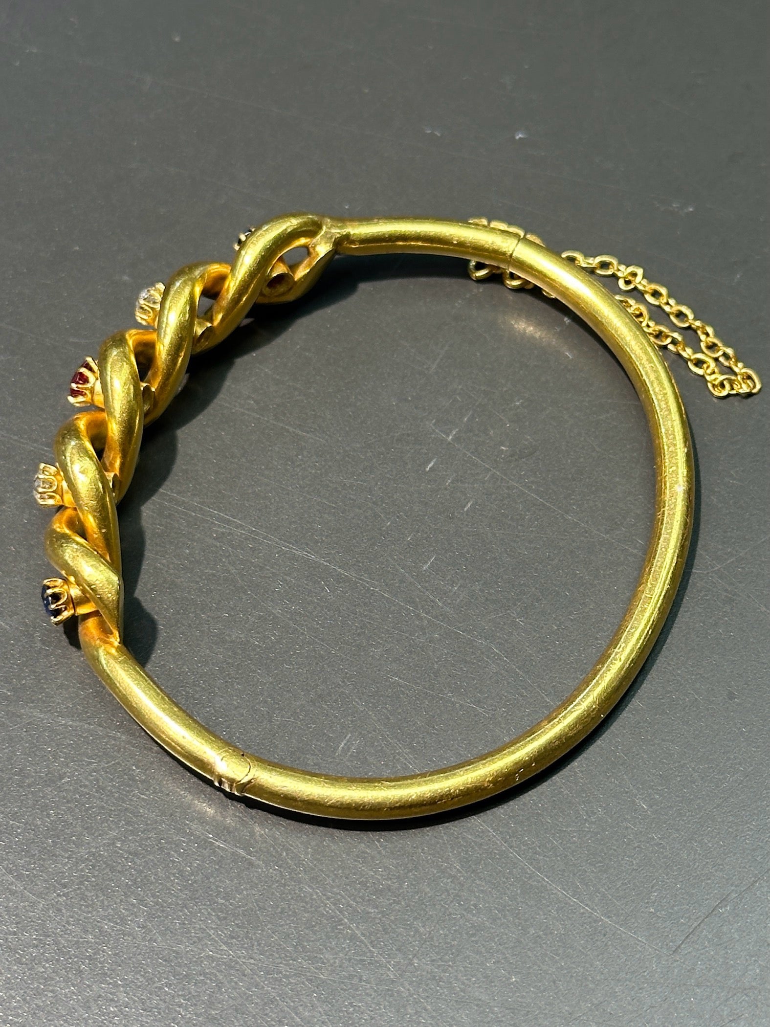 古董 18K 金天然蓝宝石钻石红宝石手镯
