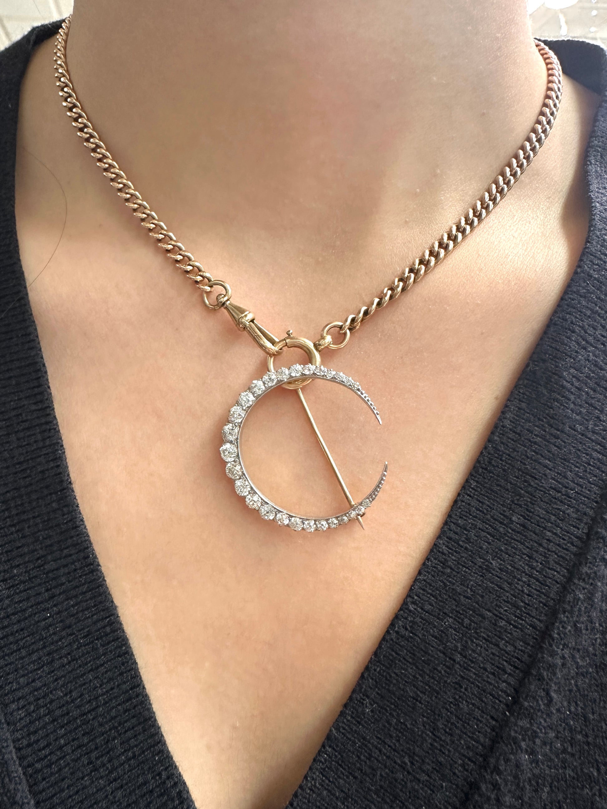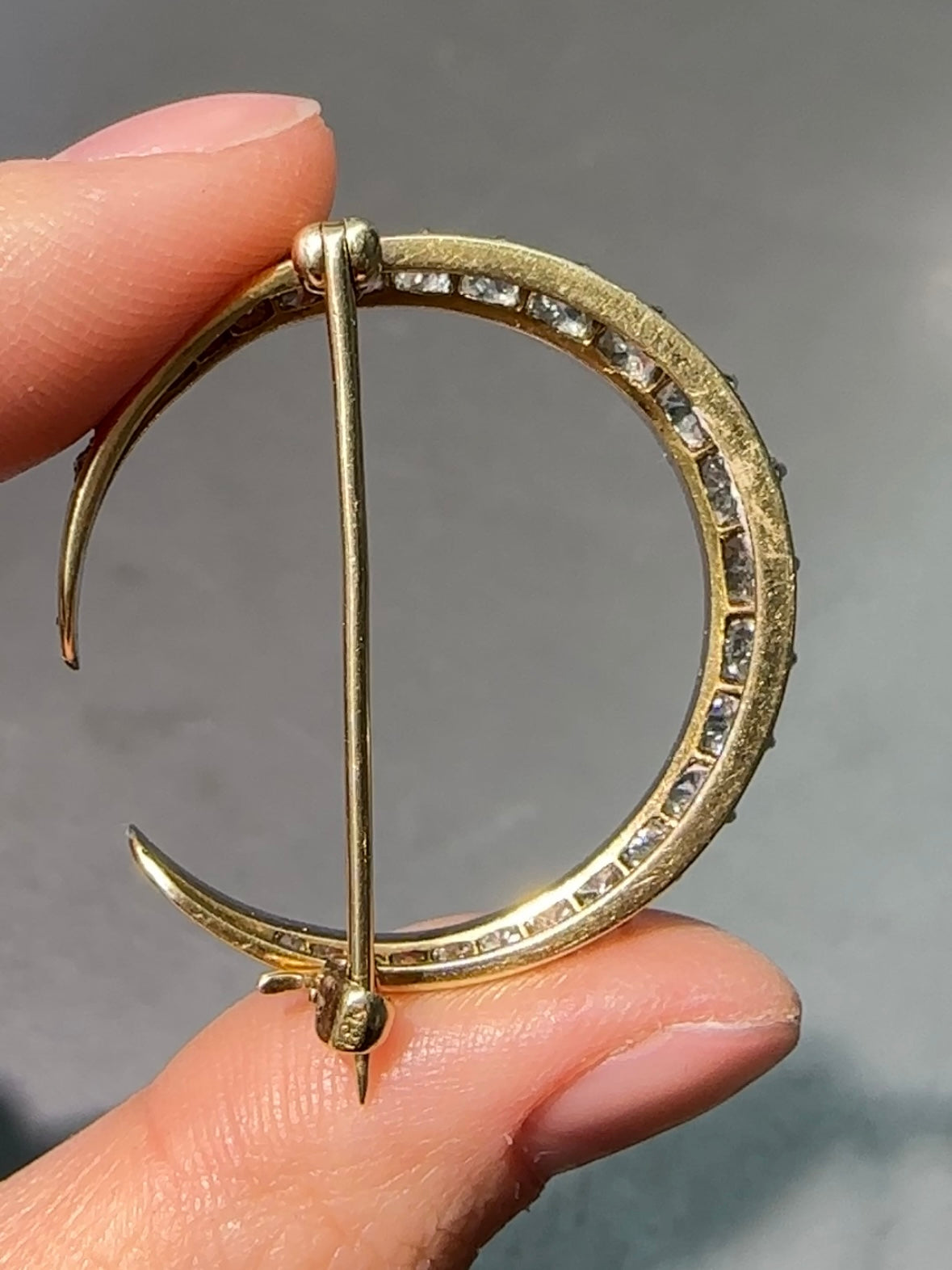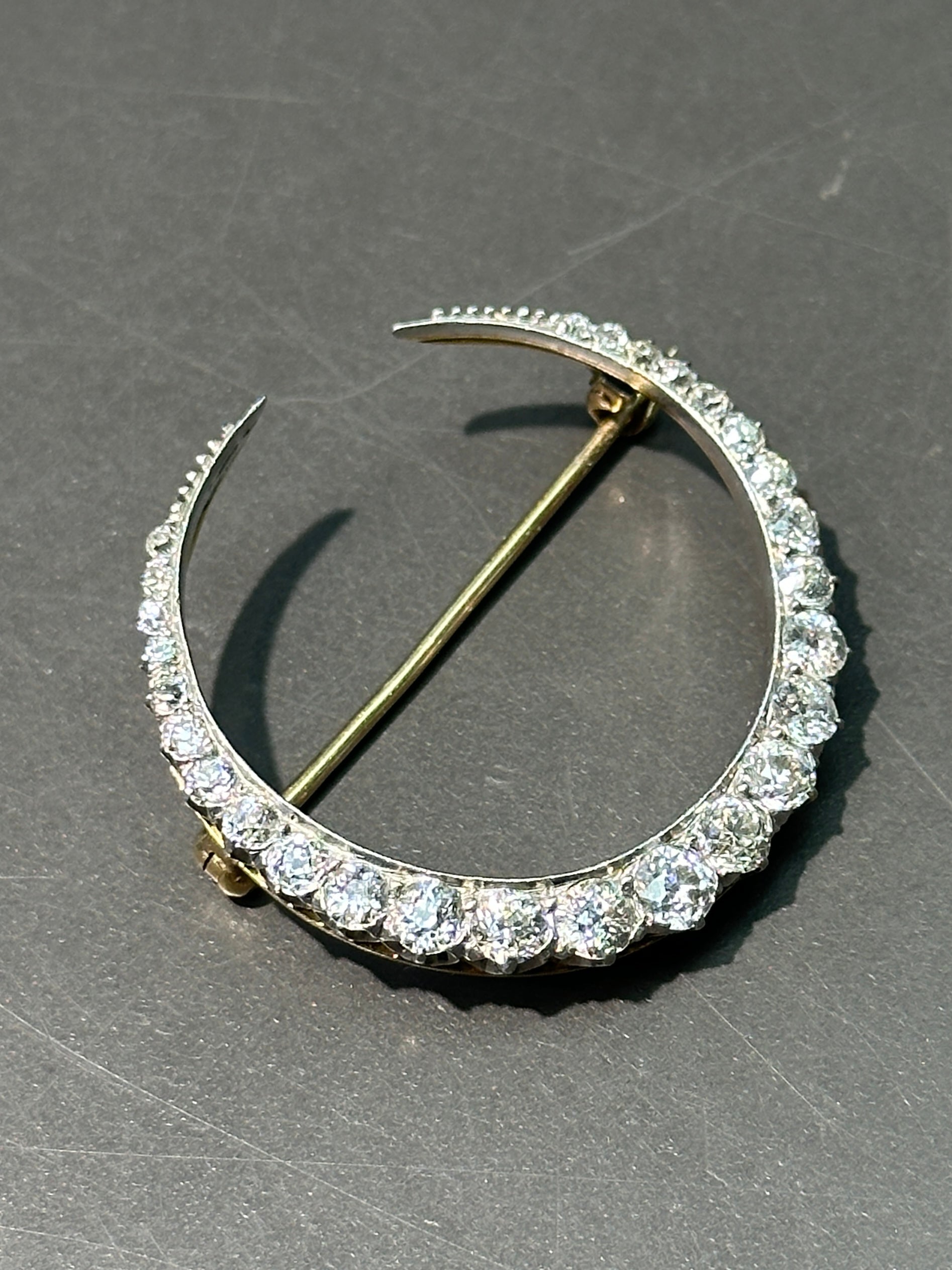古董 18K 黄金铂金 2.80 CTW 钻石新月胸针