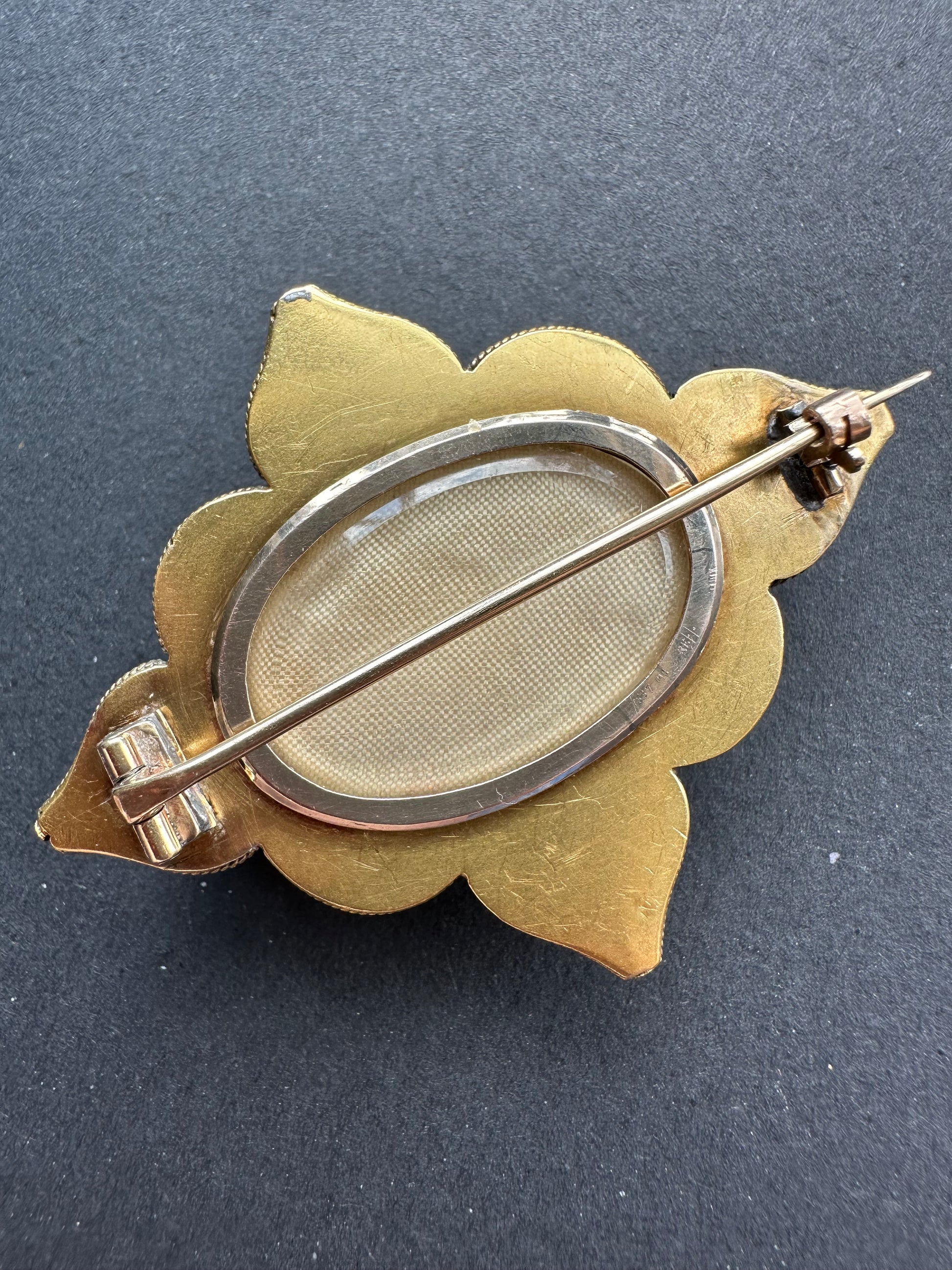 可追溯到维多利亚时代,一枚令人惊叹的 14K 金胸针,中央镶嵌有 7 颗闪闪发光的白色老矿切割钻石,镶嵌在甜美的毛茛花托上,周围环绕着八颗有光泽的白色天然珍珠。打开小盒,可以看到背面有一个隐藏的隔层。