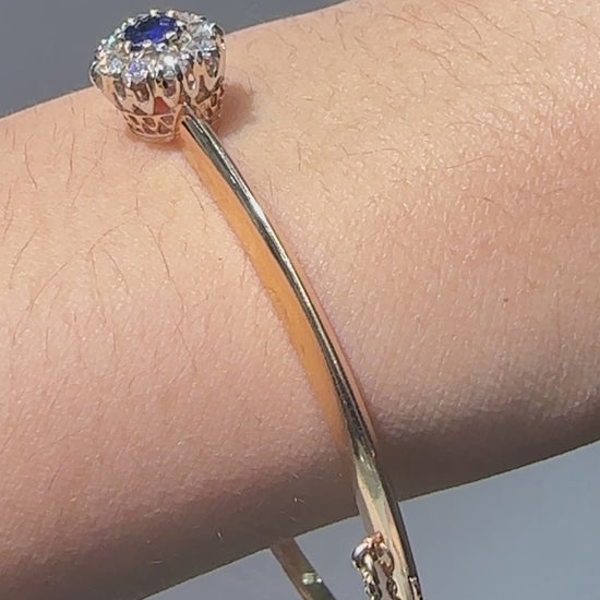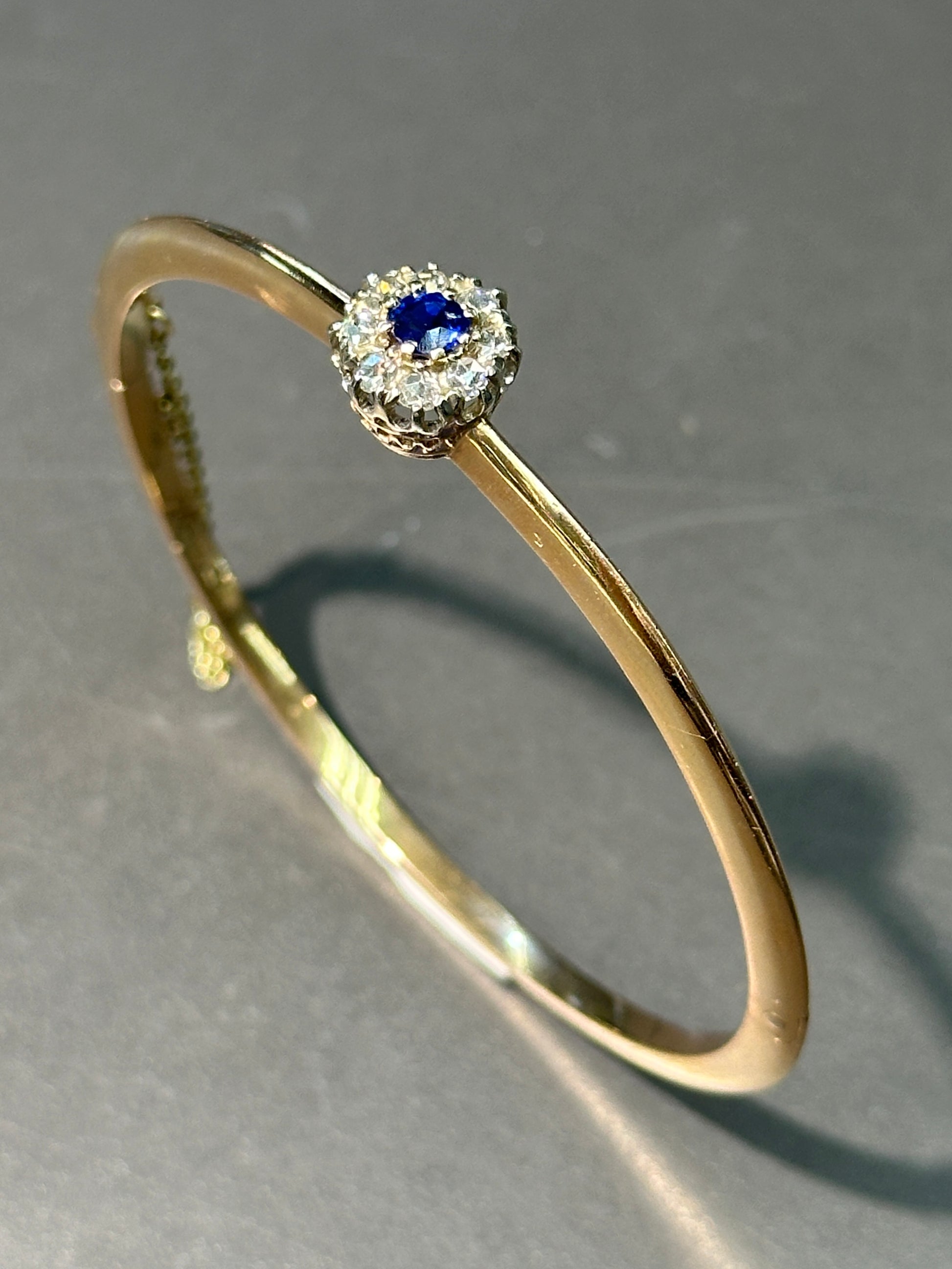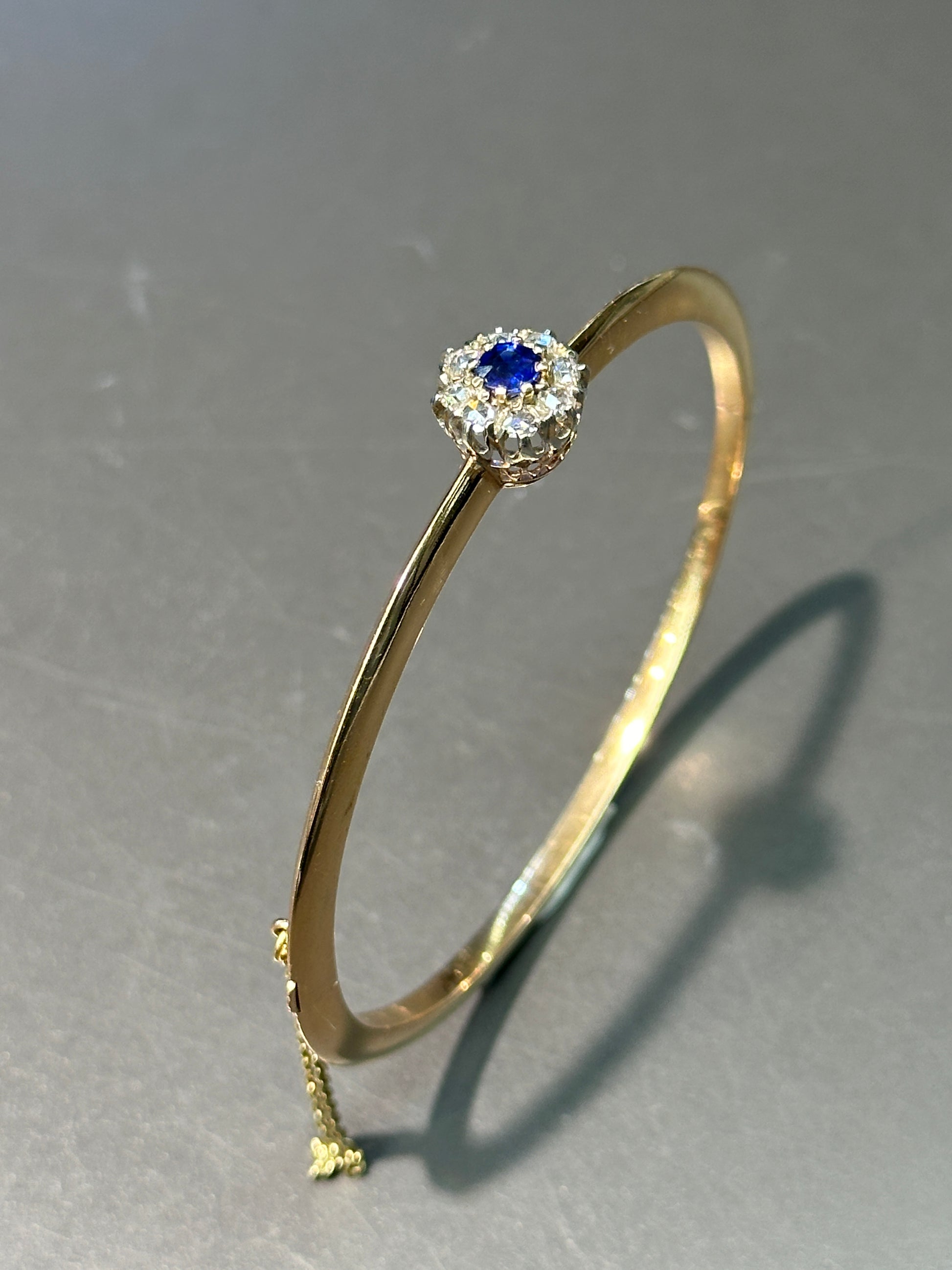 古董法国 18K 金天然蓝宝石钻石光环手镯