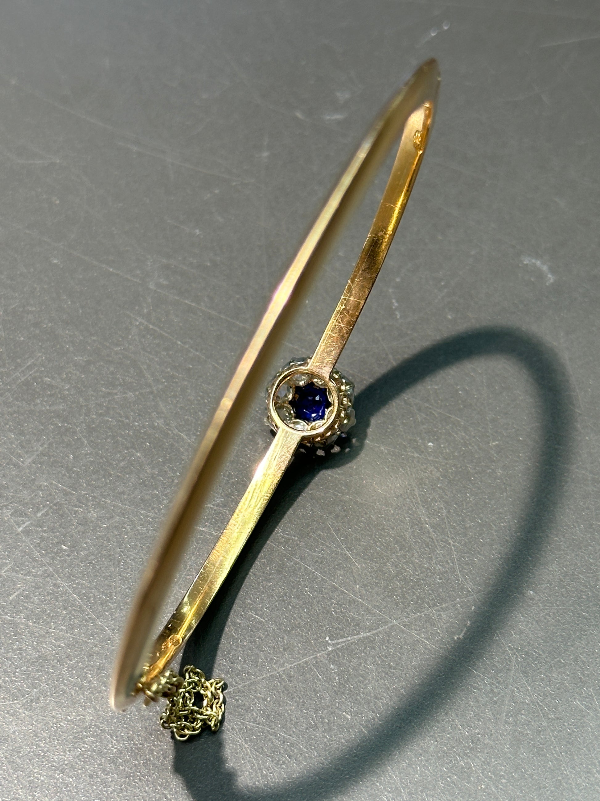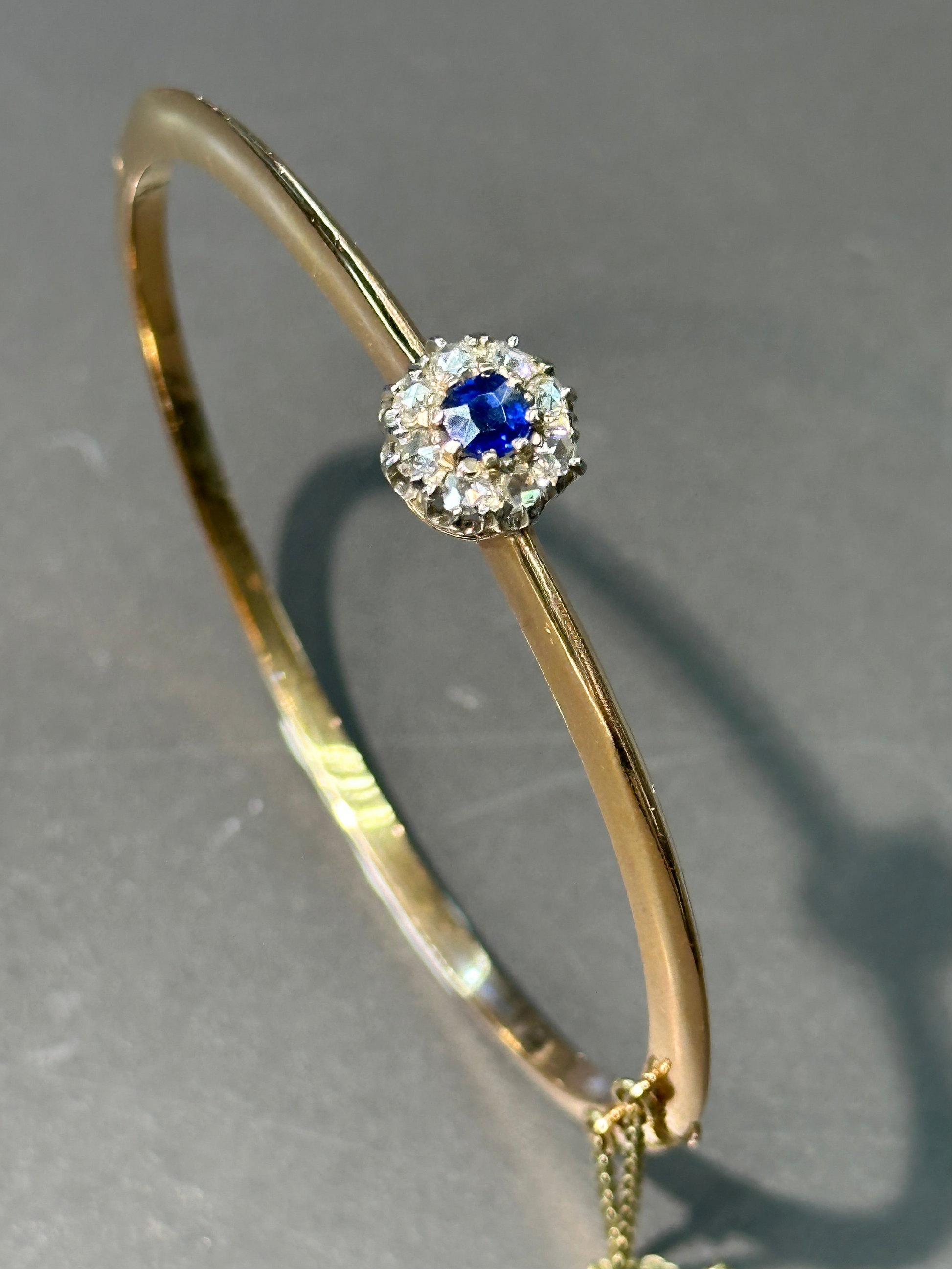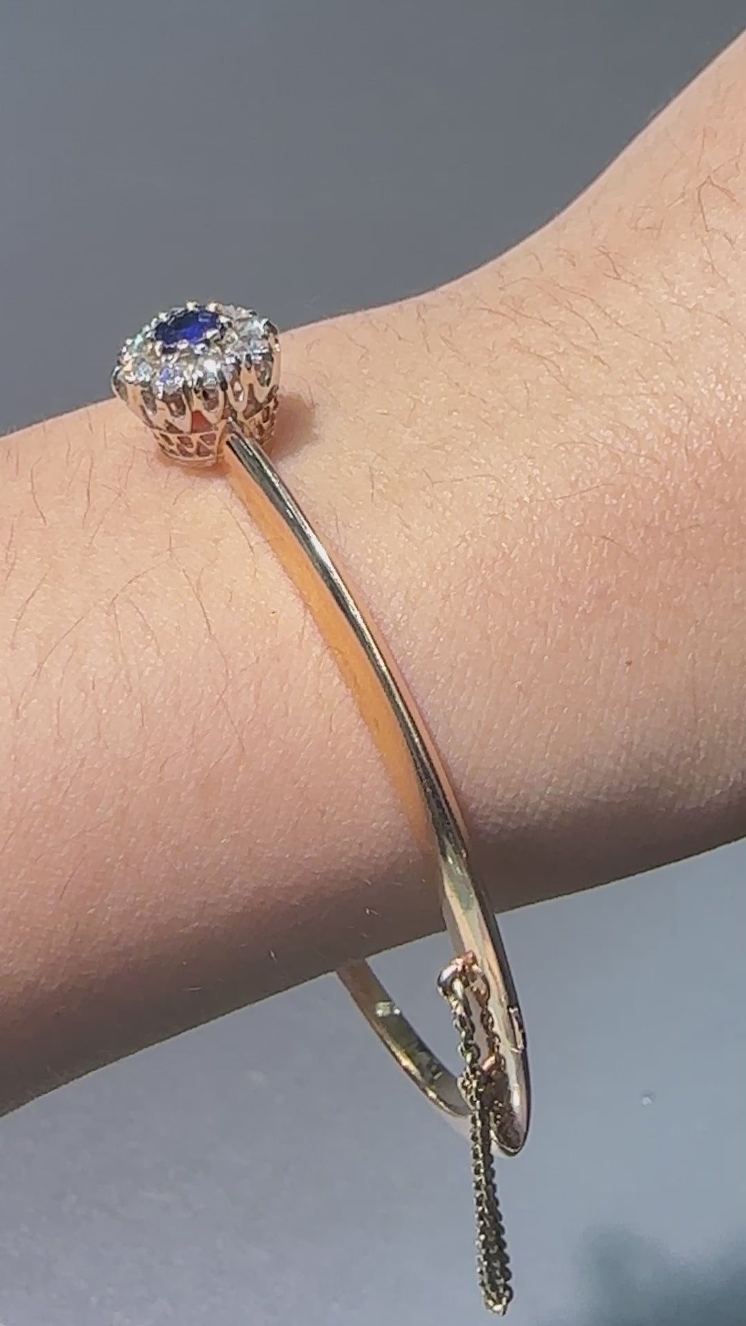 古董法国 18K 金天然蓝宝石钻石光环手镯