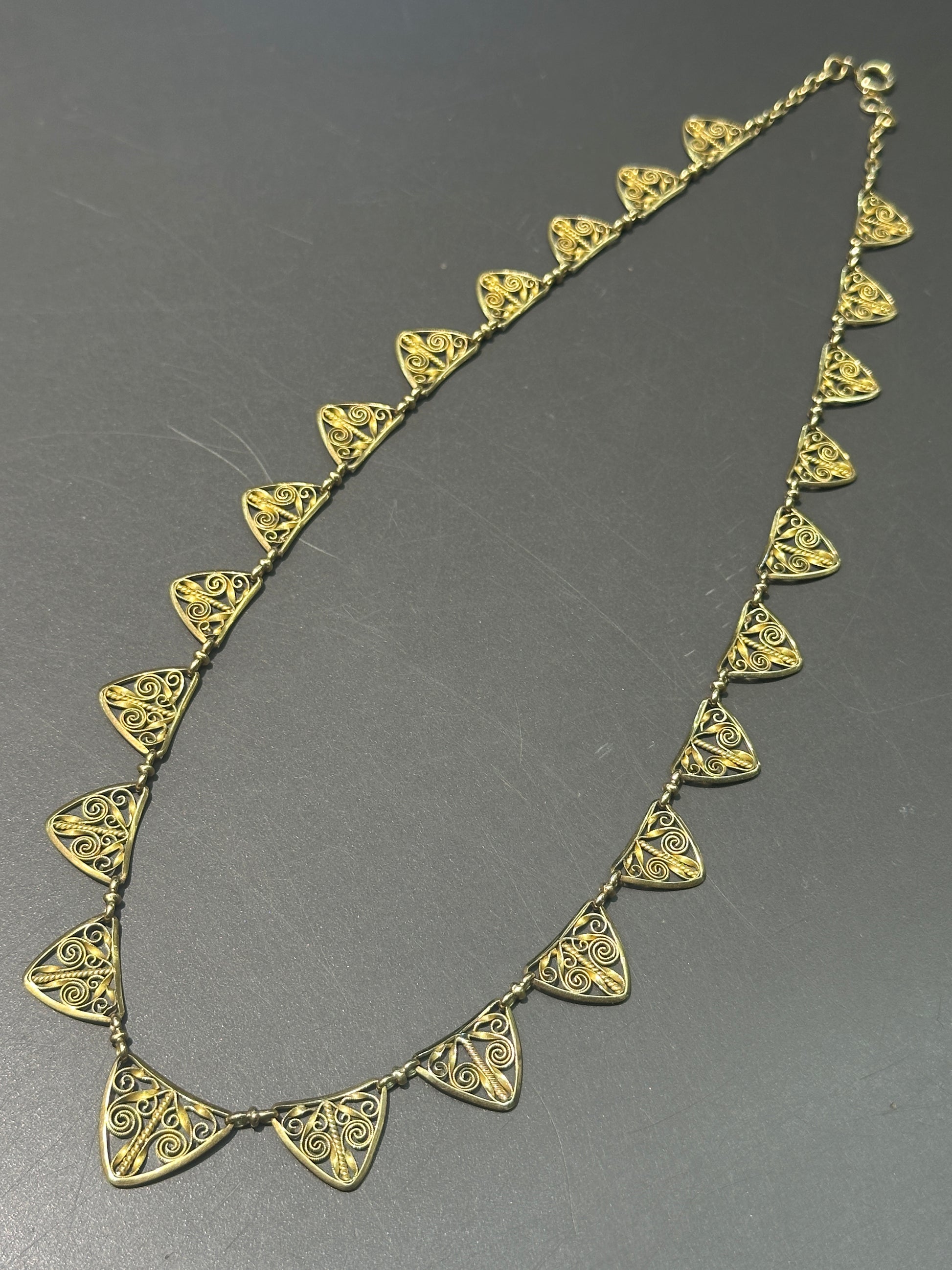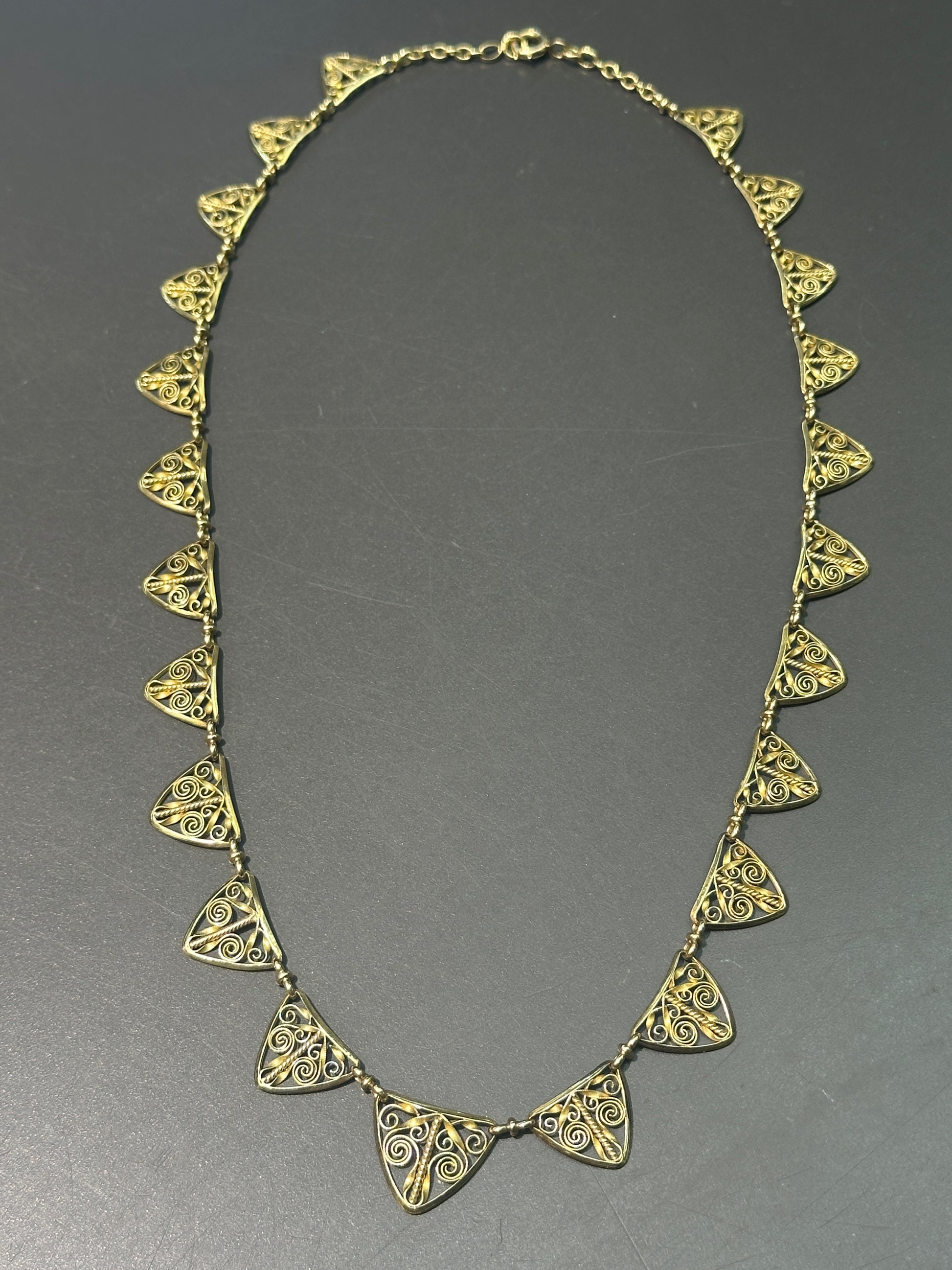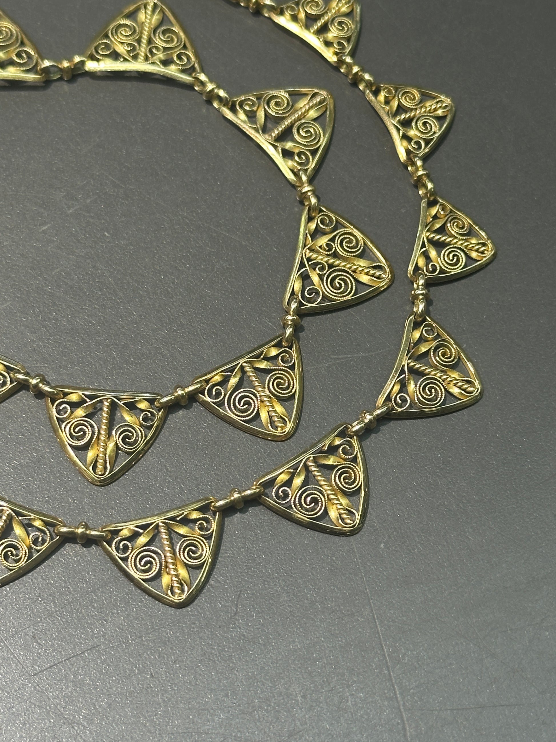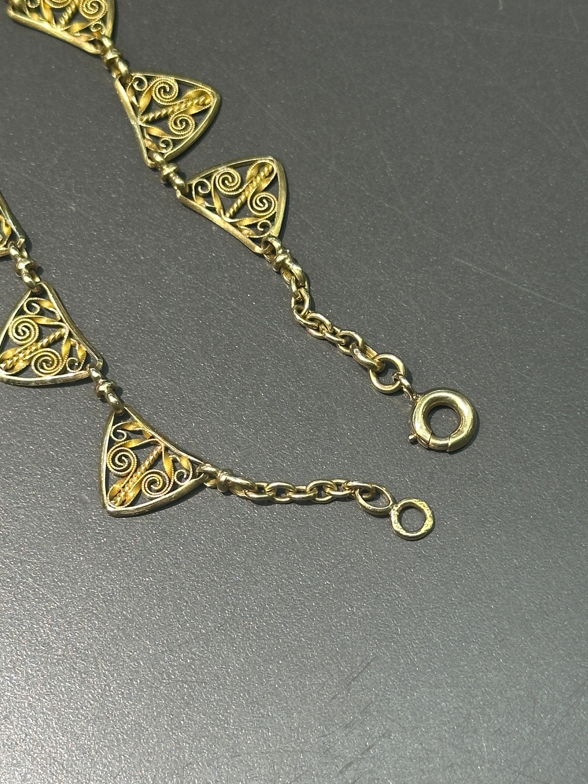 古董法国 18K 黄金花丝流苏项链