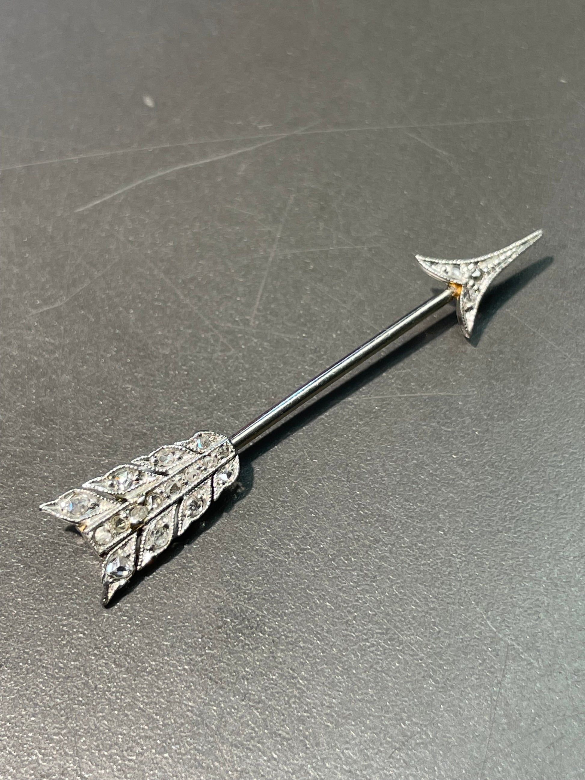 Antique Platinum 0.22 CTW Diamond Arrow Jabot Pin