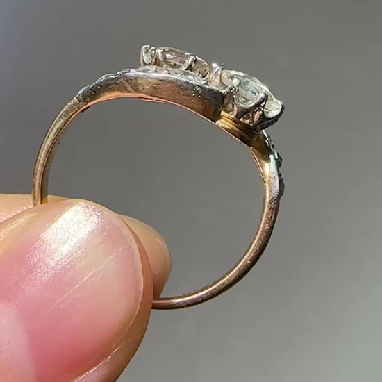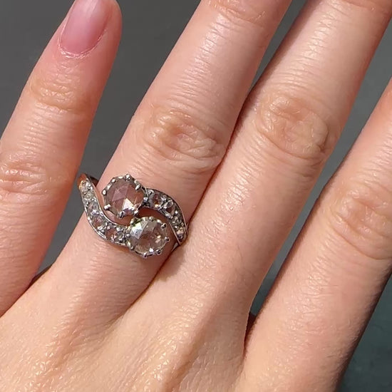 古董铂金镶 18K 金 2.16 CTW 玫瑰切割钻石 Toi Et Moi 戒指