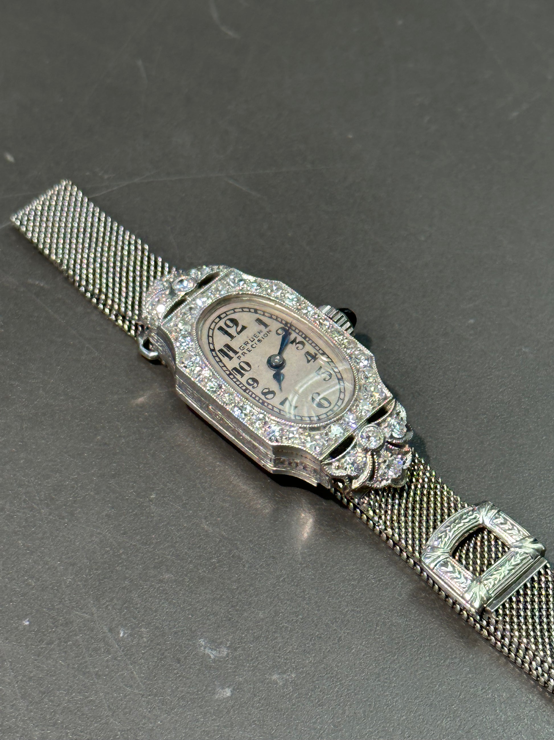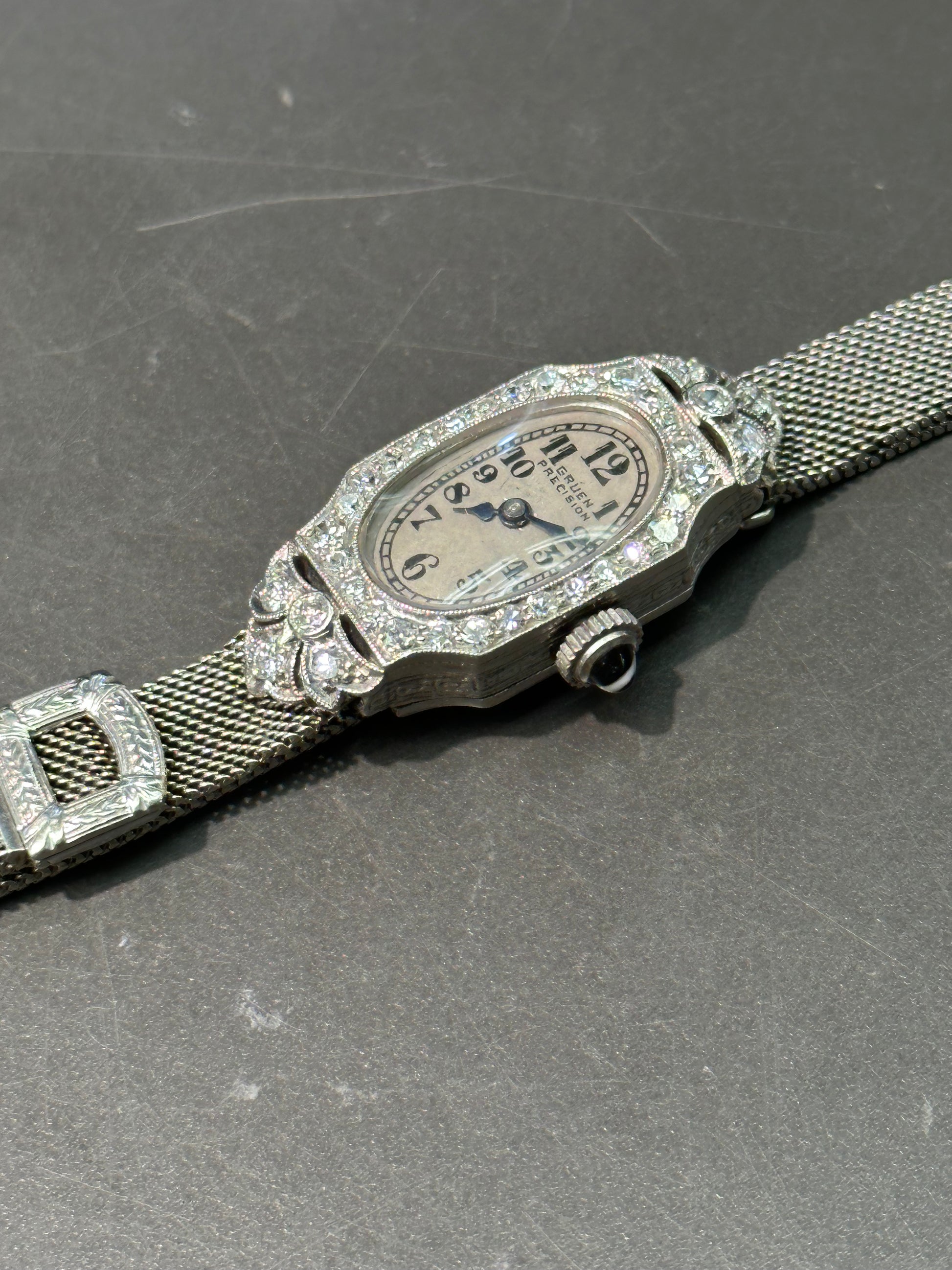 可追溯到装饰艺术时期,这款引人注目的可调节表链装饰着闪闪发光的白色老式切割钻石,表冠上雕刻着靶心玛瑙。采用丝滑的网眼包裹您的手腕。绝对是一款独一无二的表链,可为您的宝石收藏增添新意!
