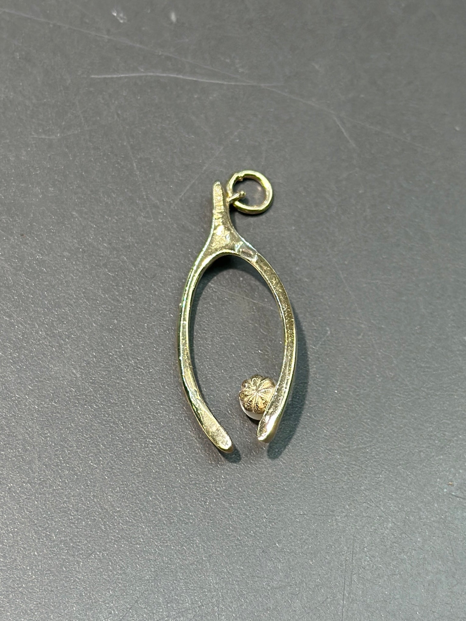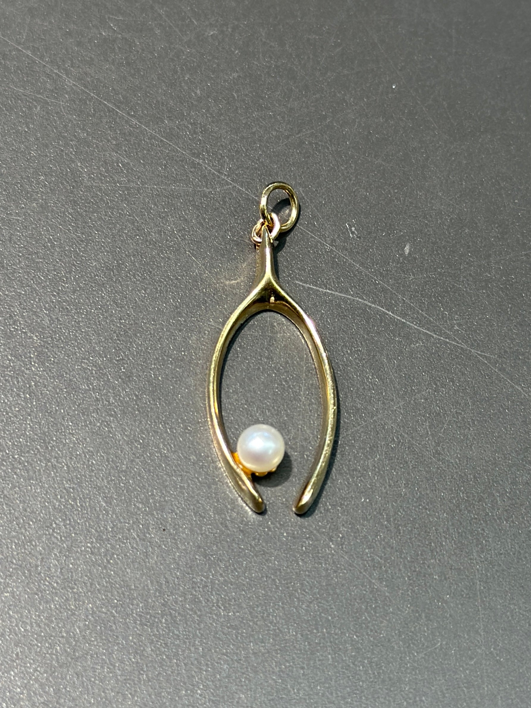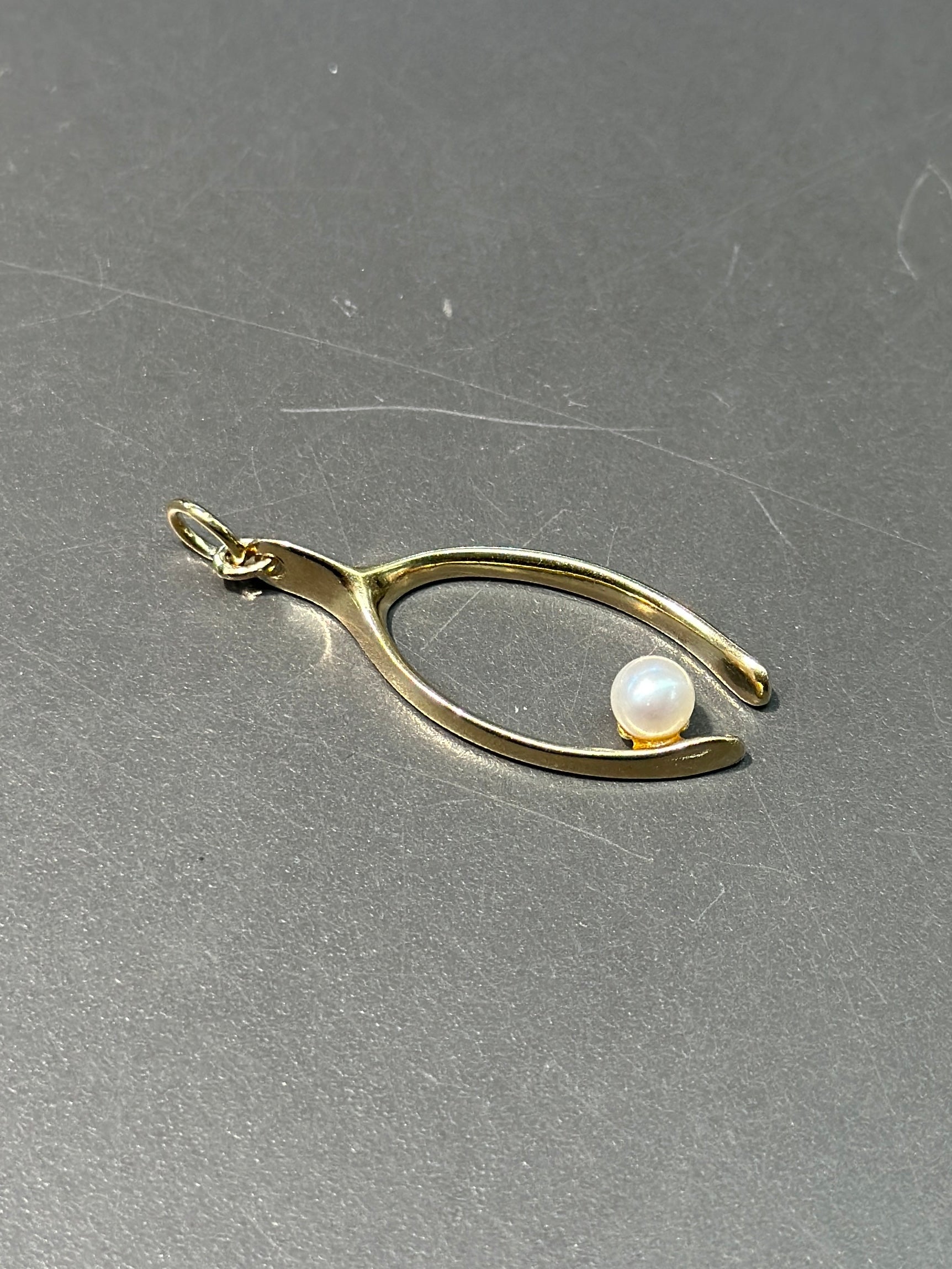 许个愿,戴在脖子上!由胸针改造而成,采用闪亮的 14K 金制成,并饰有光泽的白色珍珠。