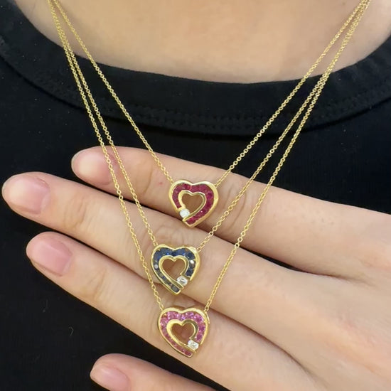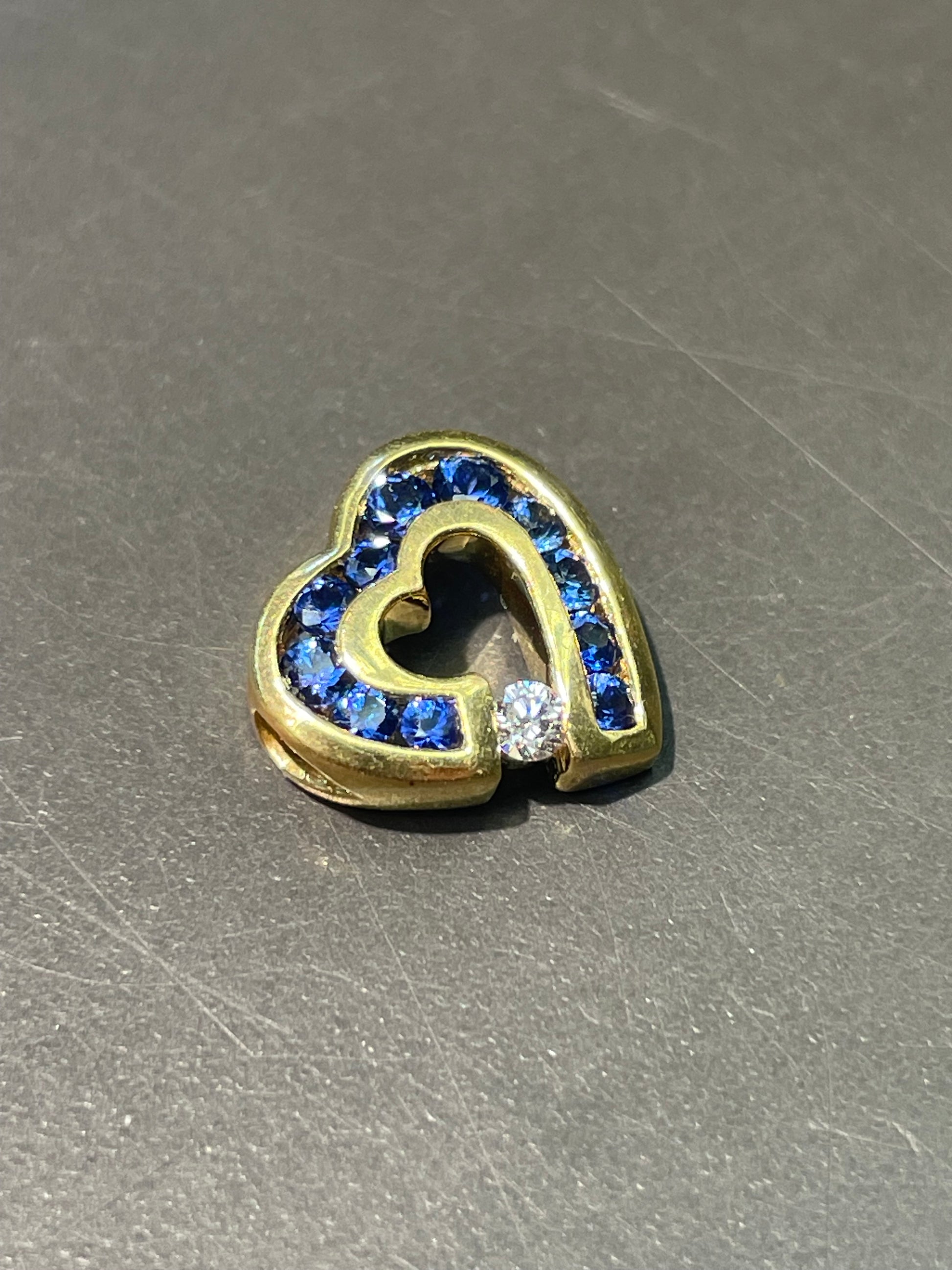 Charles Krypell 18K 金蓝宝石钻石心形滑动吊坠