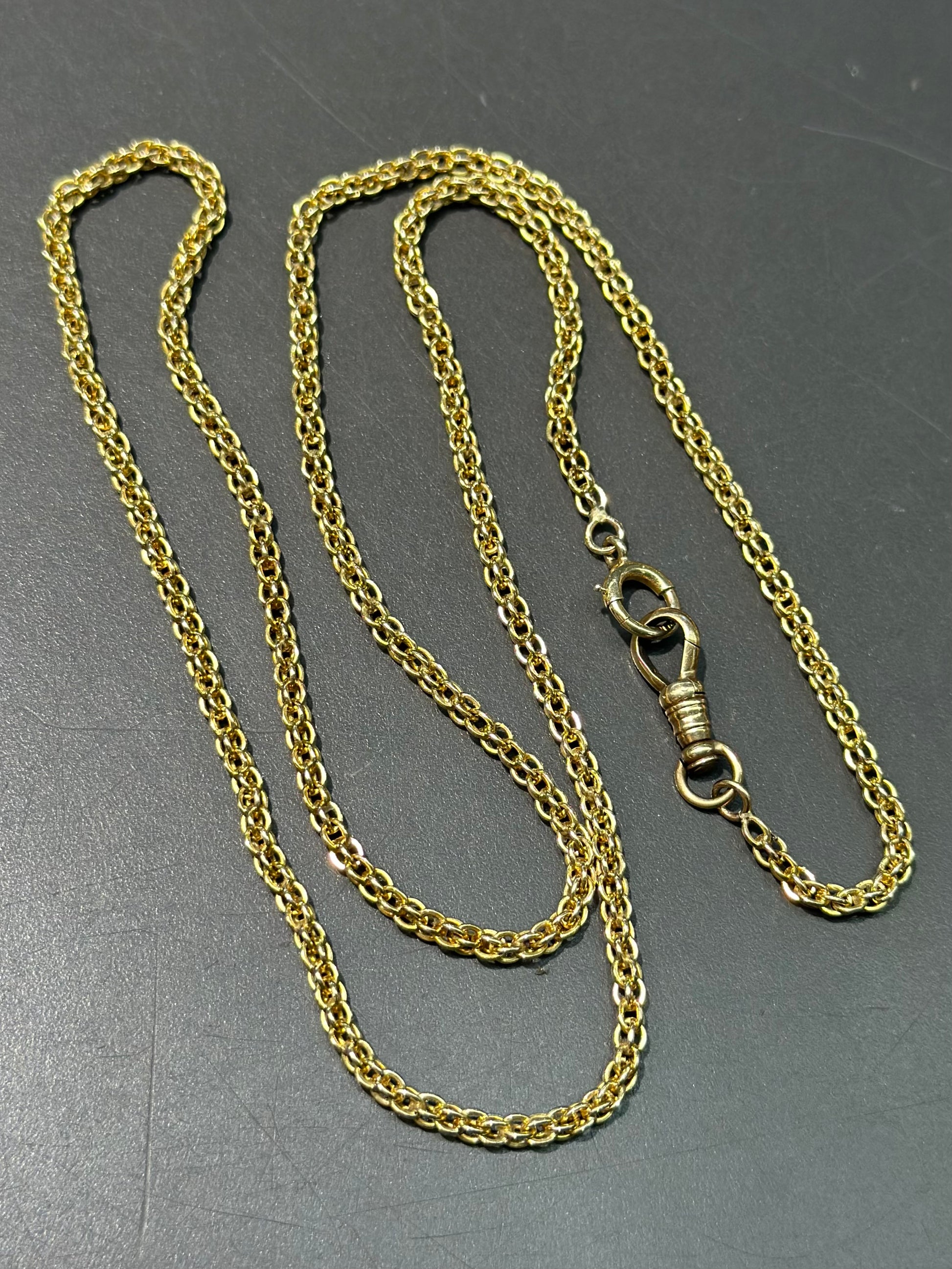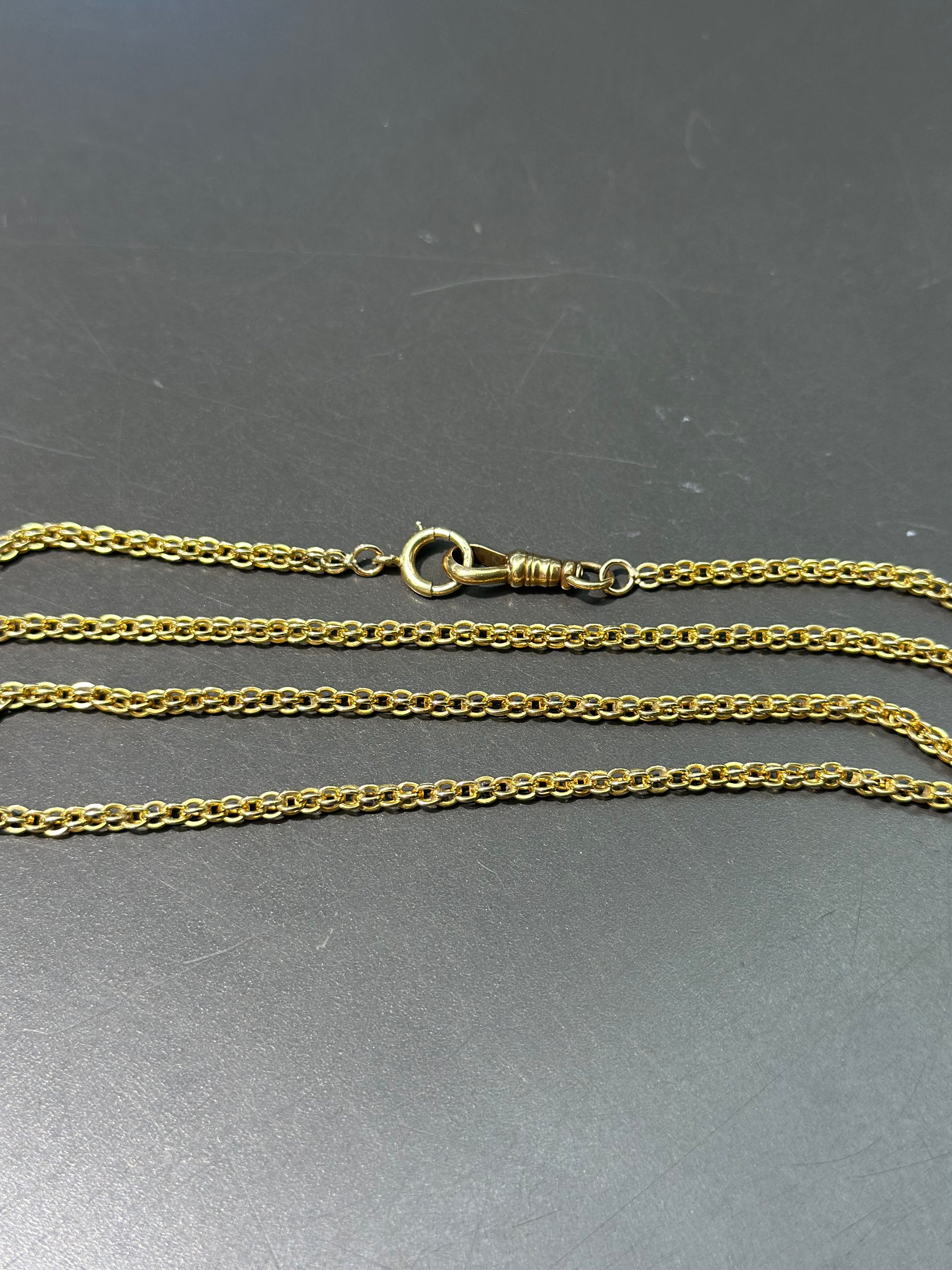 经典表链采用闪亮的 15K 金打造,配有 14K 金弹簧扣和 14K 金狗夹。
