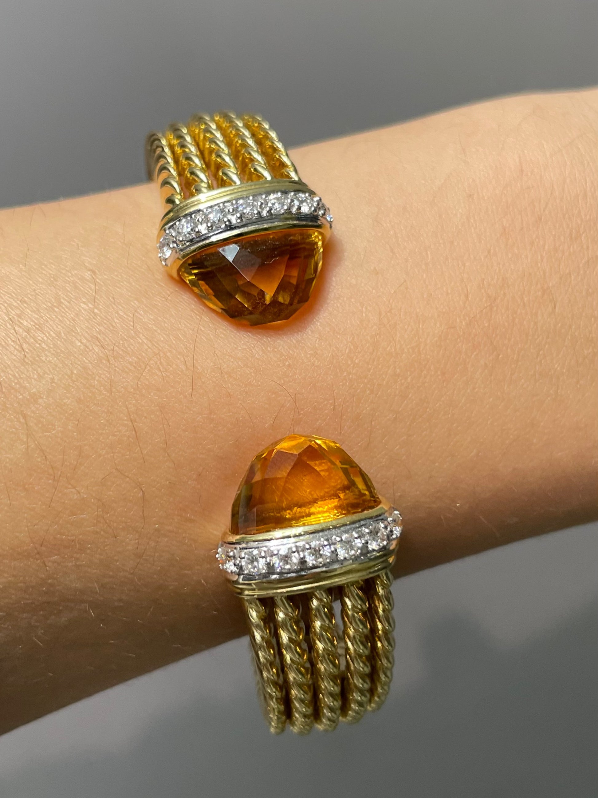 David Yurman 18K Gold Citrine Diamond Bypass Bangle Bracelet
