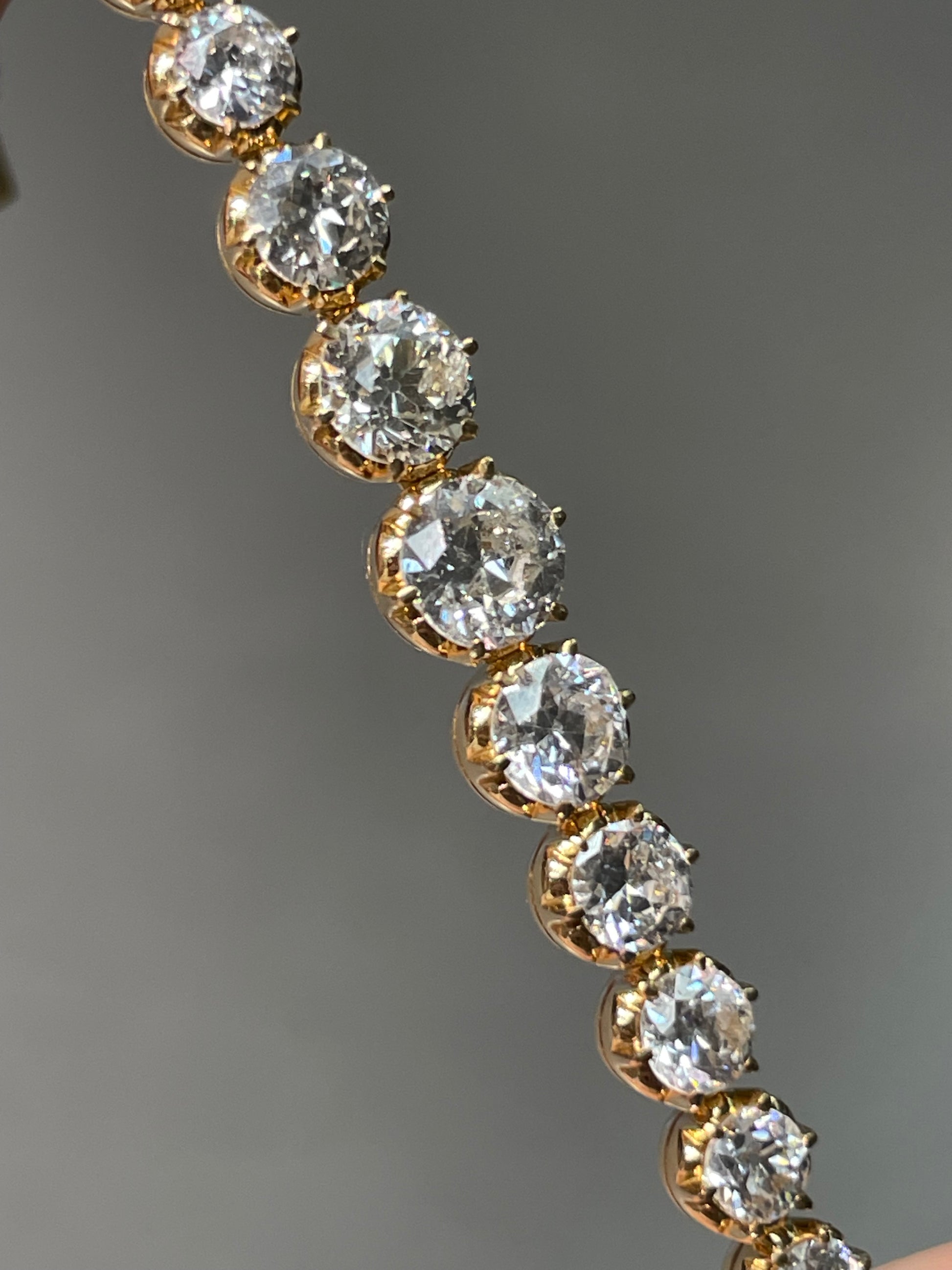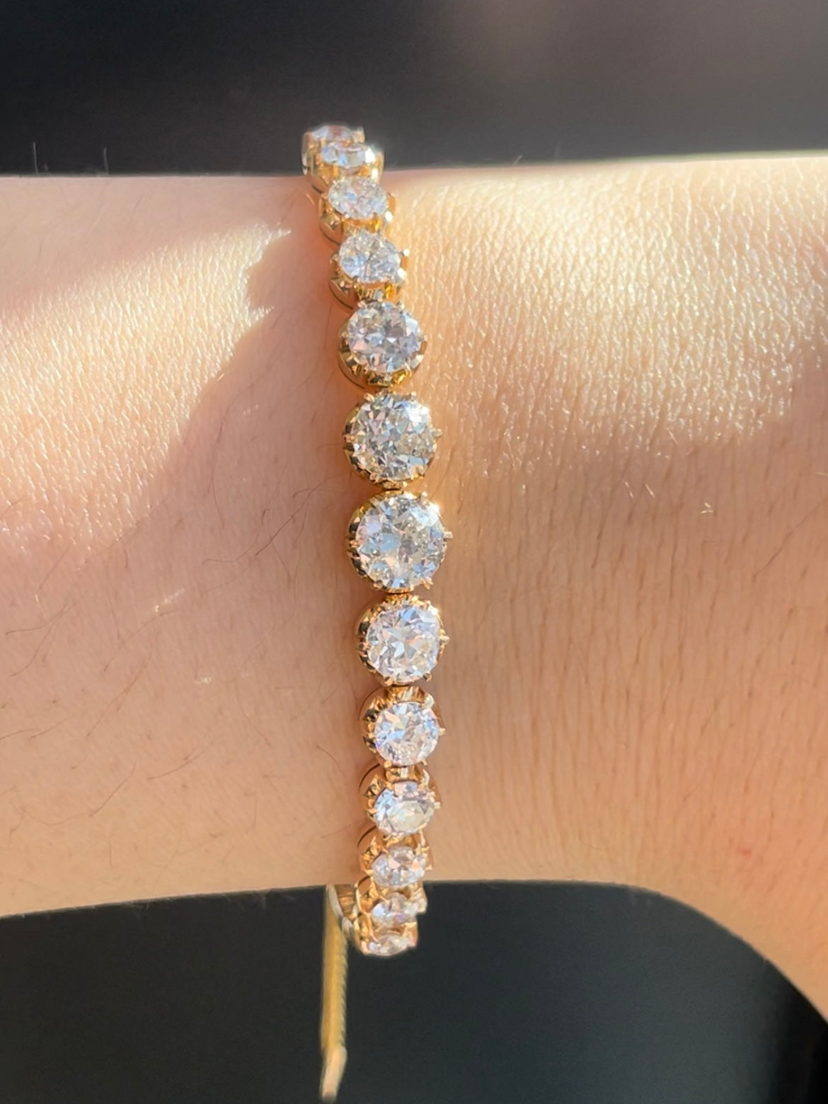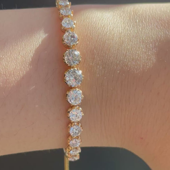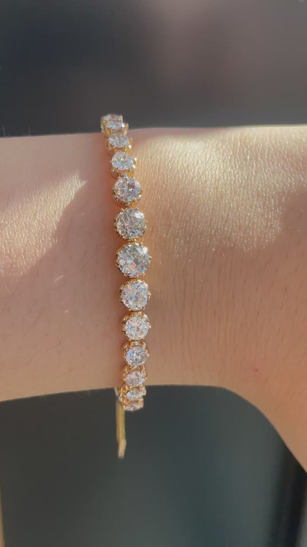 爱德华风格 18K 黄金 3.65 CTW 老式欧洲切割钻石线手链
