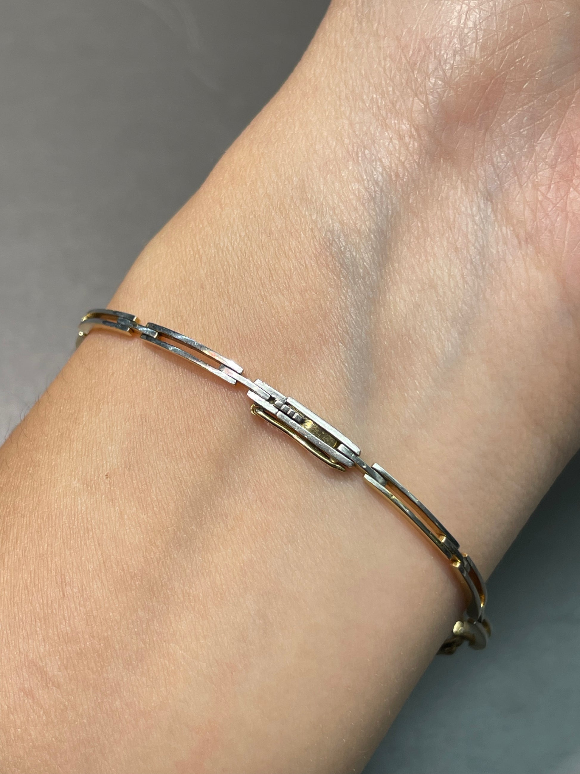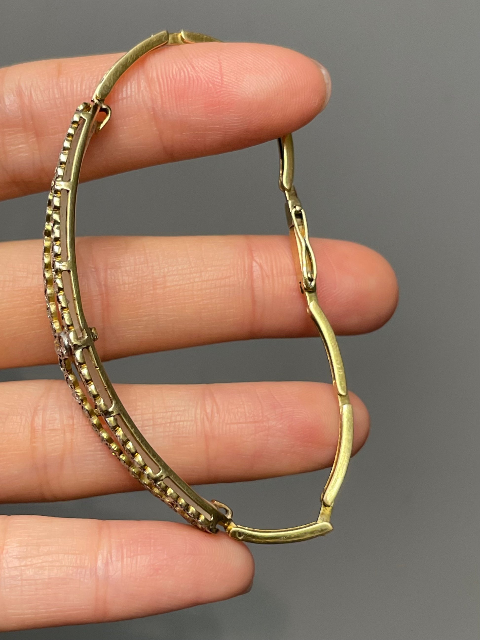Edwardian French Platinum Topped 18K Yellow Gold Camphor Glass Diamond Bracelet