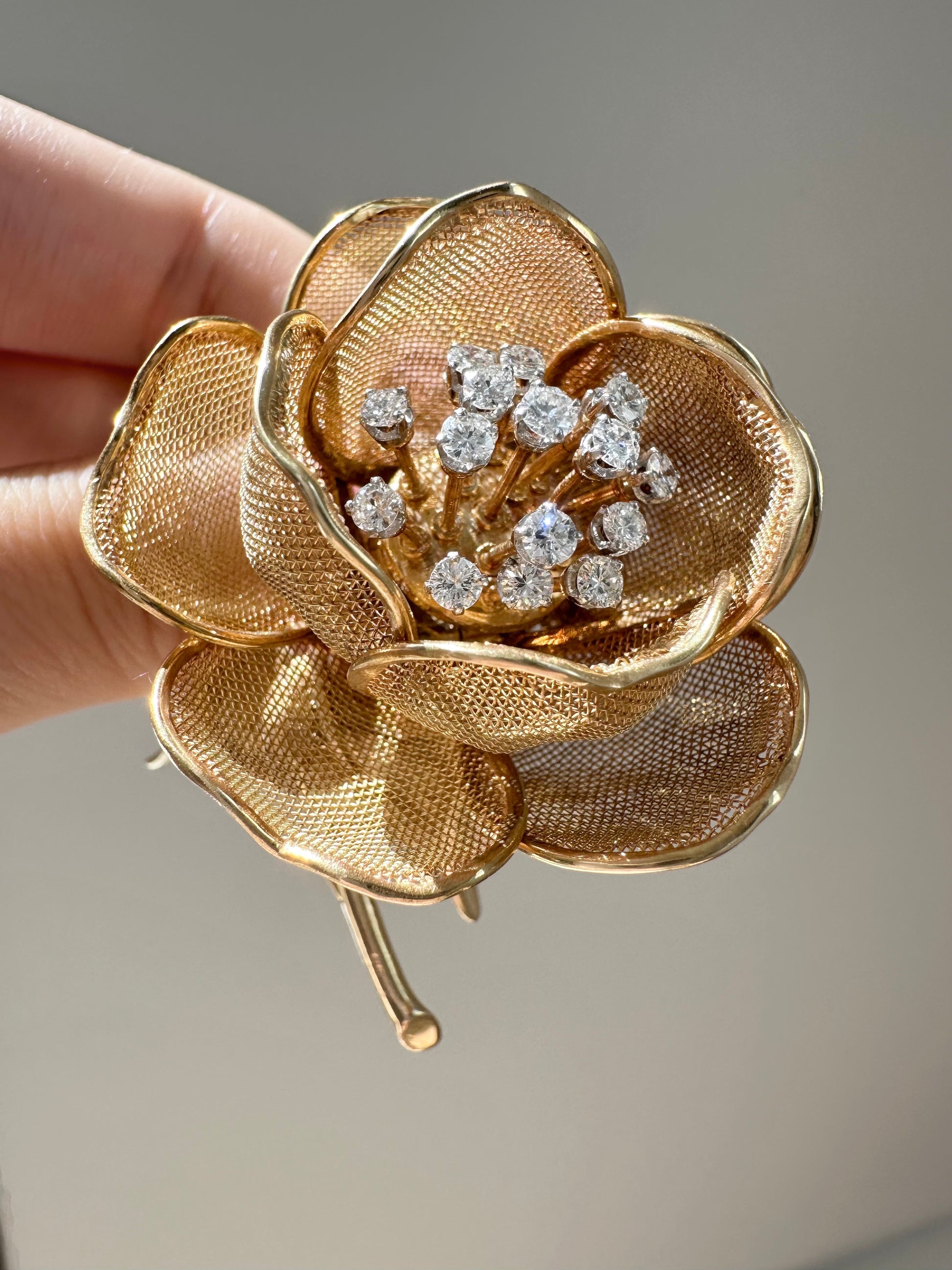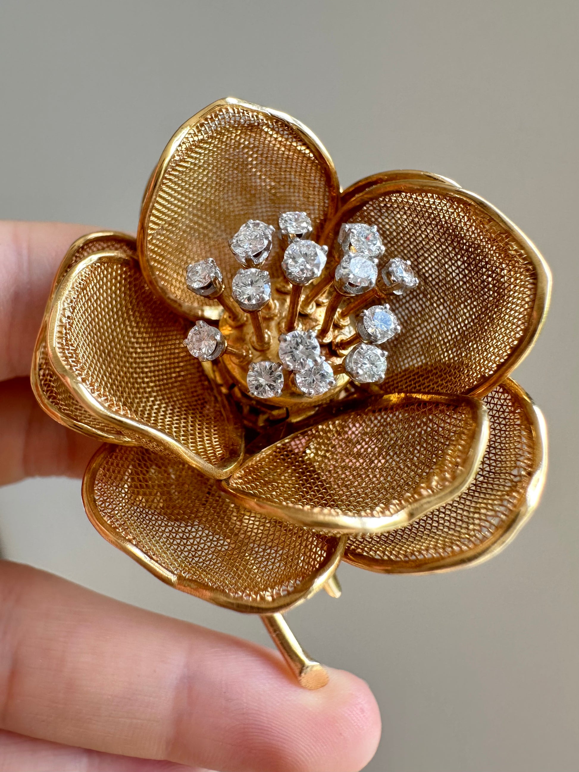 法国18K金钻石双层颤动花朵胸针