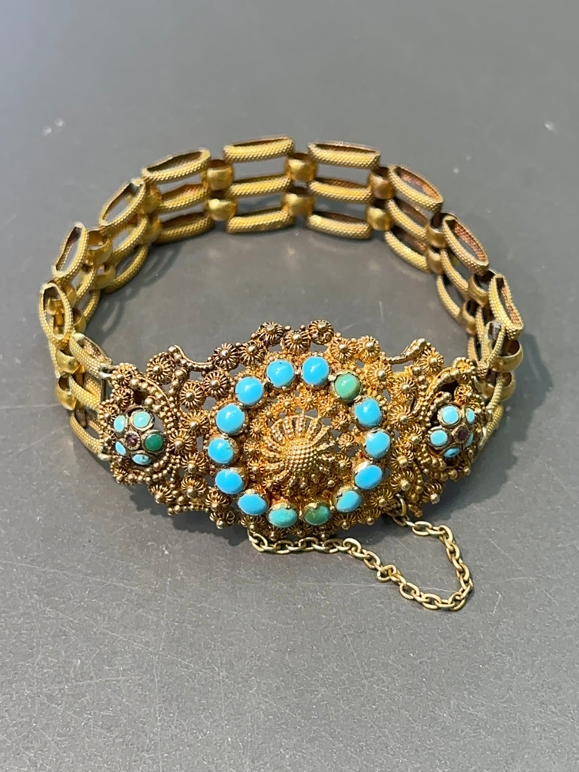 格鲁吉亚法国 18K 金绿松石金银花手链