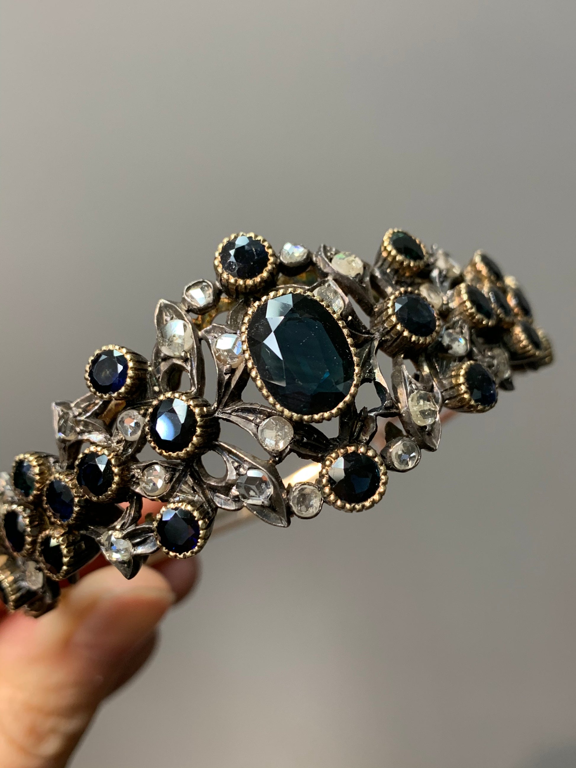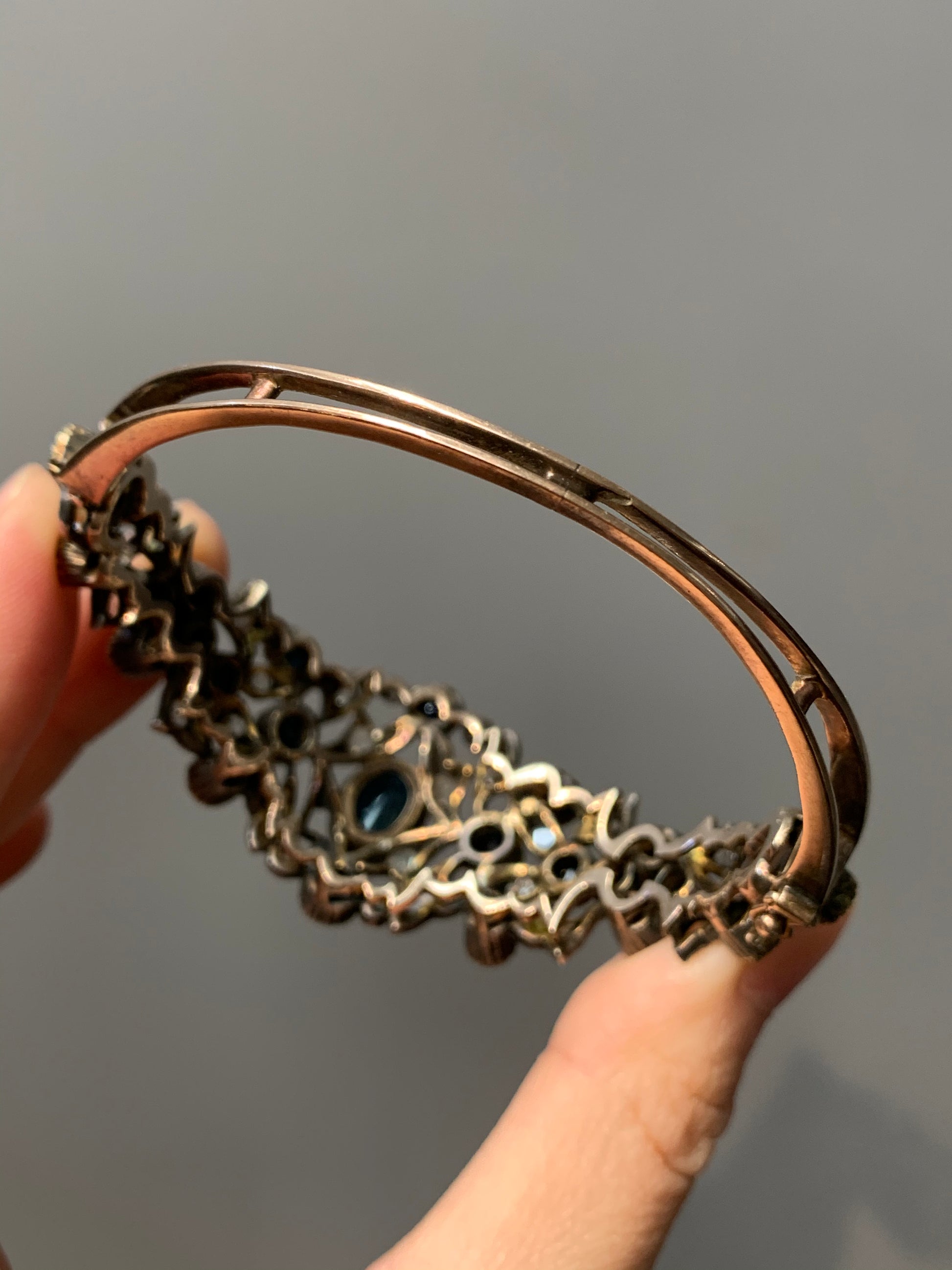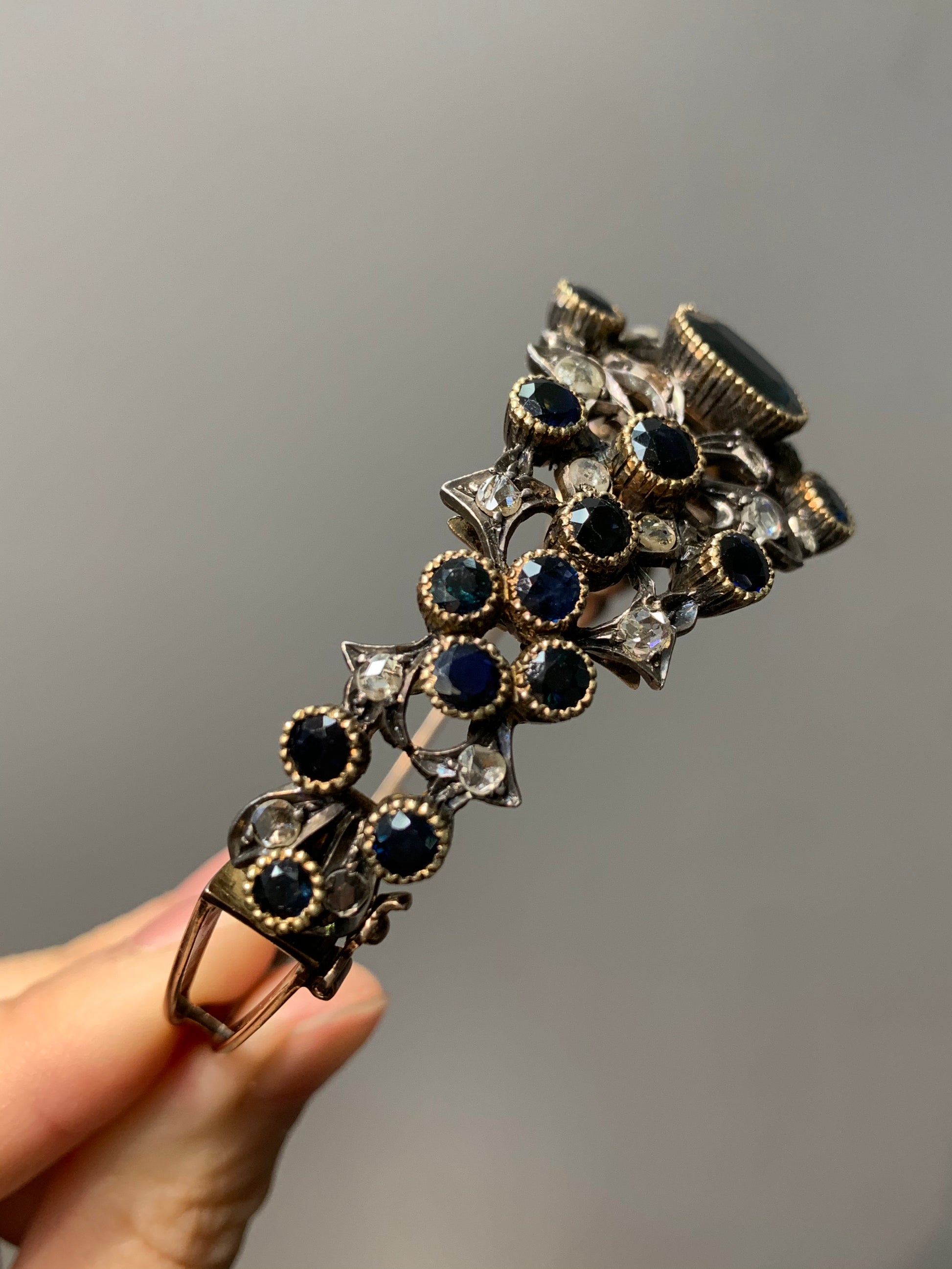 乔治亚风格 14K 镶 925 银钻石和蓝宝石手镯