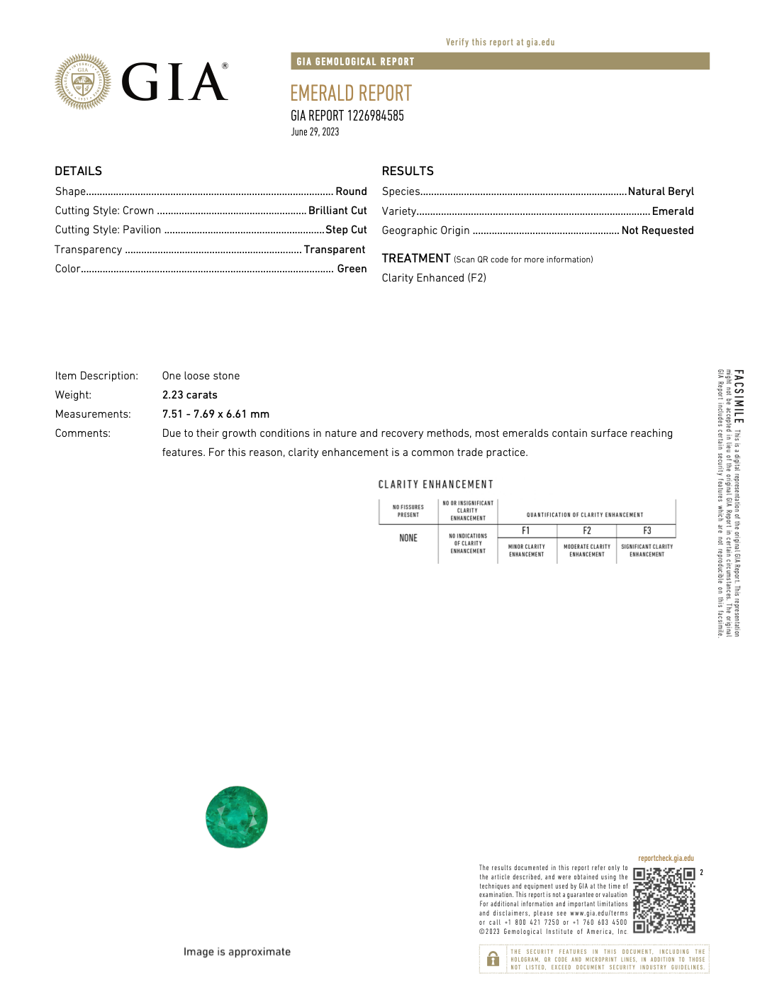 - Carat Weight of Emerald: 2.23 Carats (F2)