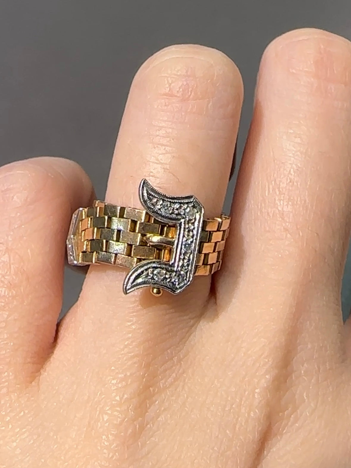 复古 18K 黄金 0.08 CTW 钻石可调节带扣皮带环