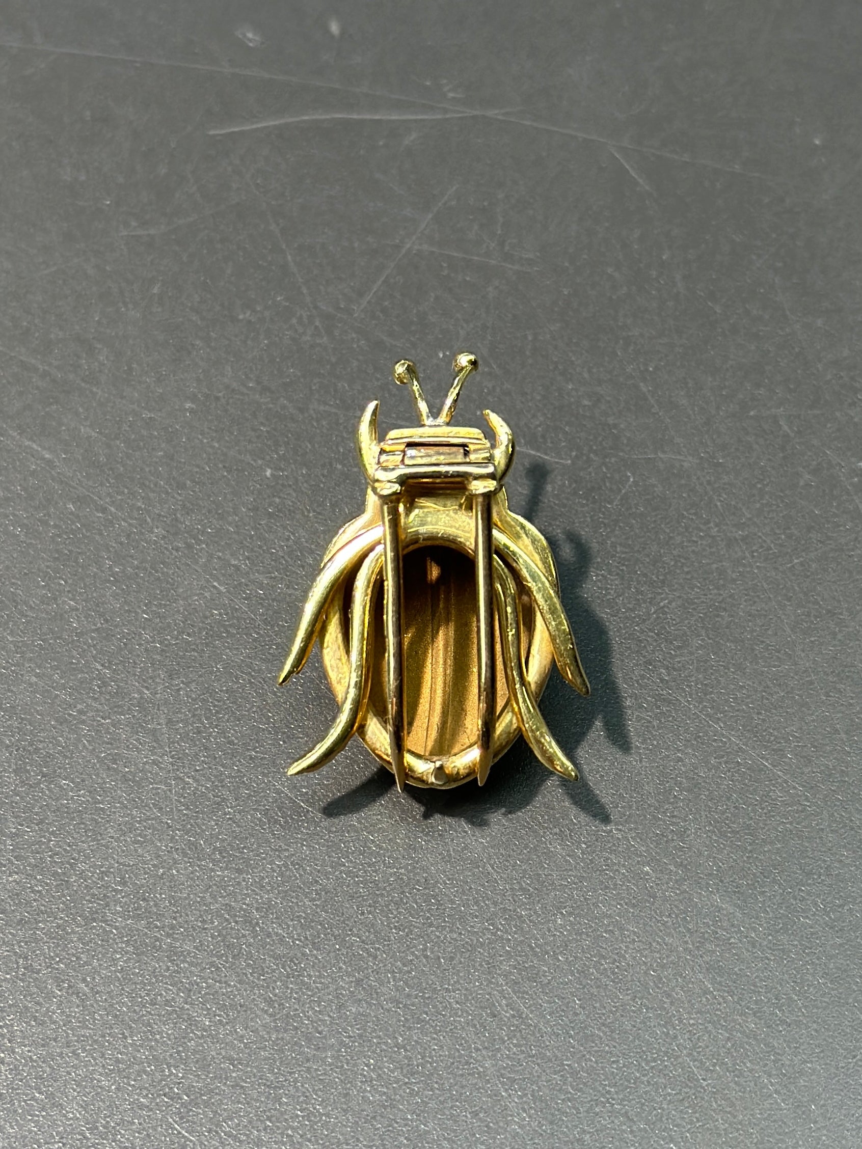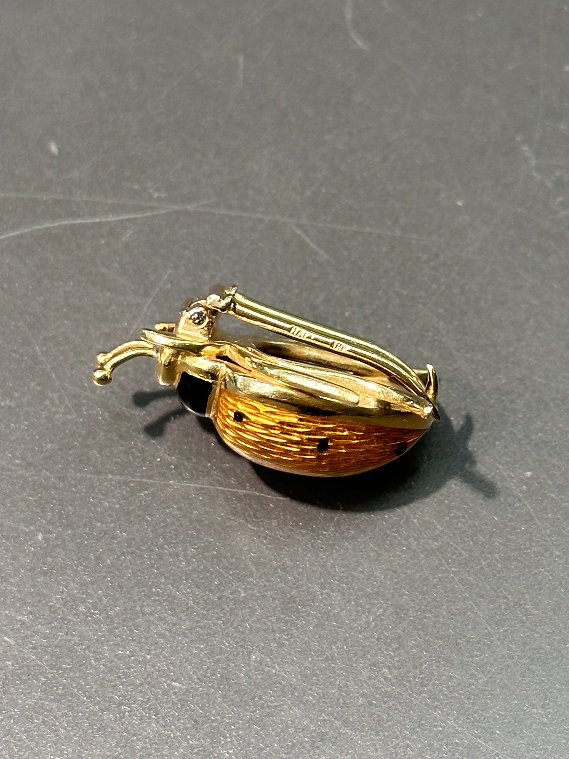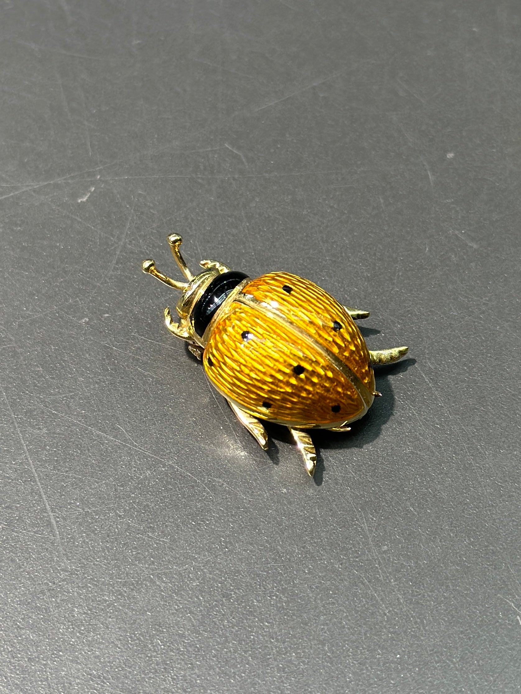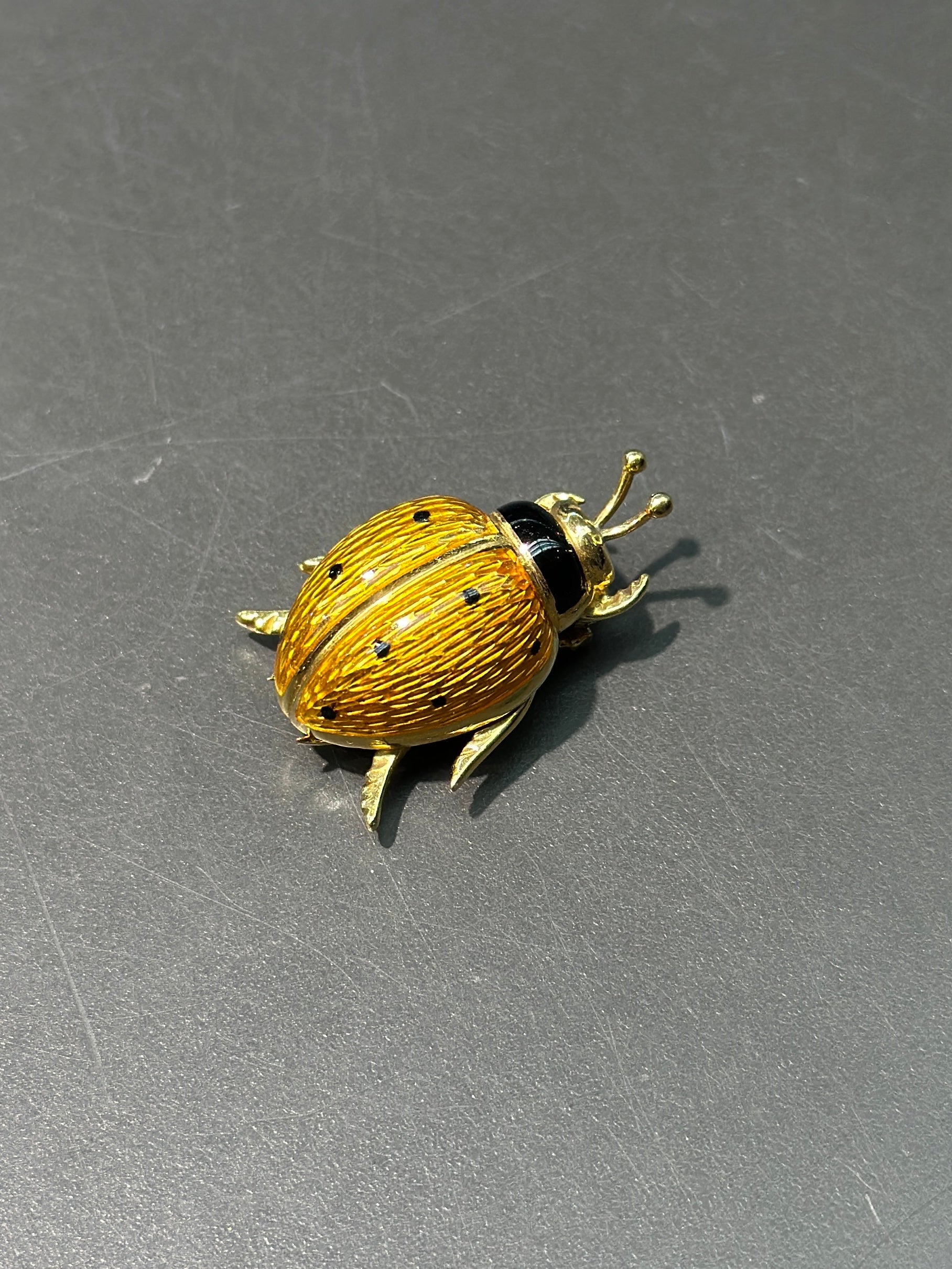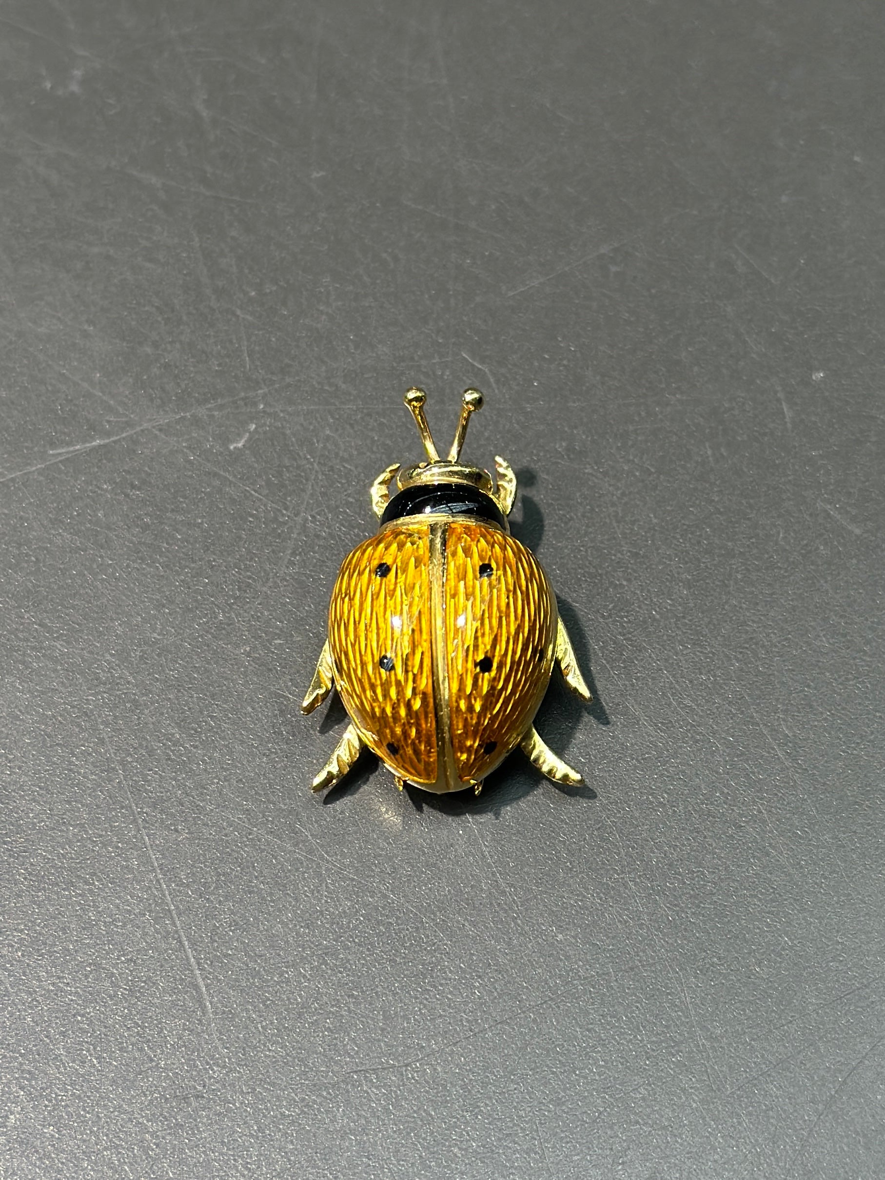 复古意大利 18K 金黄色珐琅瓢虫胸针