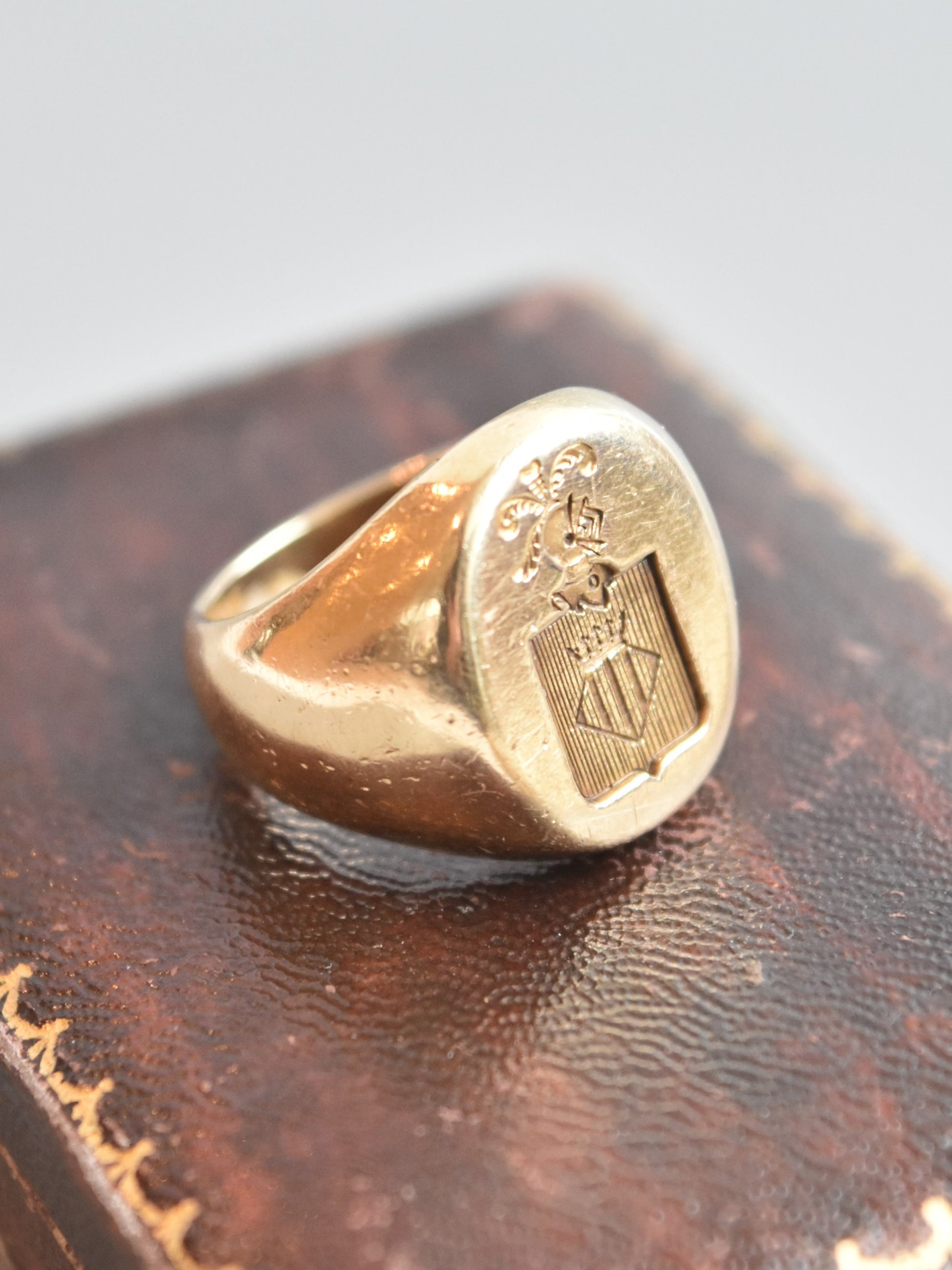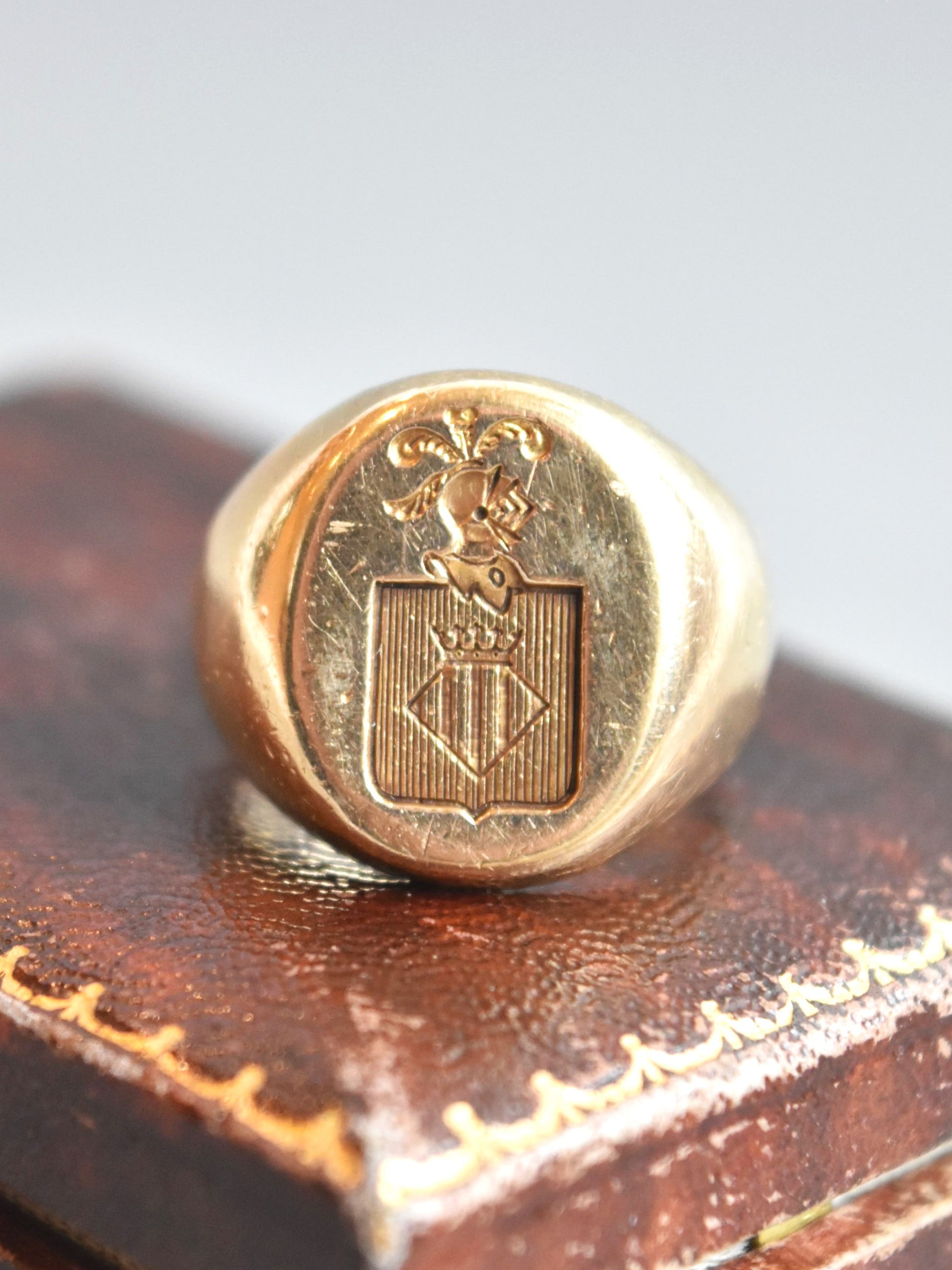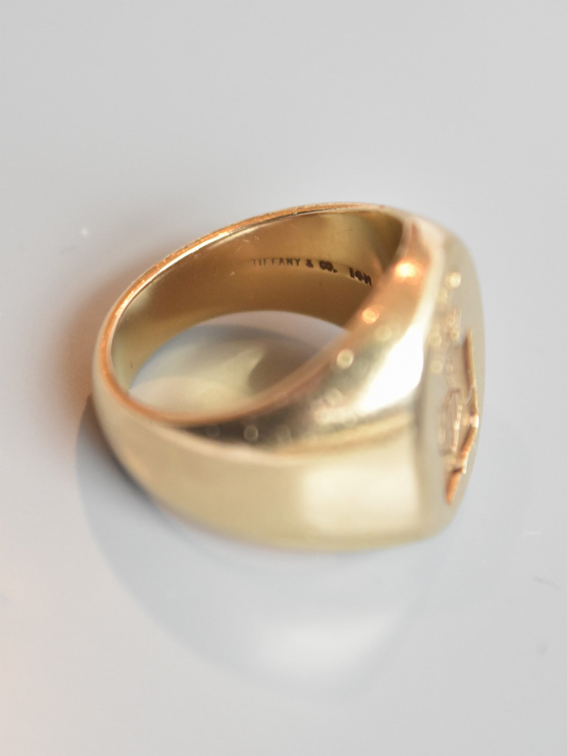 复古蒂芙尼 14K 金骑士盾形印章戒指 尺寸 7