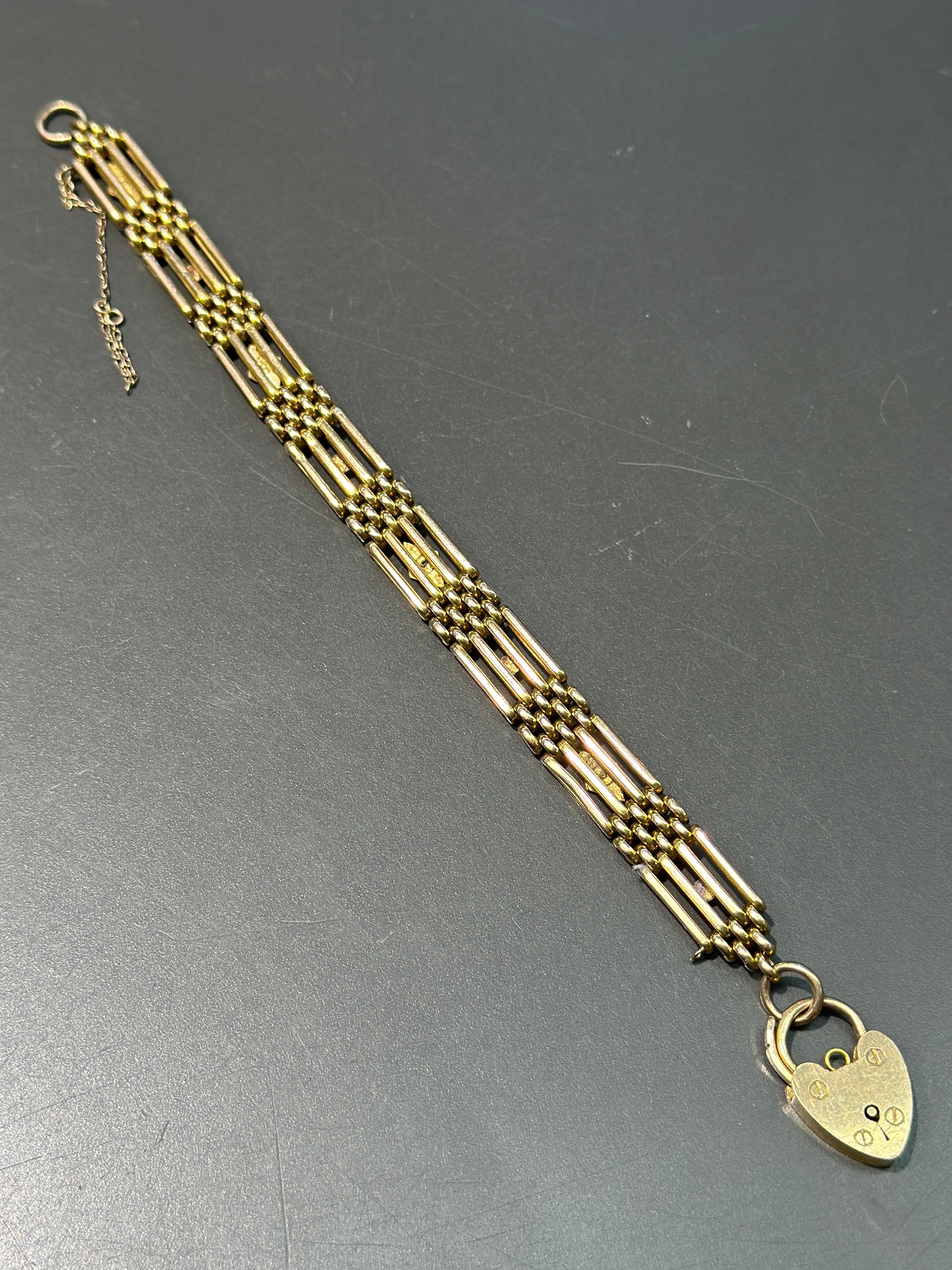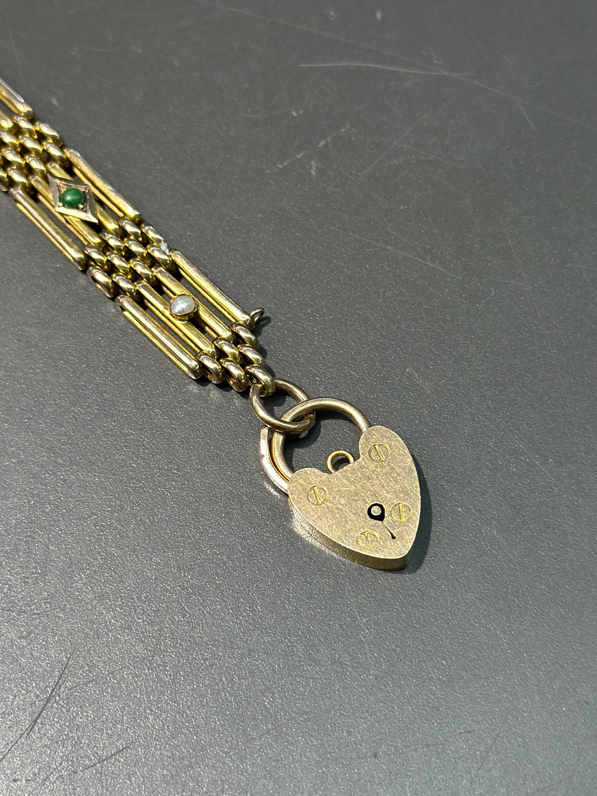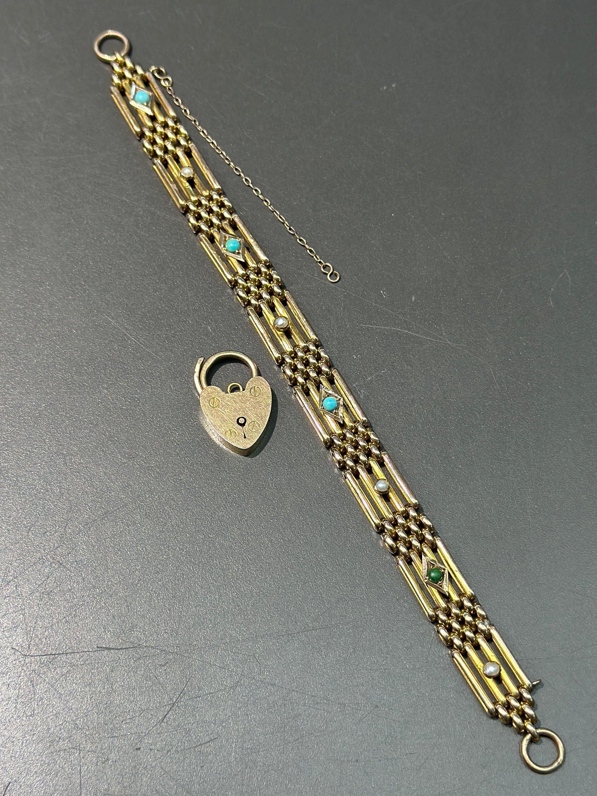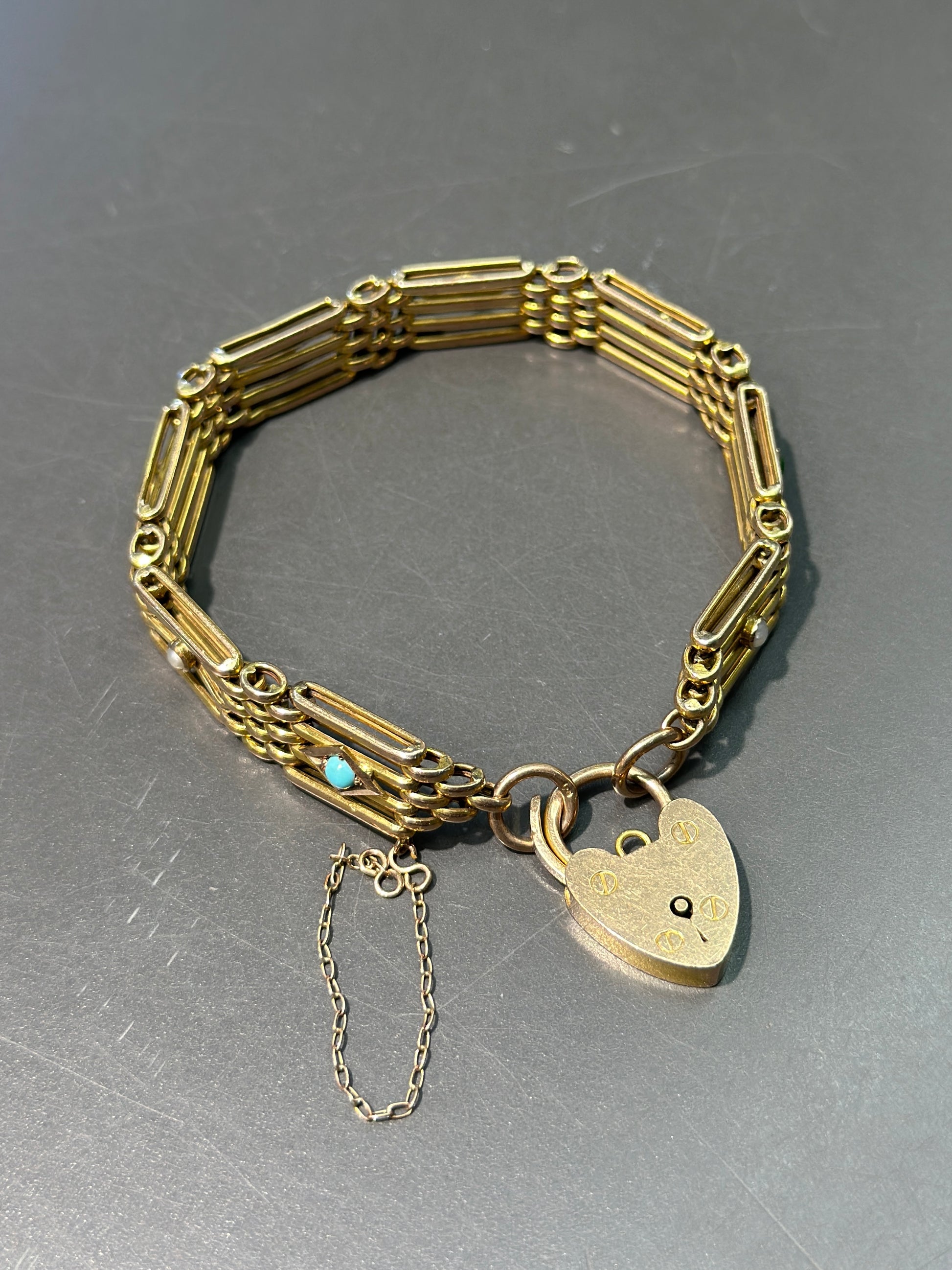 维多利亚 9K 金绿松石和珍珠挂锁门链手链