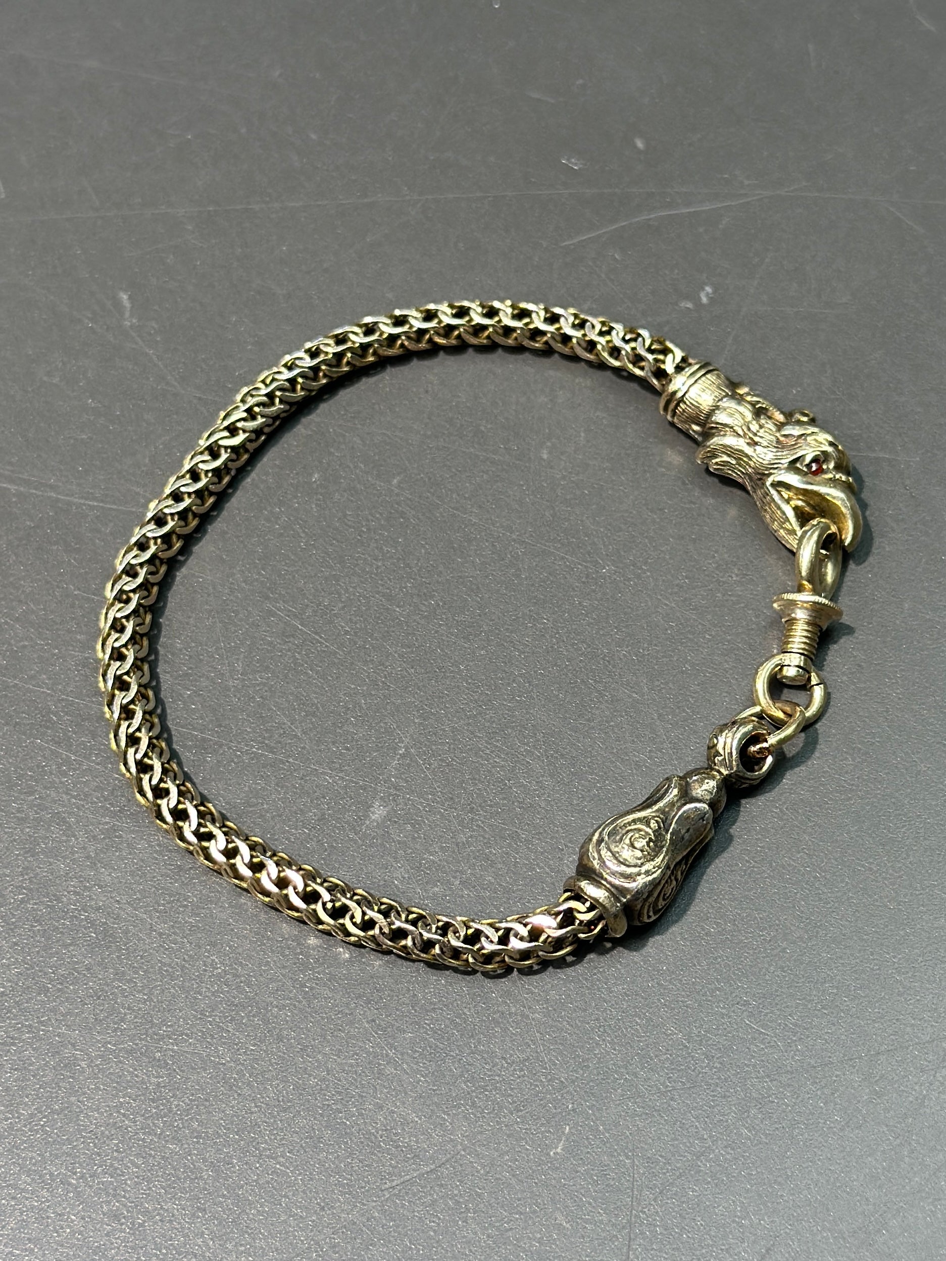 这款令人惊叹的神话嵌合手链/链条延长器采用 10K 金精心打造而成,尺寸为 7.25 英寸。配有旋转螺丝夹。
