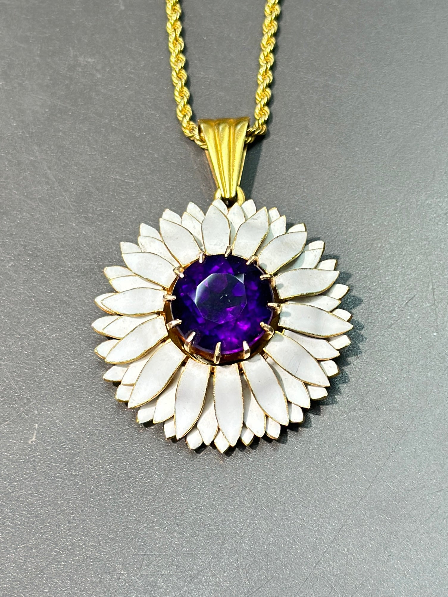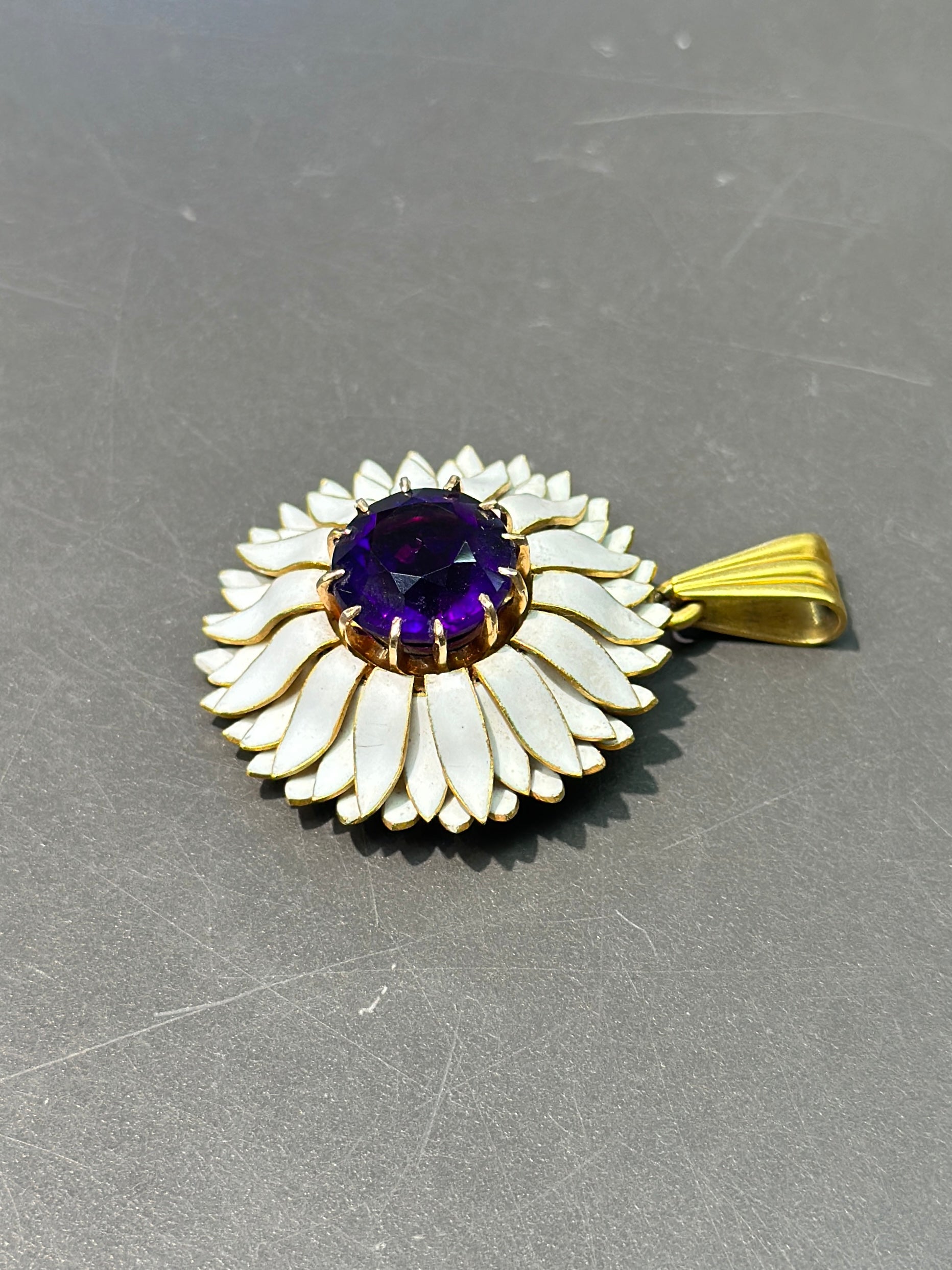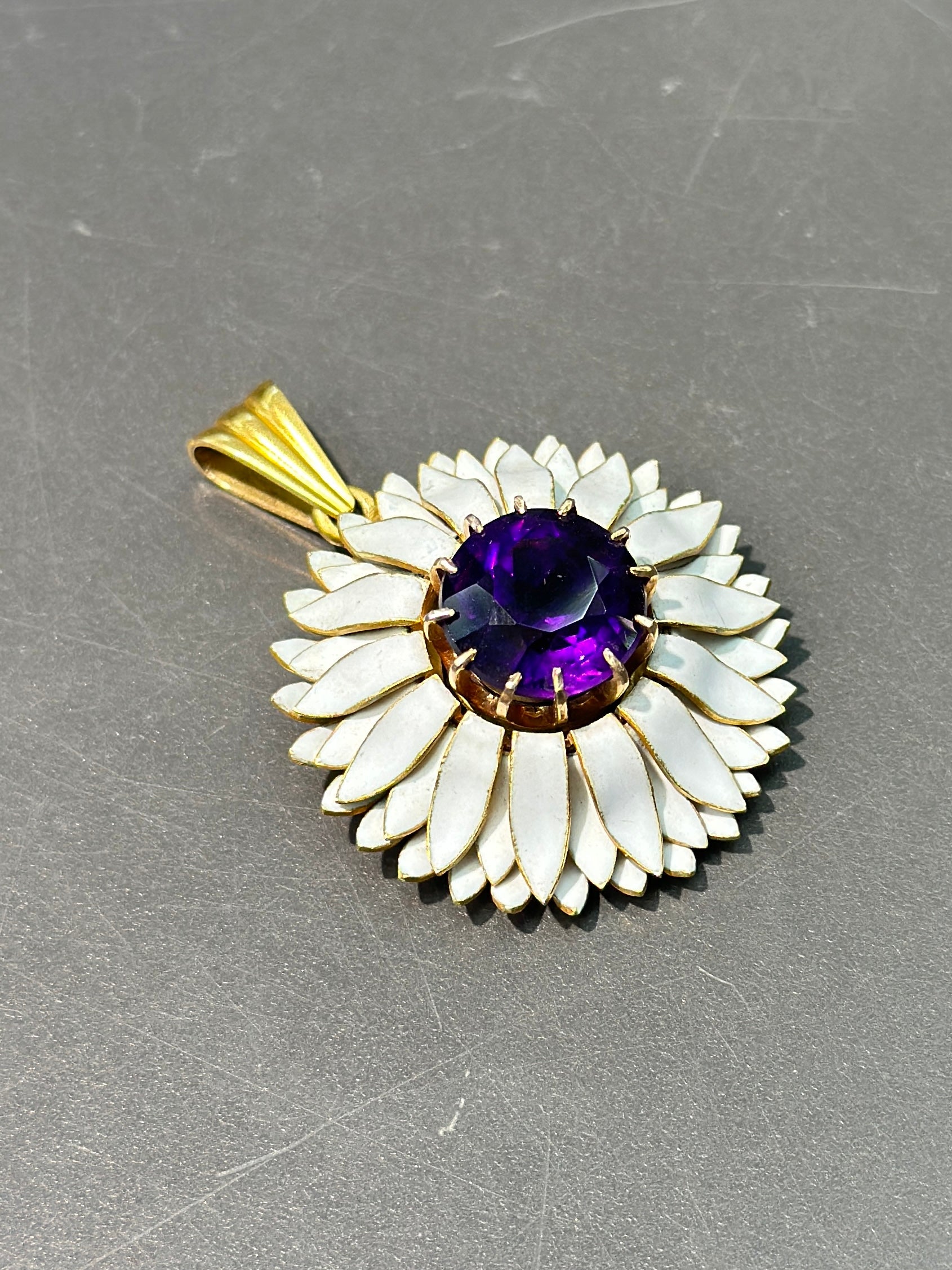 维多利亚 18K 金紫水晶白色珐琅雏菊吊坠