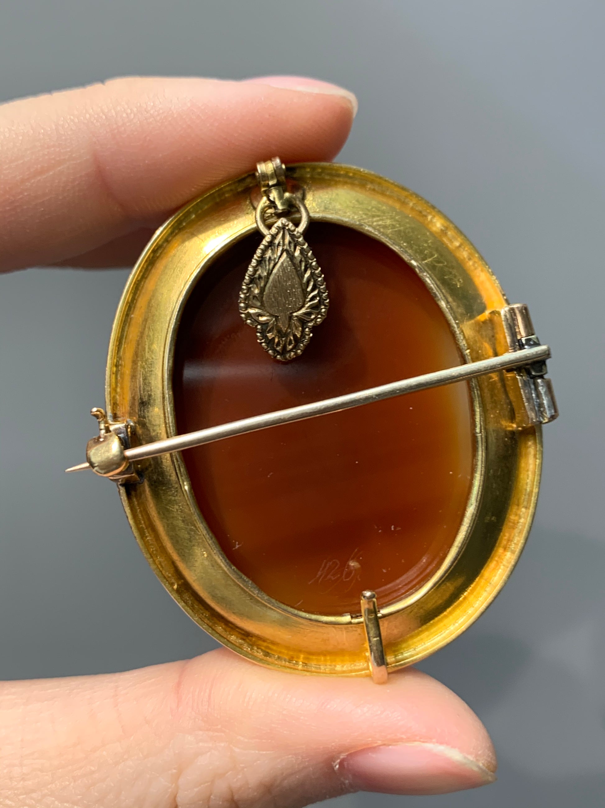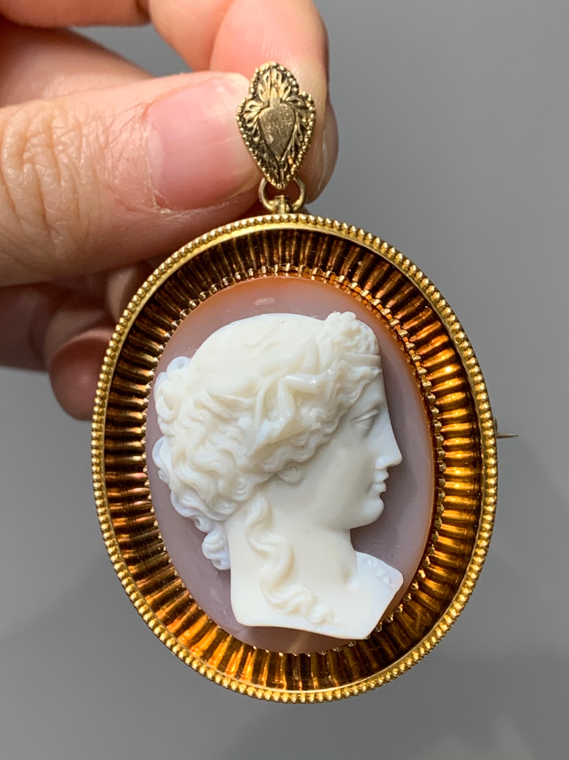 维多利亚风格 14K 金浮雕镜面凹面胸针吊坠