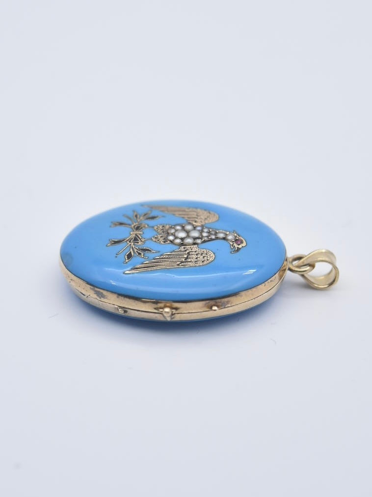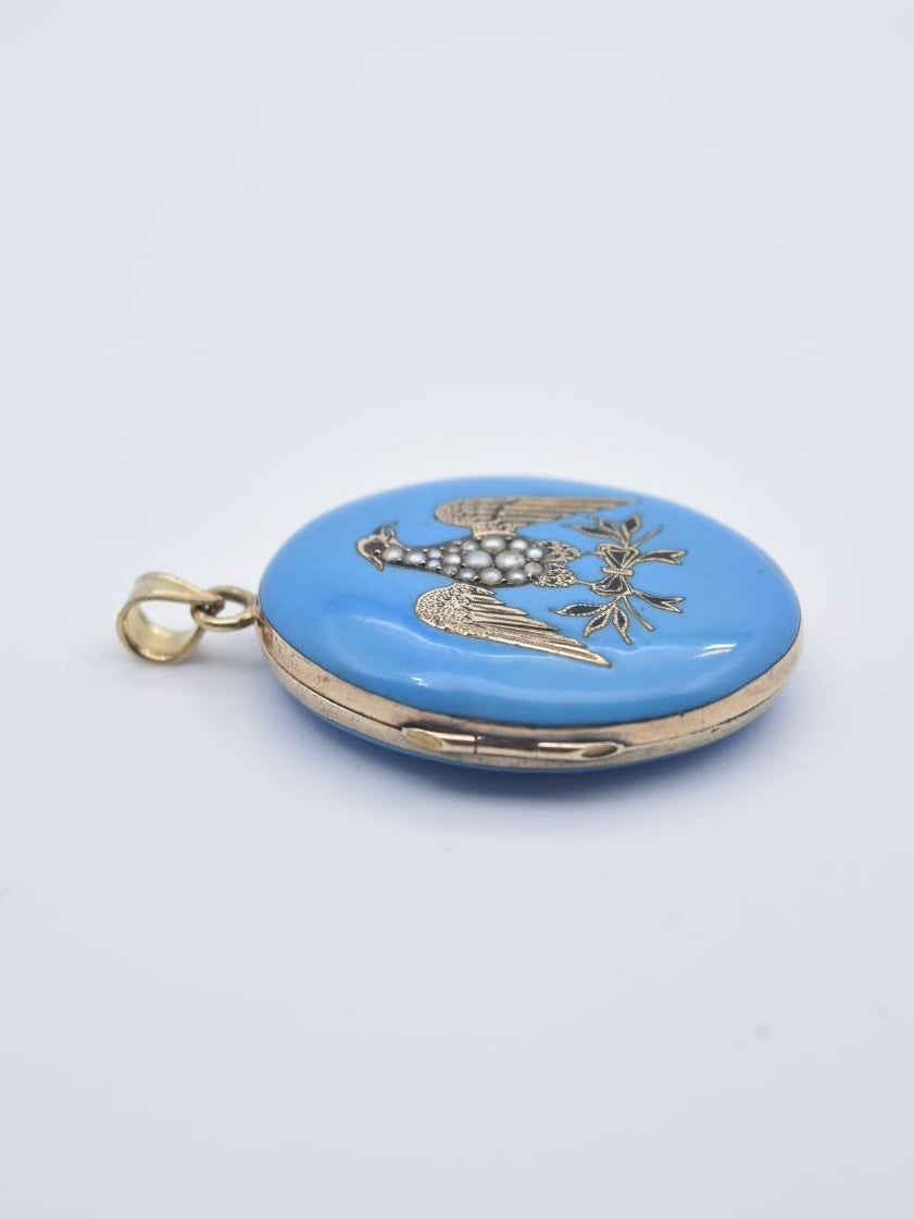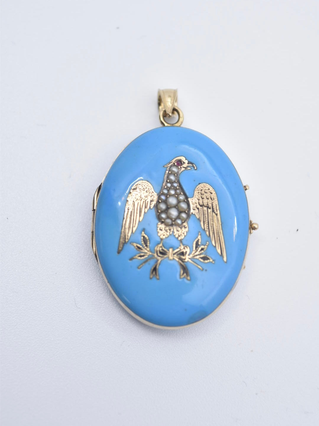 维多利亚 14K 金珐琅珍珠鹰形吊坠盒