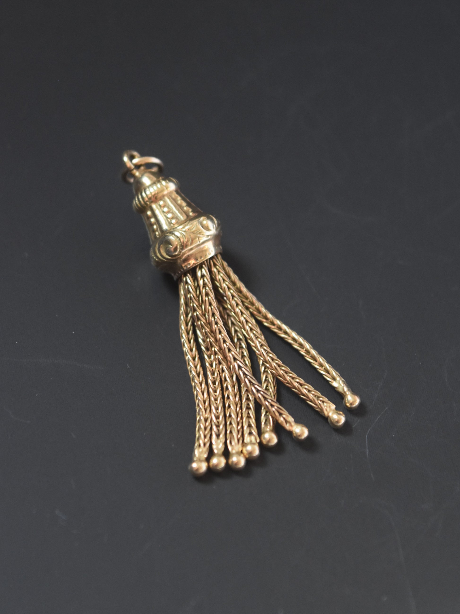 有趣而俏皮的维多利亚时代流苏吊坠,采用 14K 黄金打造。