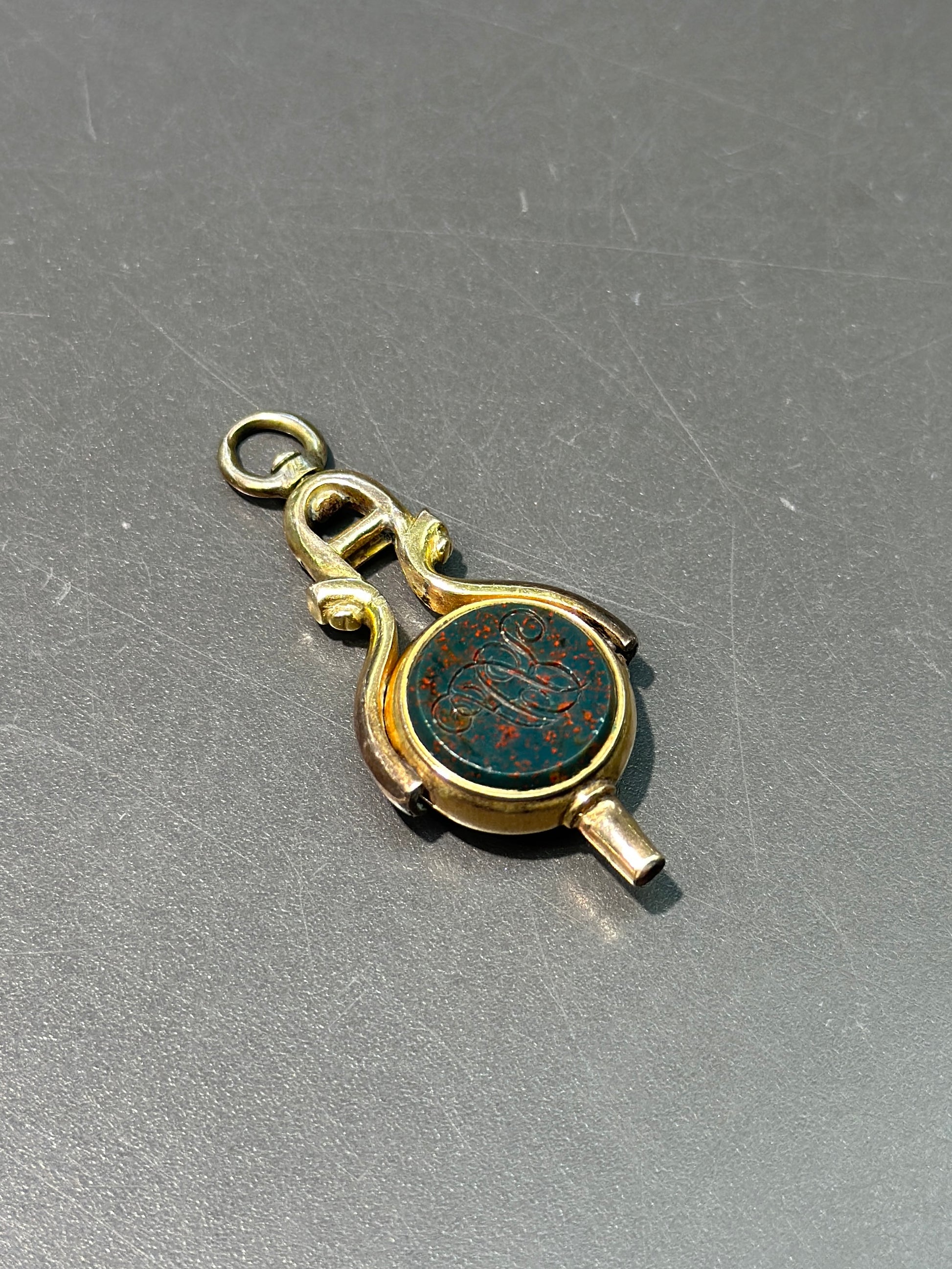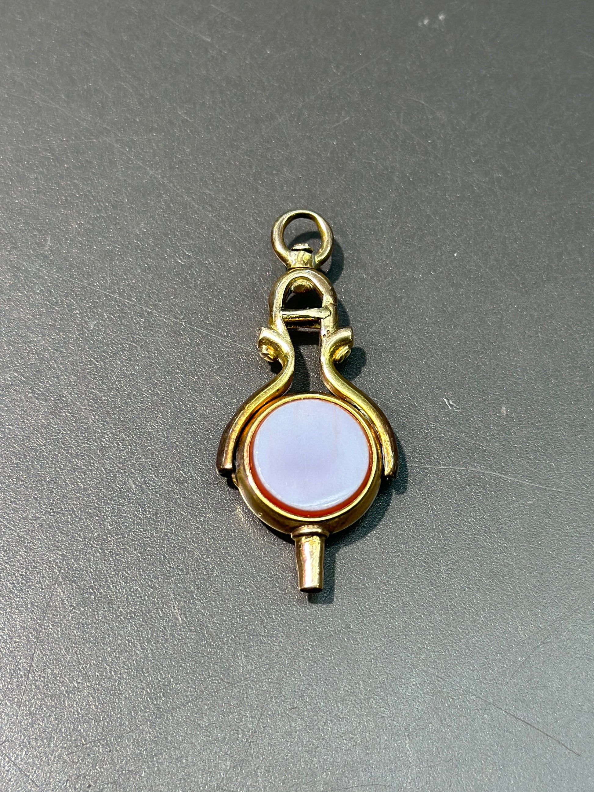 维多利亚风格 15CT 黄金硬石字母“RA”“AR”怀表钥匙吊坠