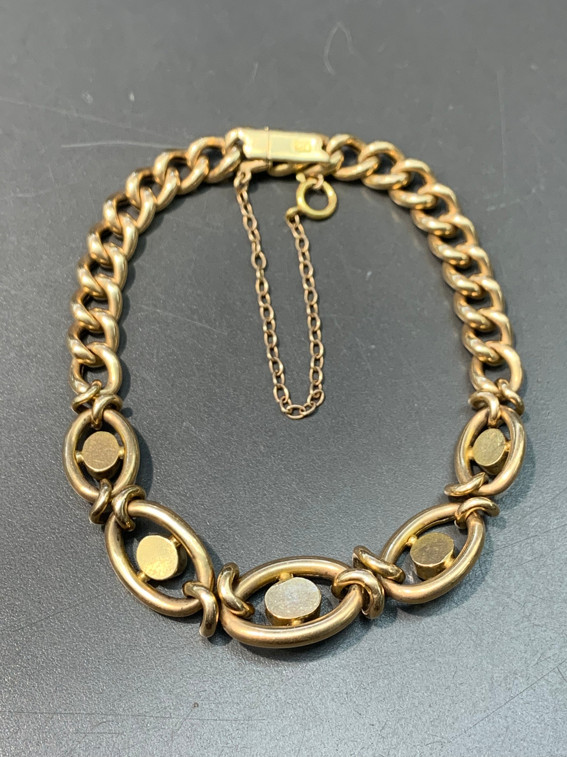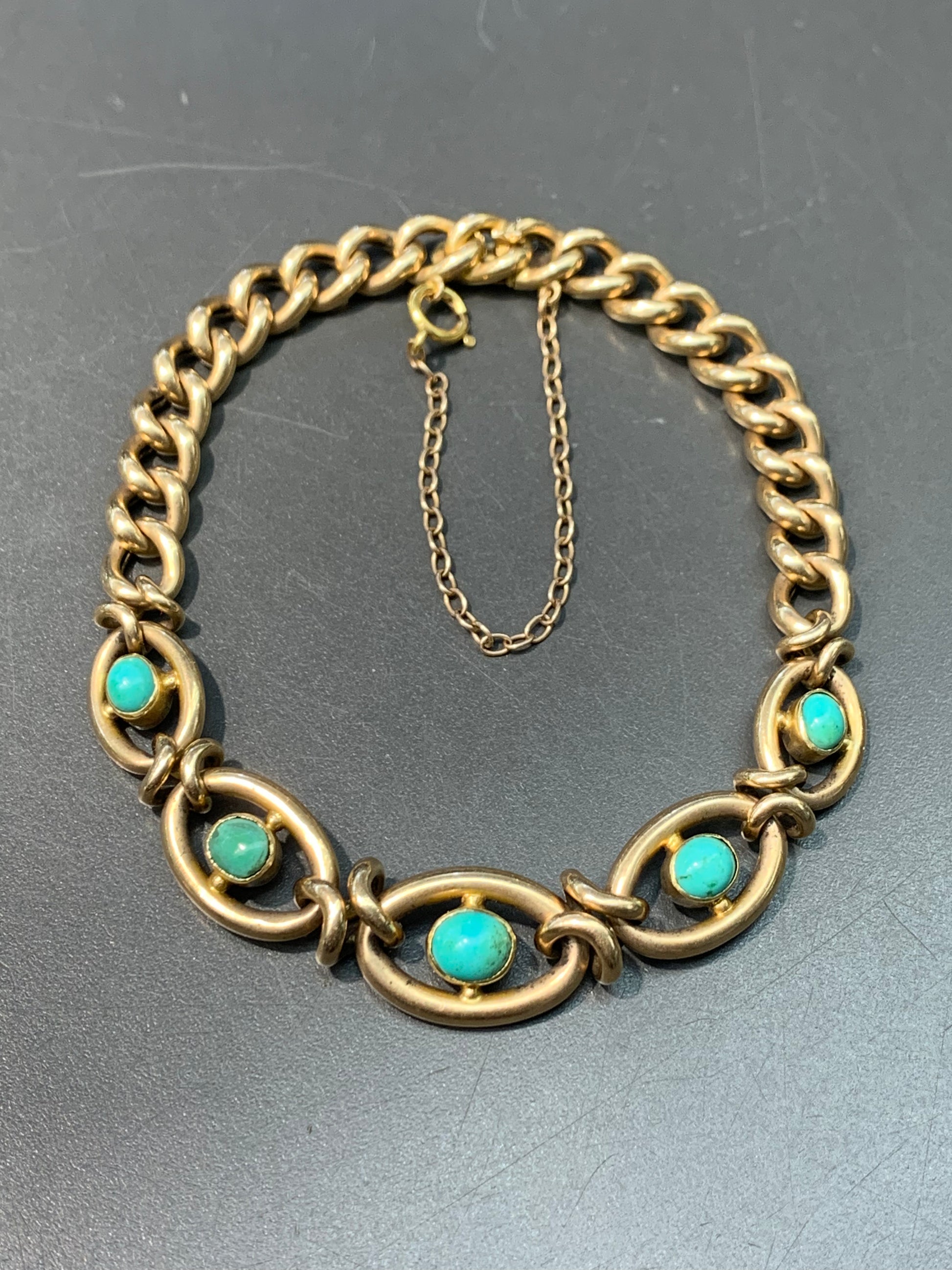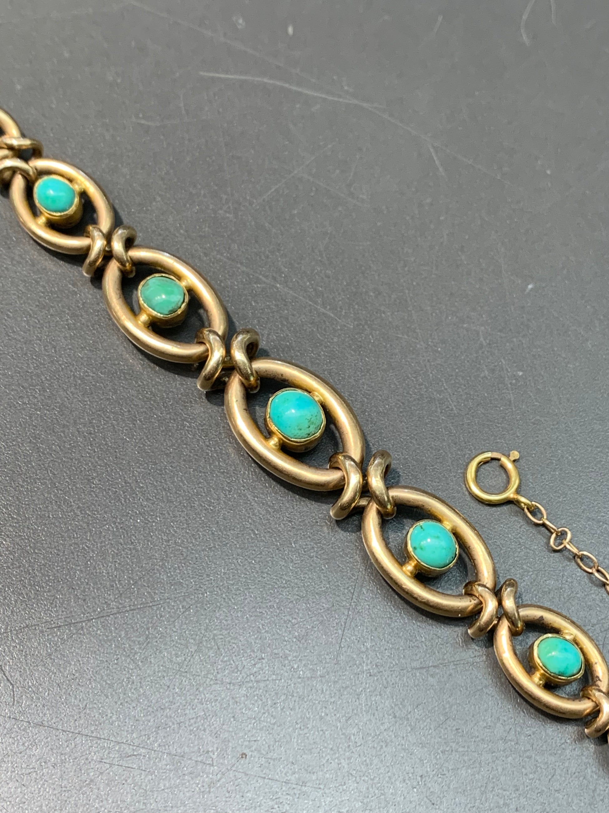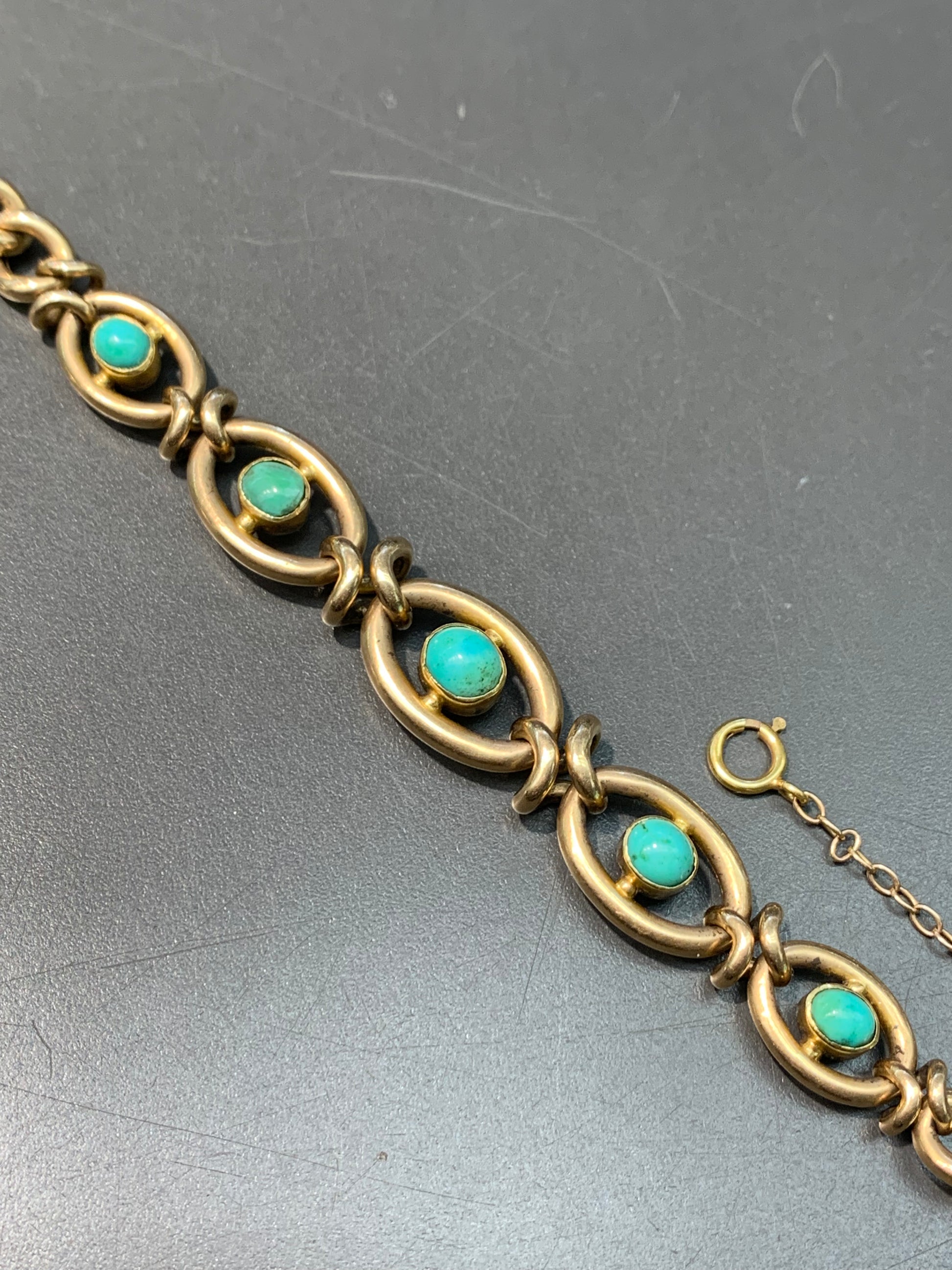 维多利亚 15K 金天然绿松石链环手链
