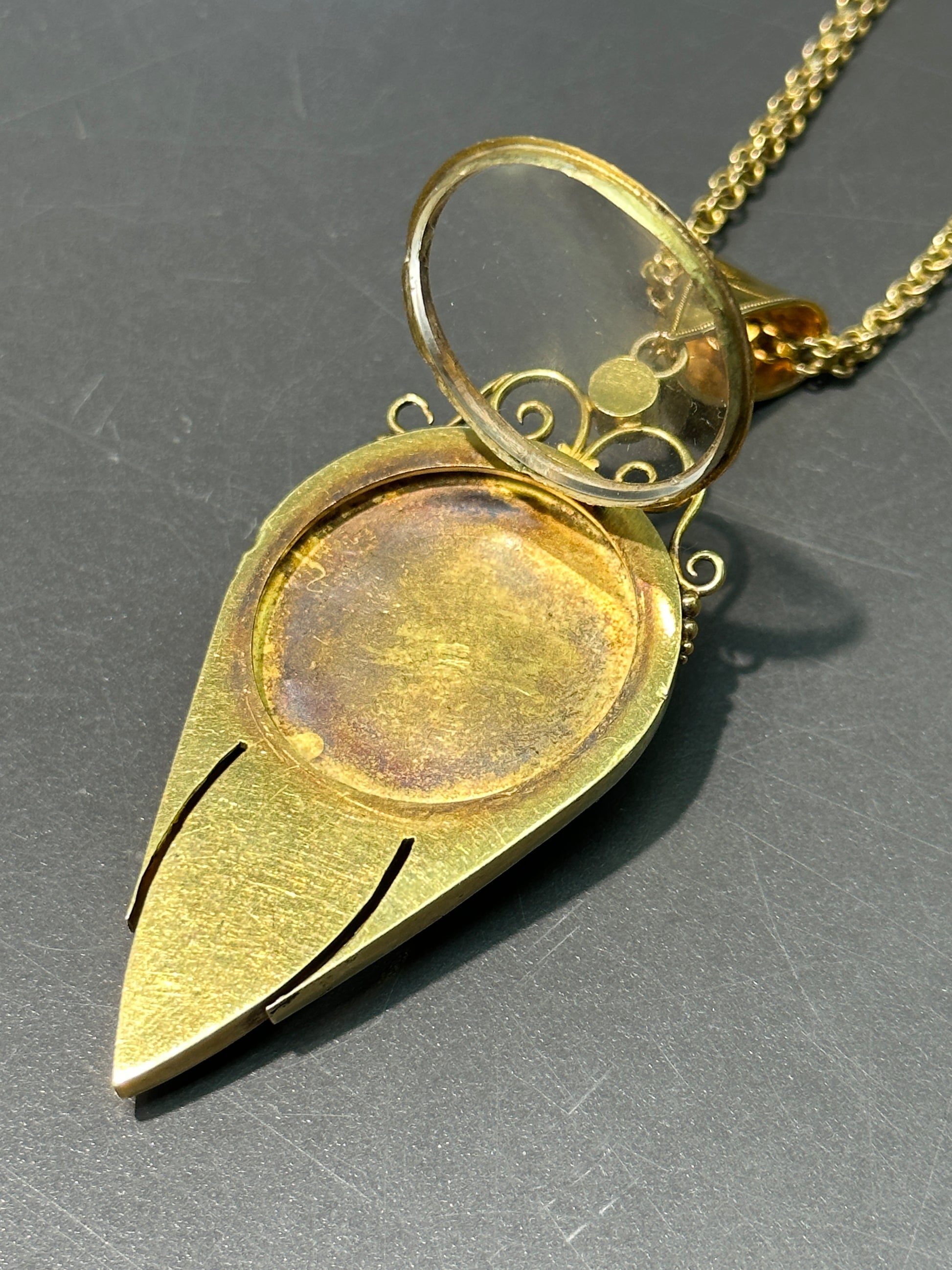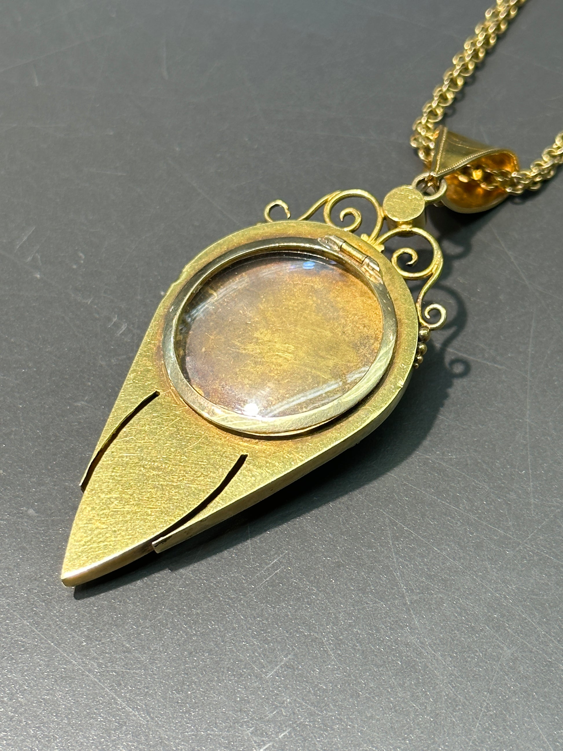 迷人的维多利亚时代吊坠/盒式项链,采用闪亮的 22K 金制成,精心装饰,采用伊特鲁里亚风格的金银细丝和颗粒工艺。这款吊坠的核心是一只华丽的圣甲虫,从精致的触角到独特的翼壳,都用玻璃镶嵌物精心拼接而成。一款真正非凡的吊坠盒式项链,体现了维多利亚时代精致和艺术奉献的精髓!