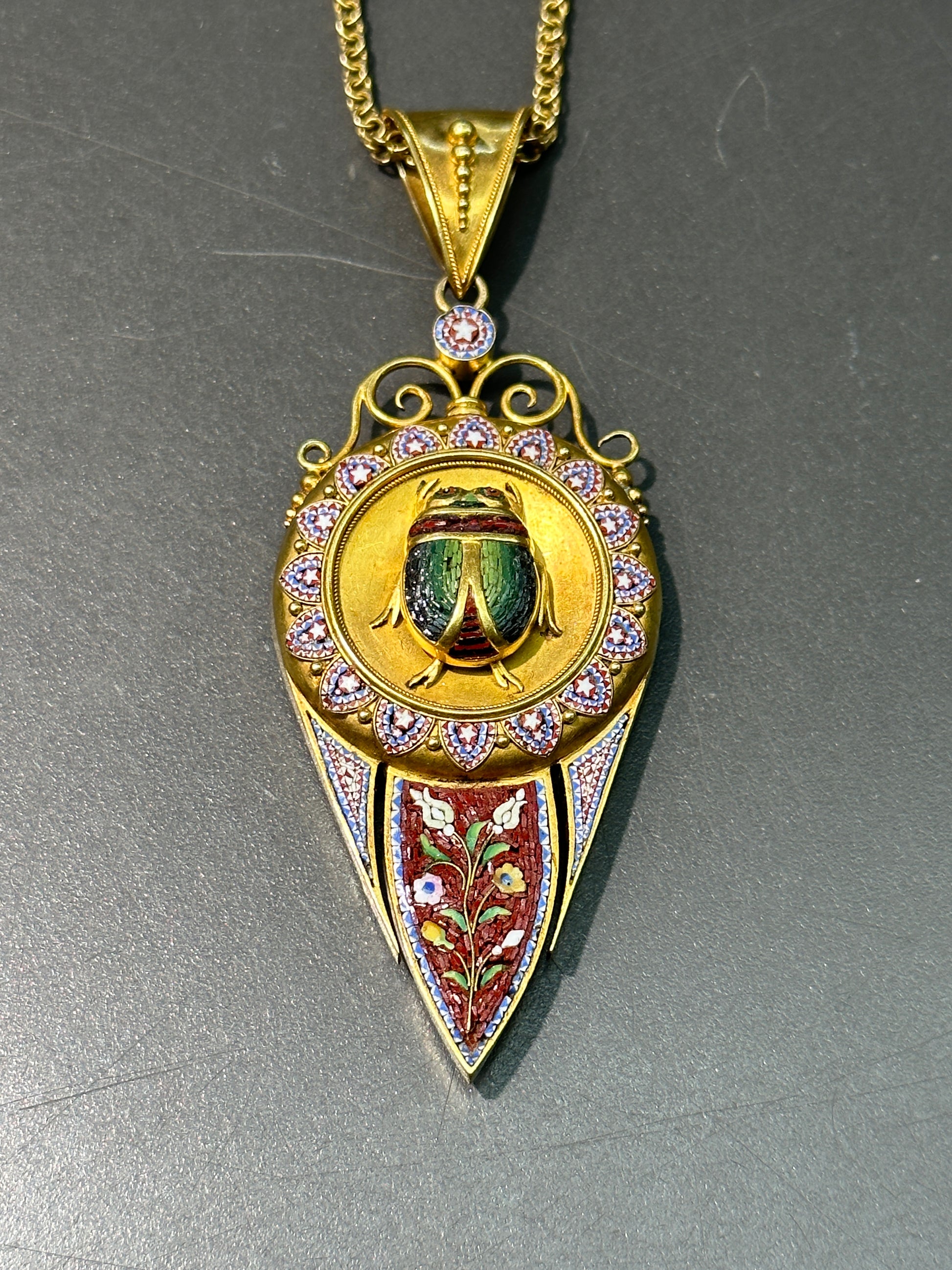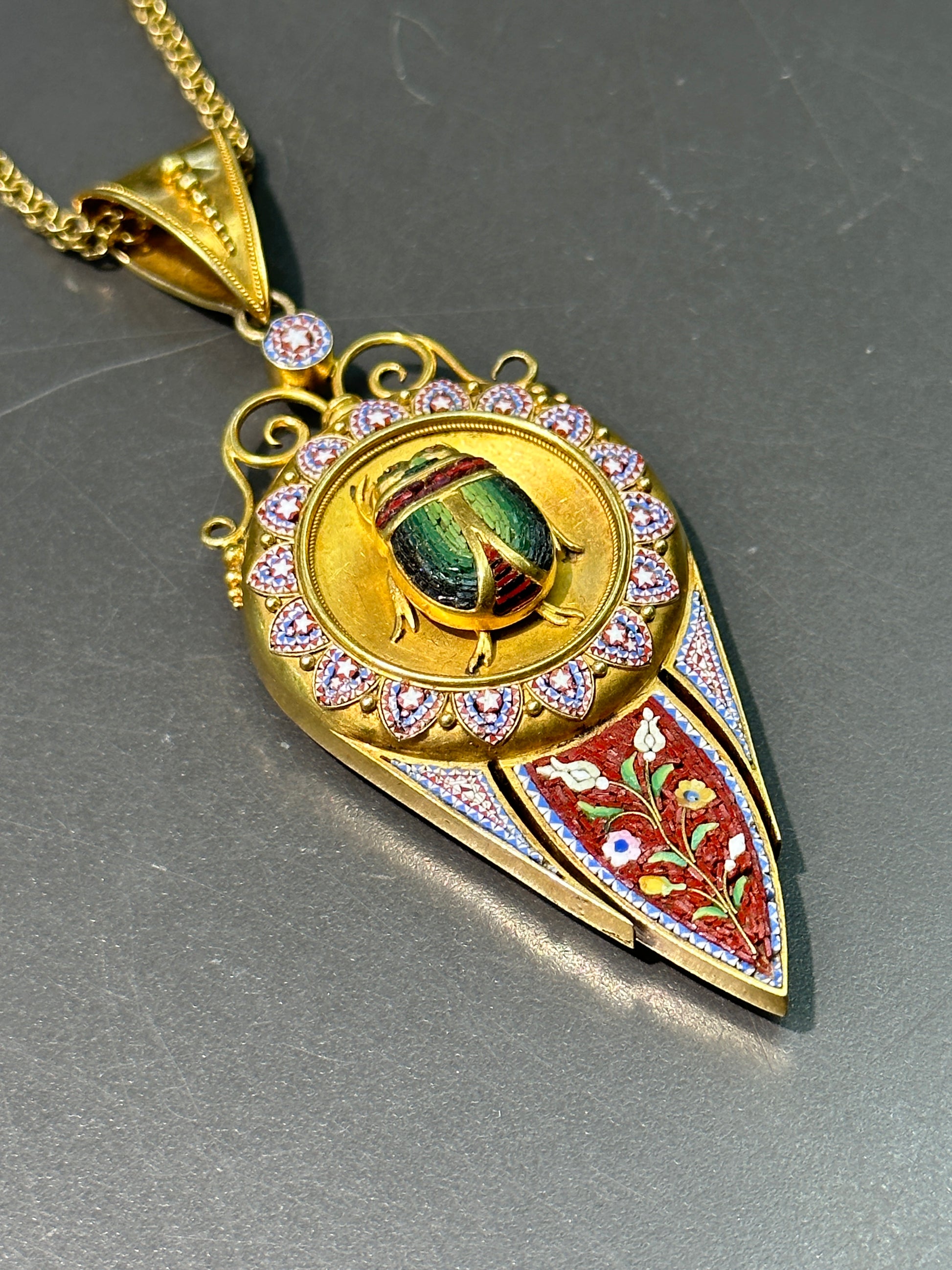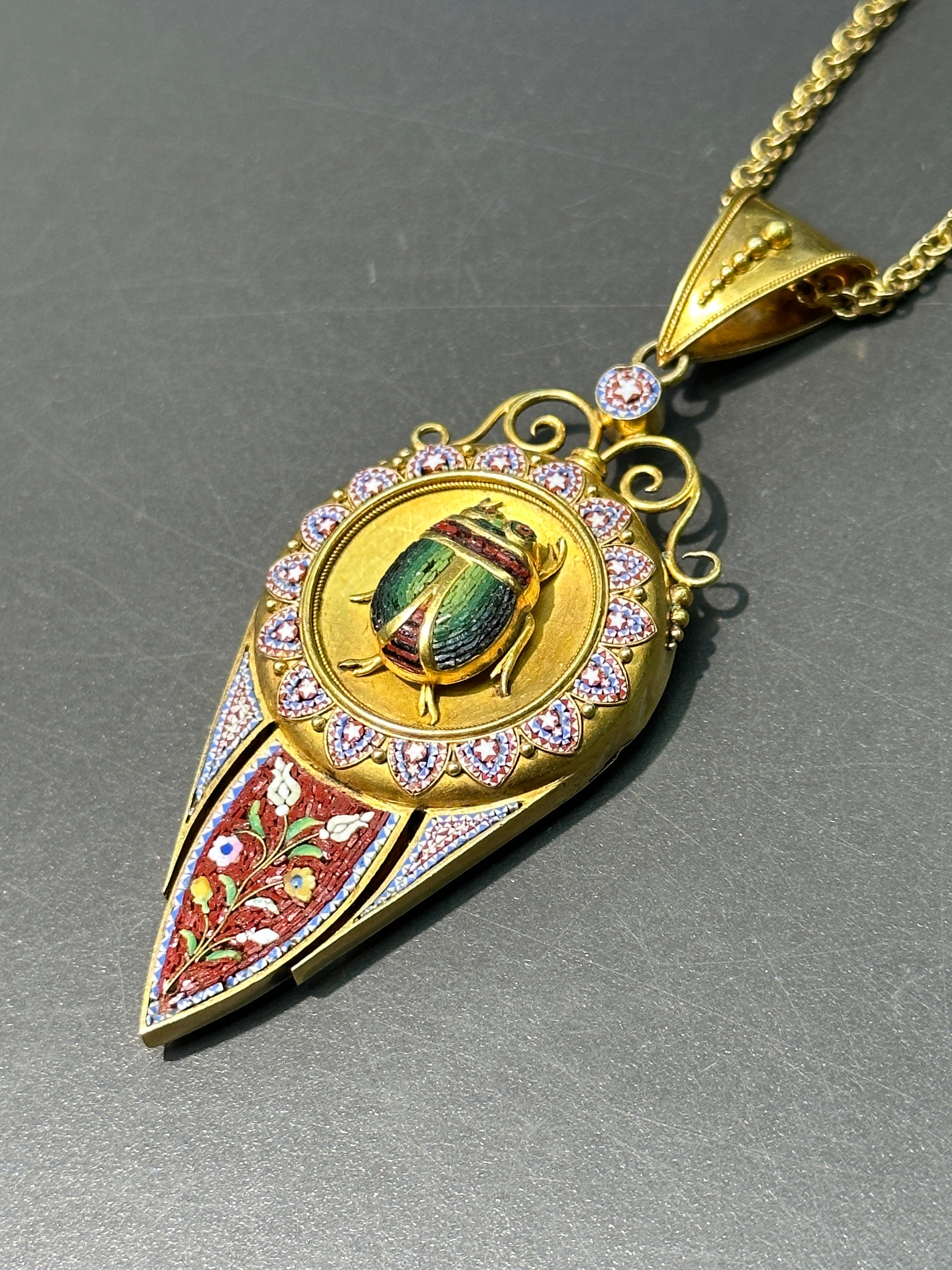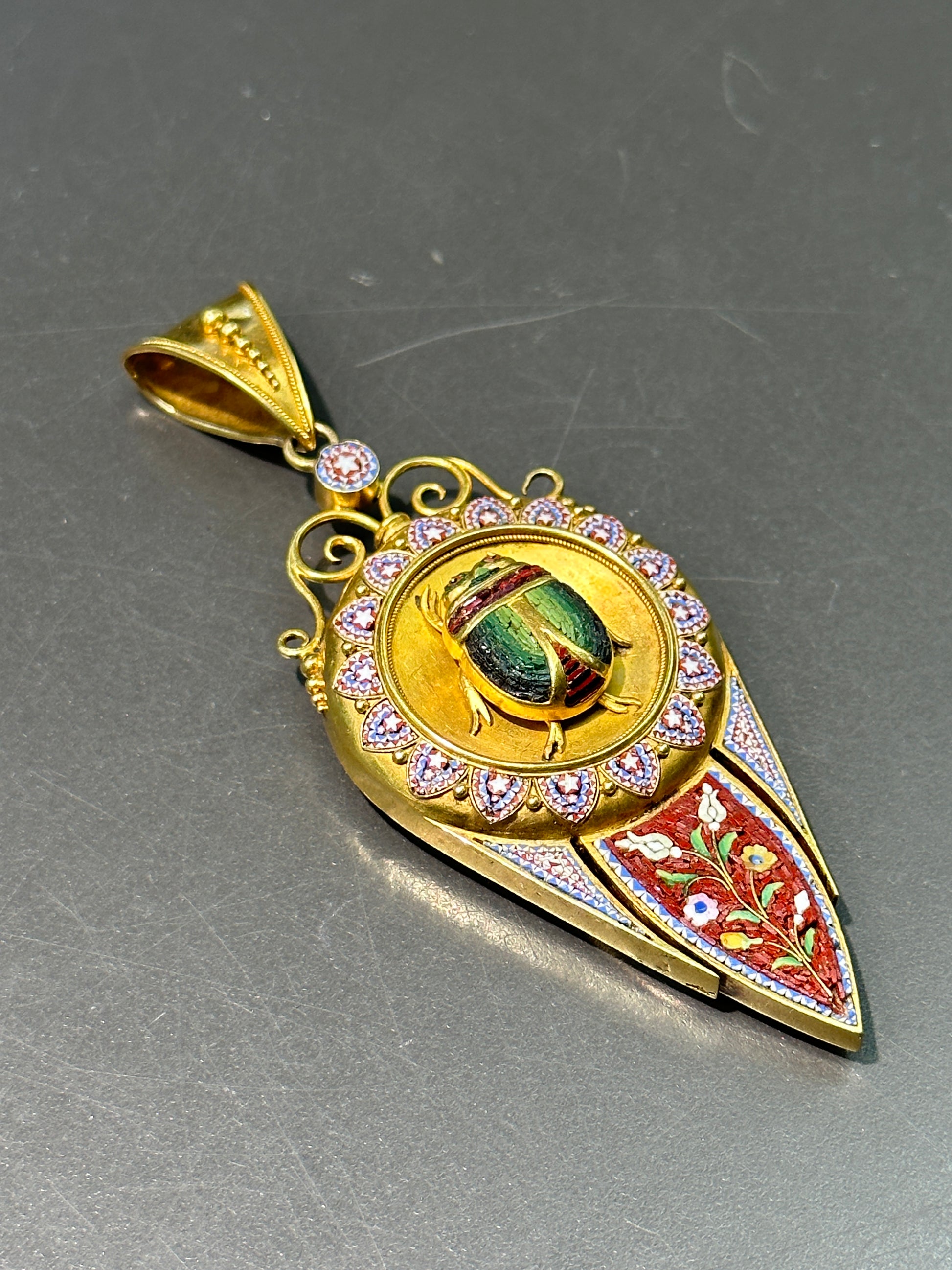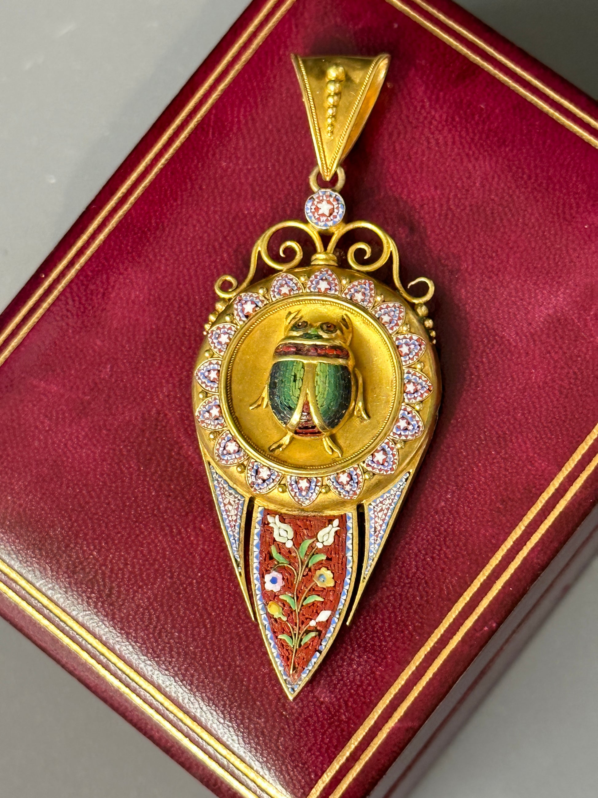 维多利亚伊特鲁里亚 22K 金微马赛克圣甲虫吊坠