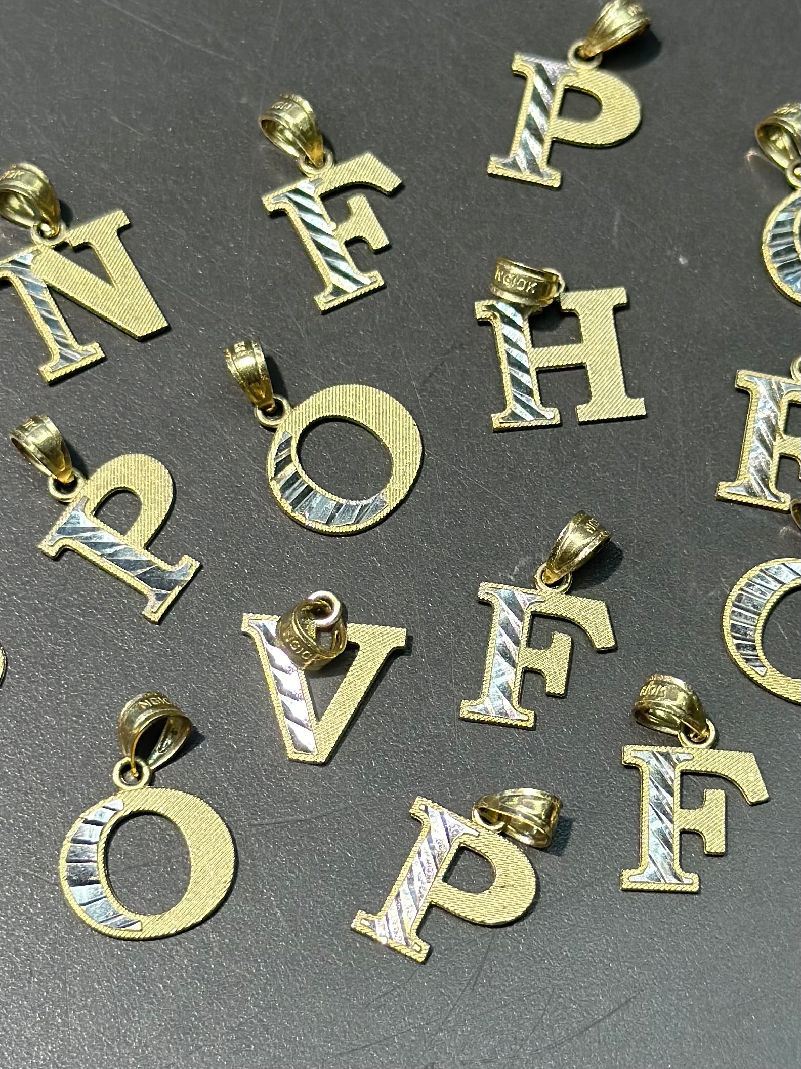 复古 10K 双色金字母吊饰