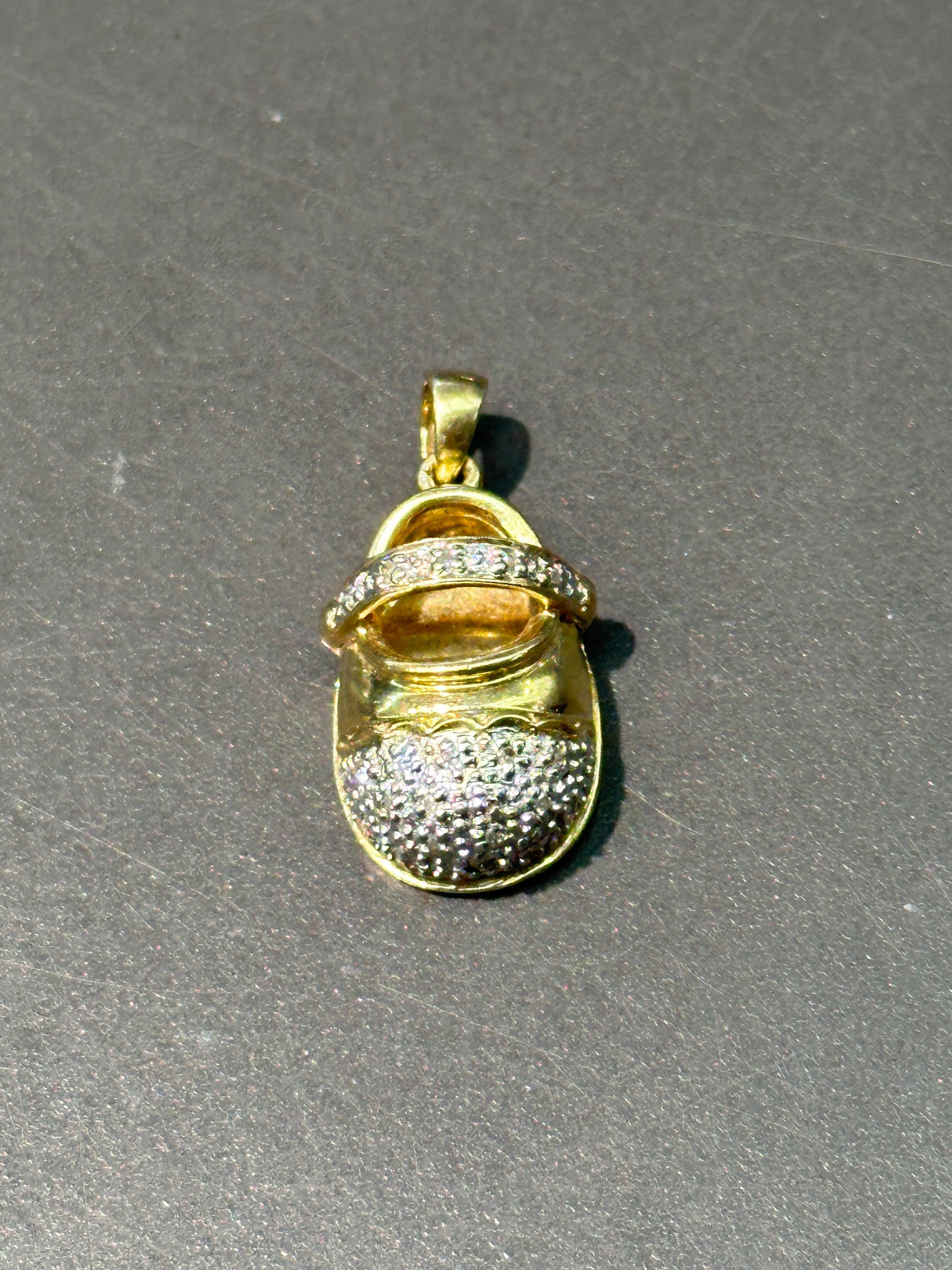 复古 14K 金 0.12 CTW 钻石婴儿鞋吊坠