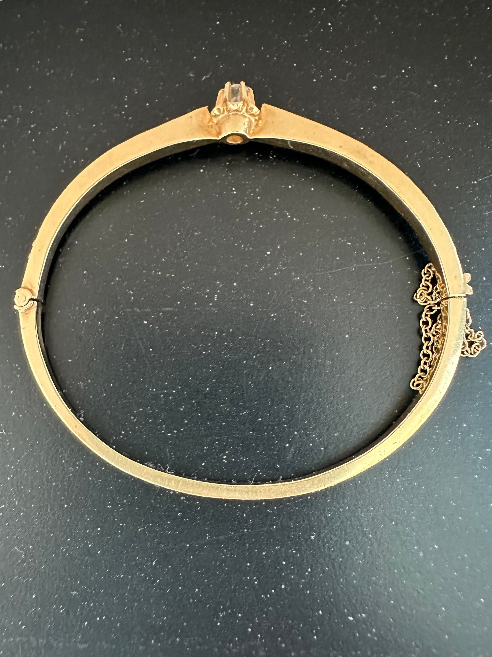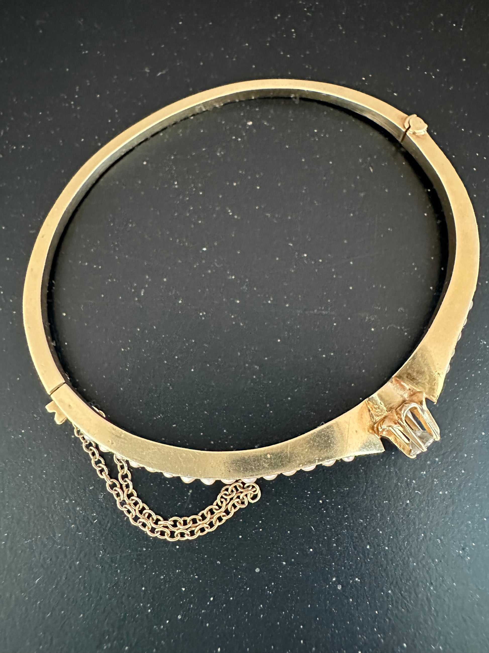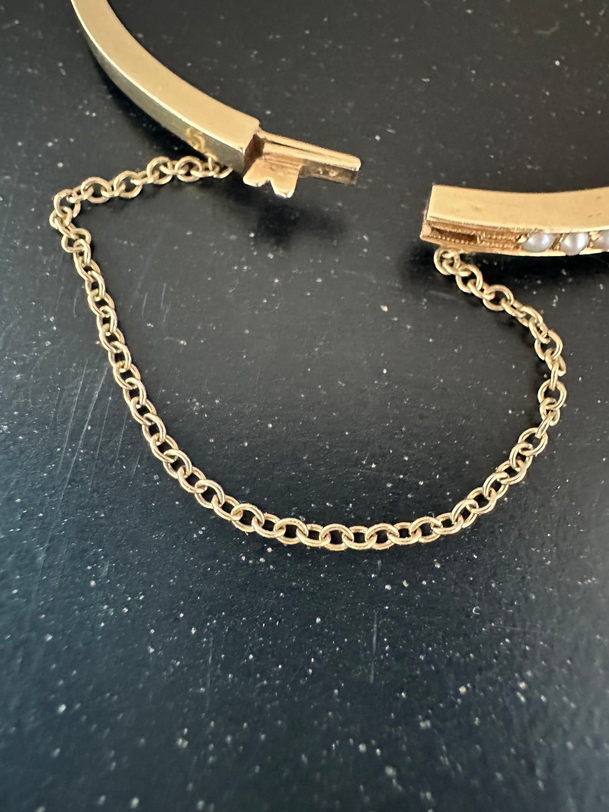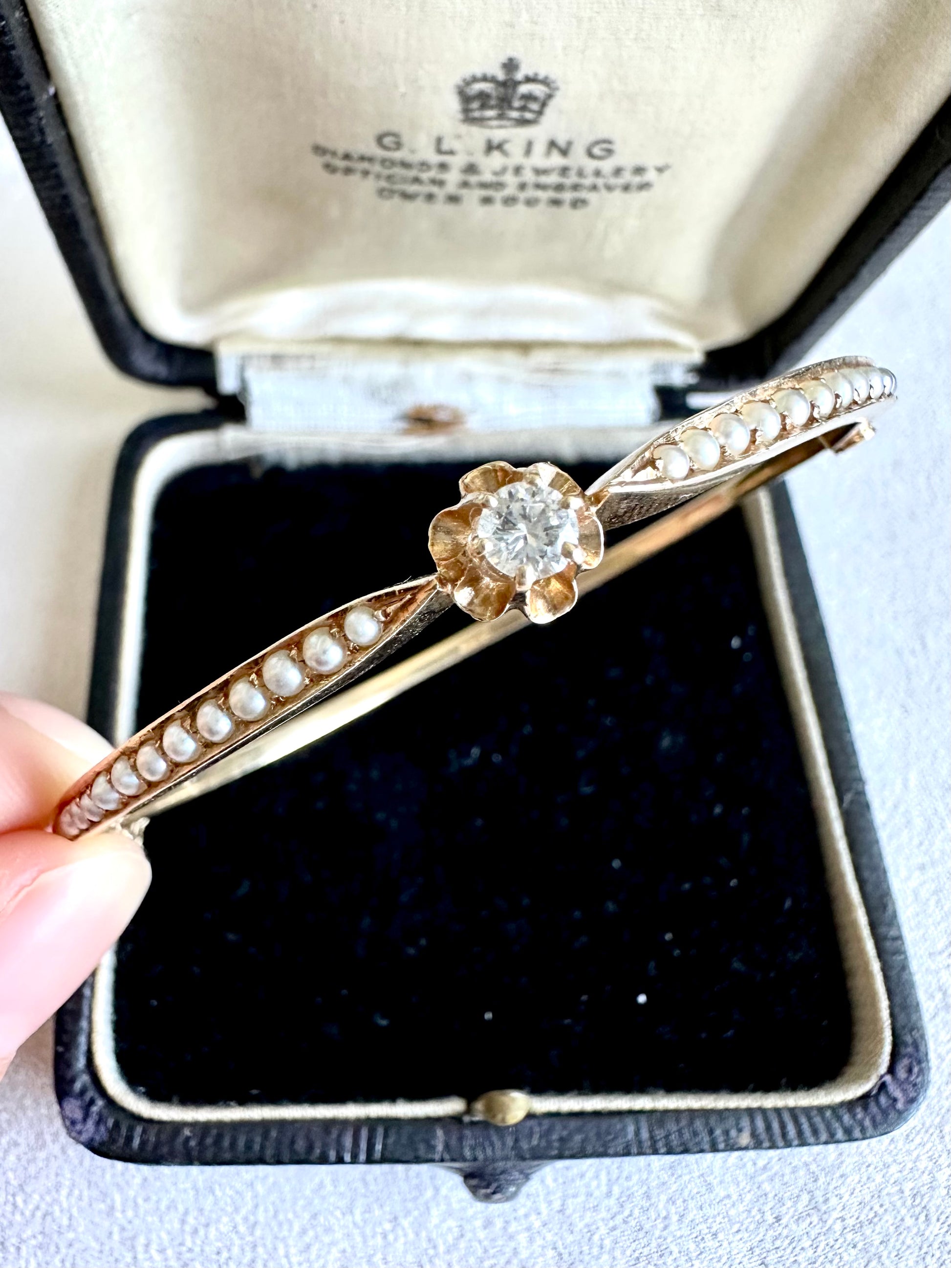 复古 14K 金 0.25 CTW 钻石珍珠手镯