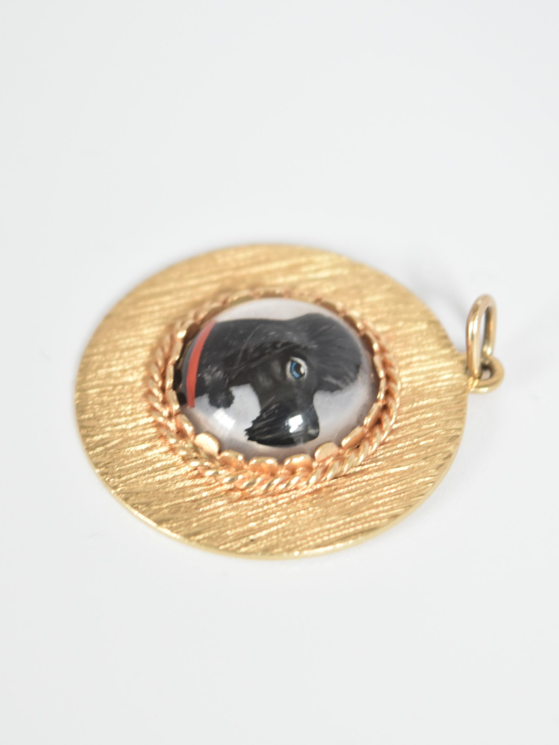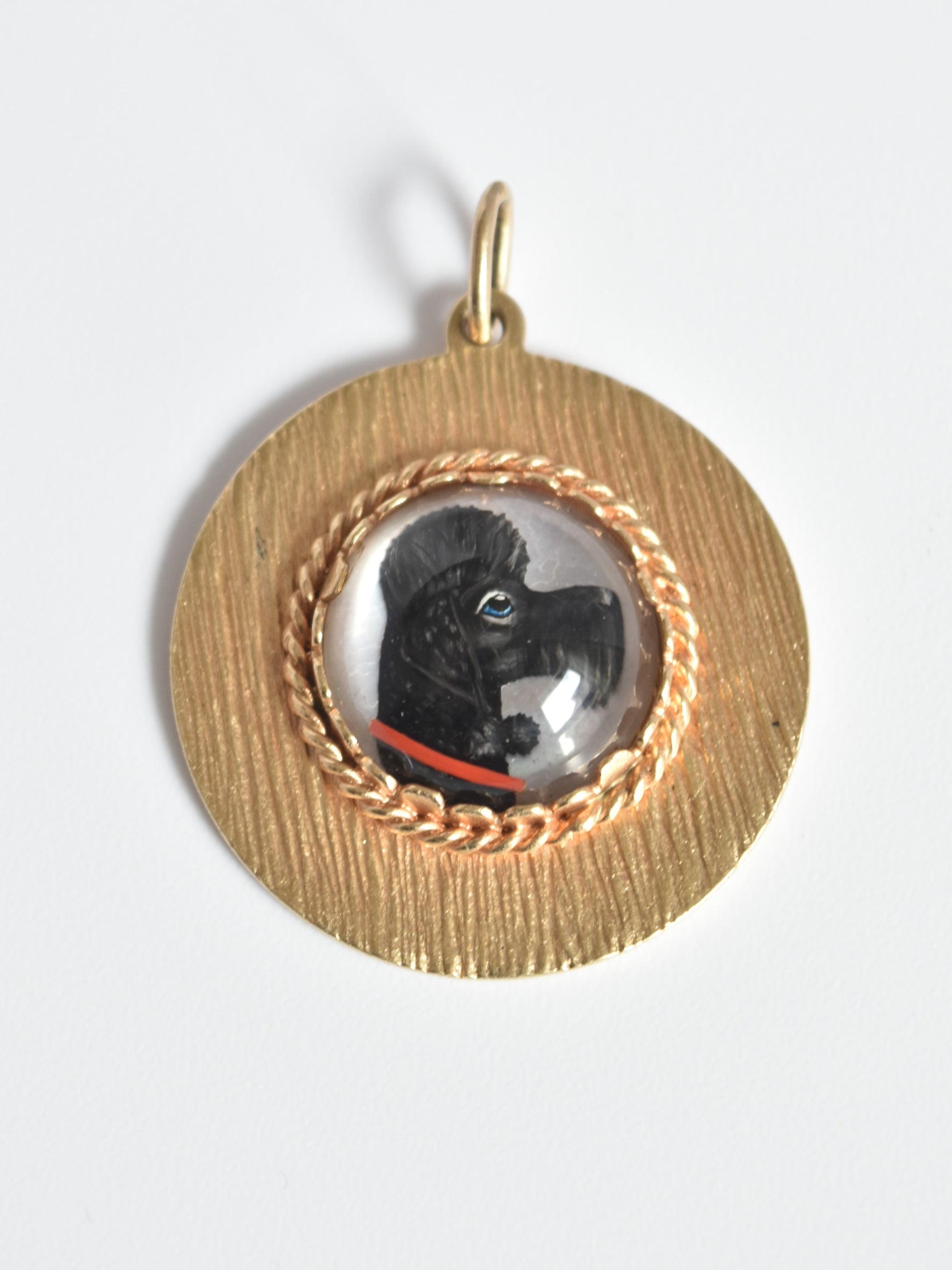 复古 14K 黄金反向彩绘埃塞克斯水晶黑色贵宾犬吊坠