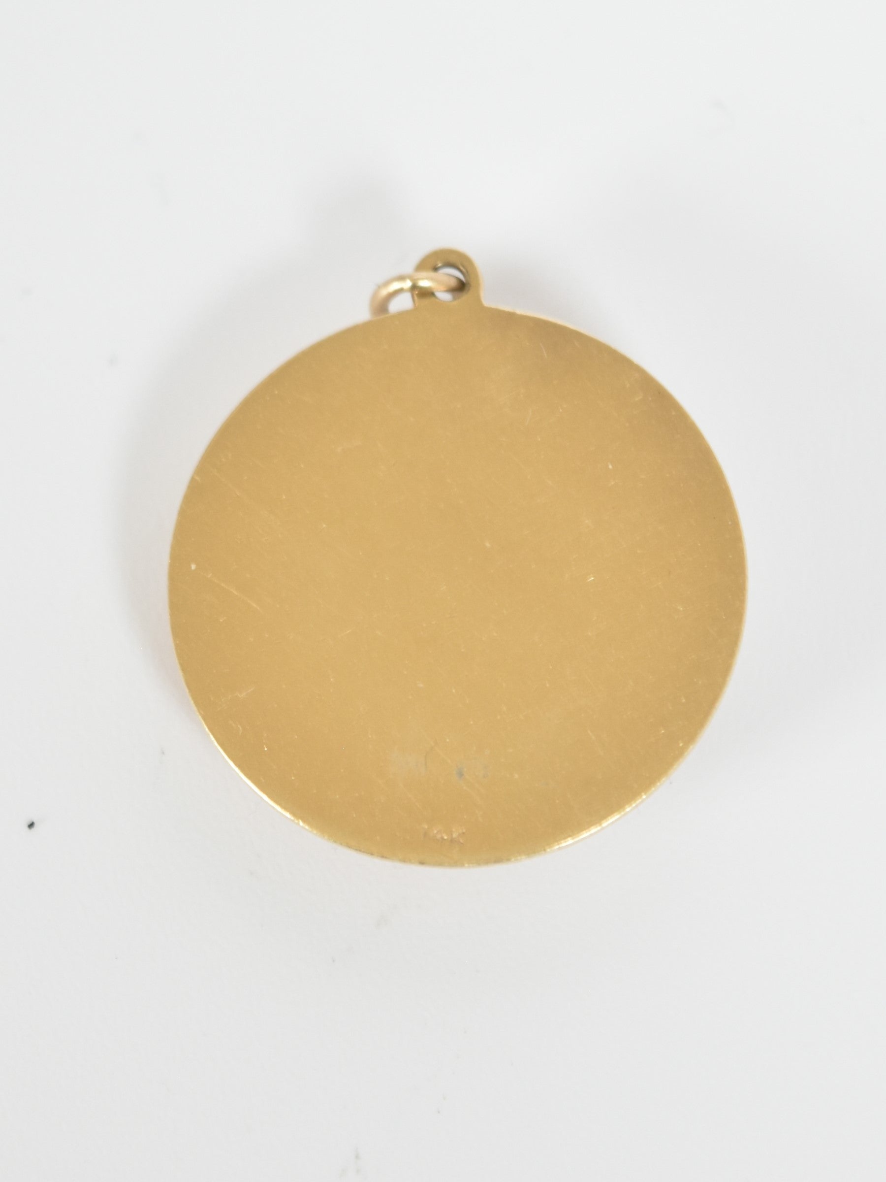 一只可爱迷人的贵宾犬凹版雕刻和反向彩绘珐琅,镶嵌在 14K 金背衬上。