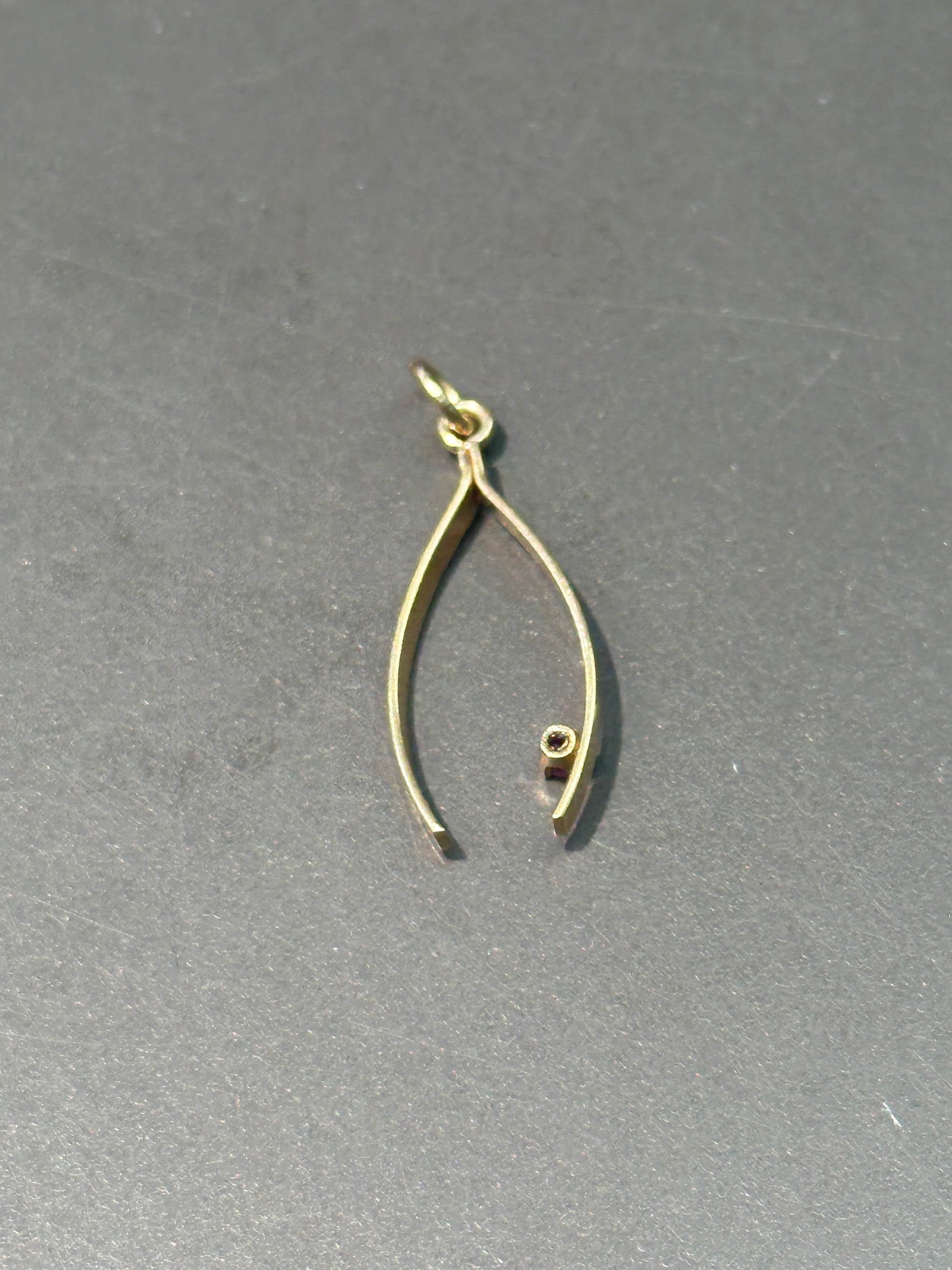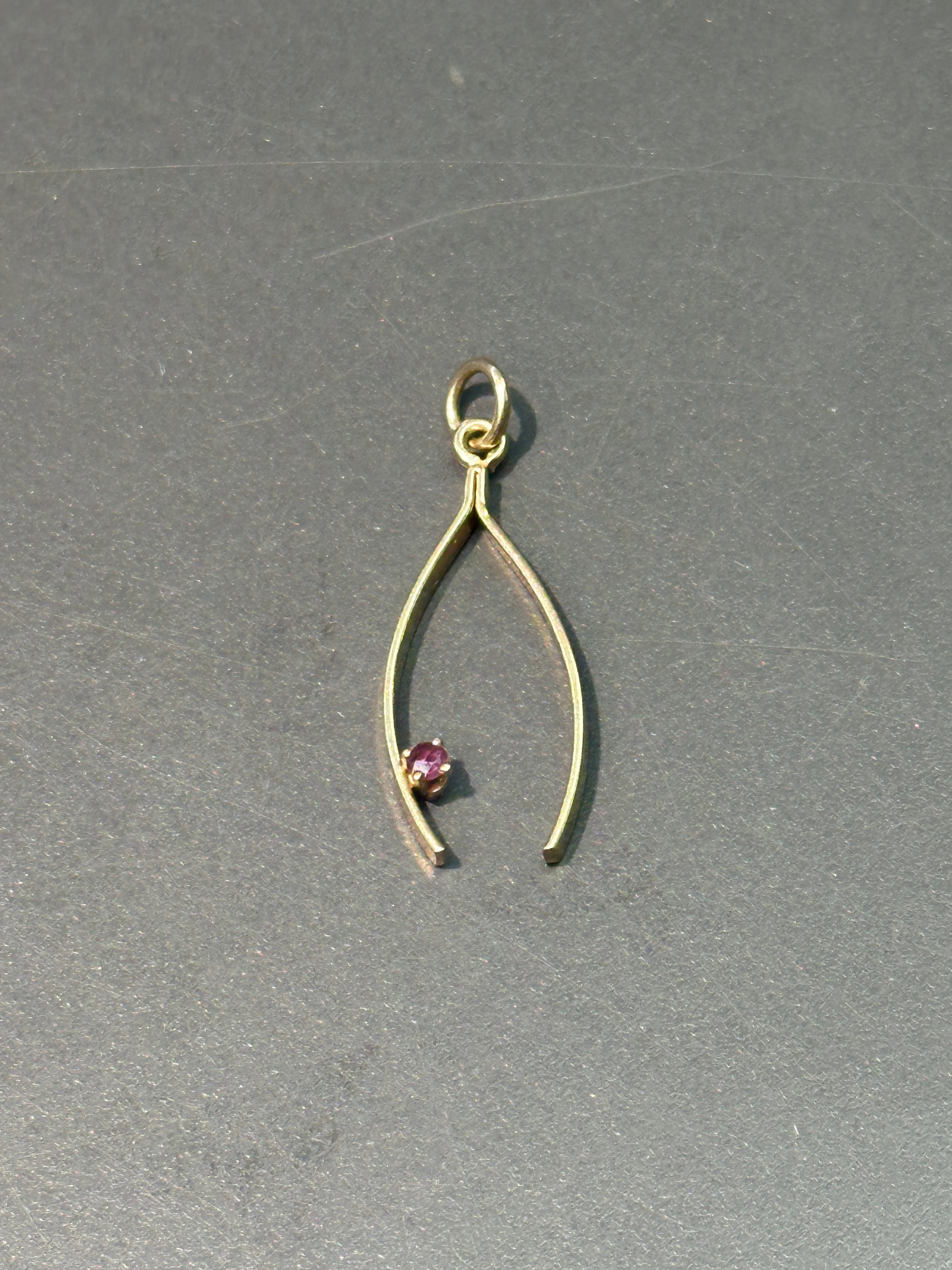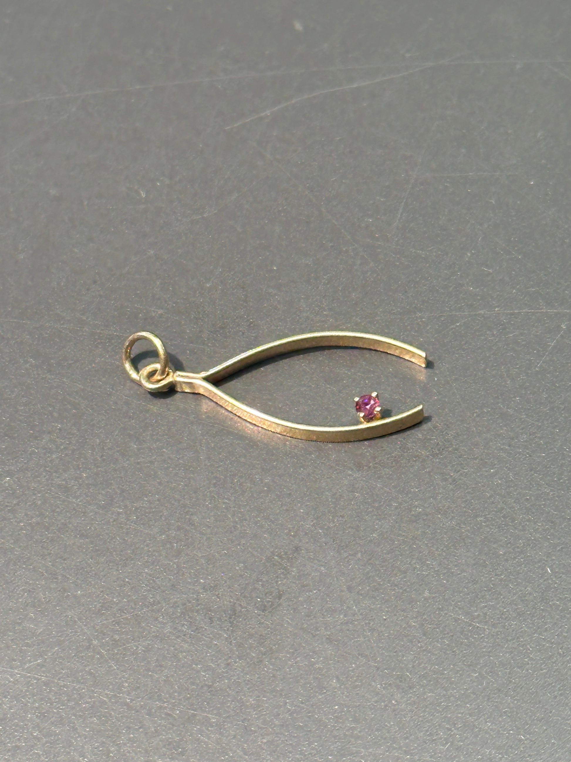 复古 14K 金红宝石许愿骨吊坠