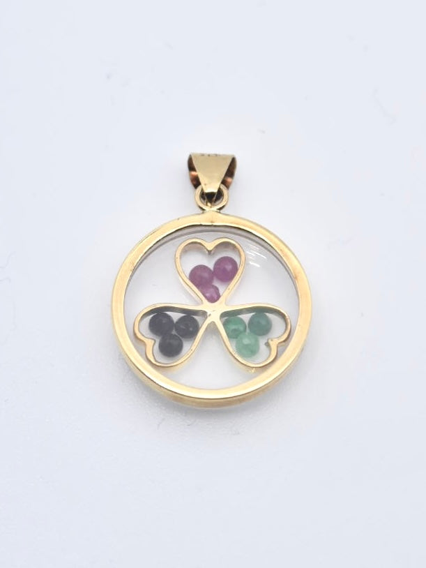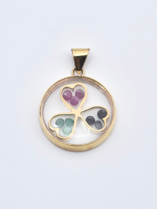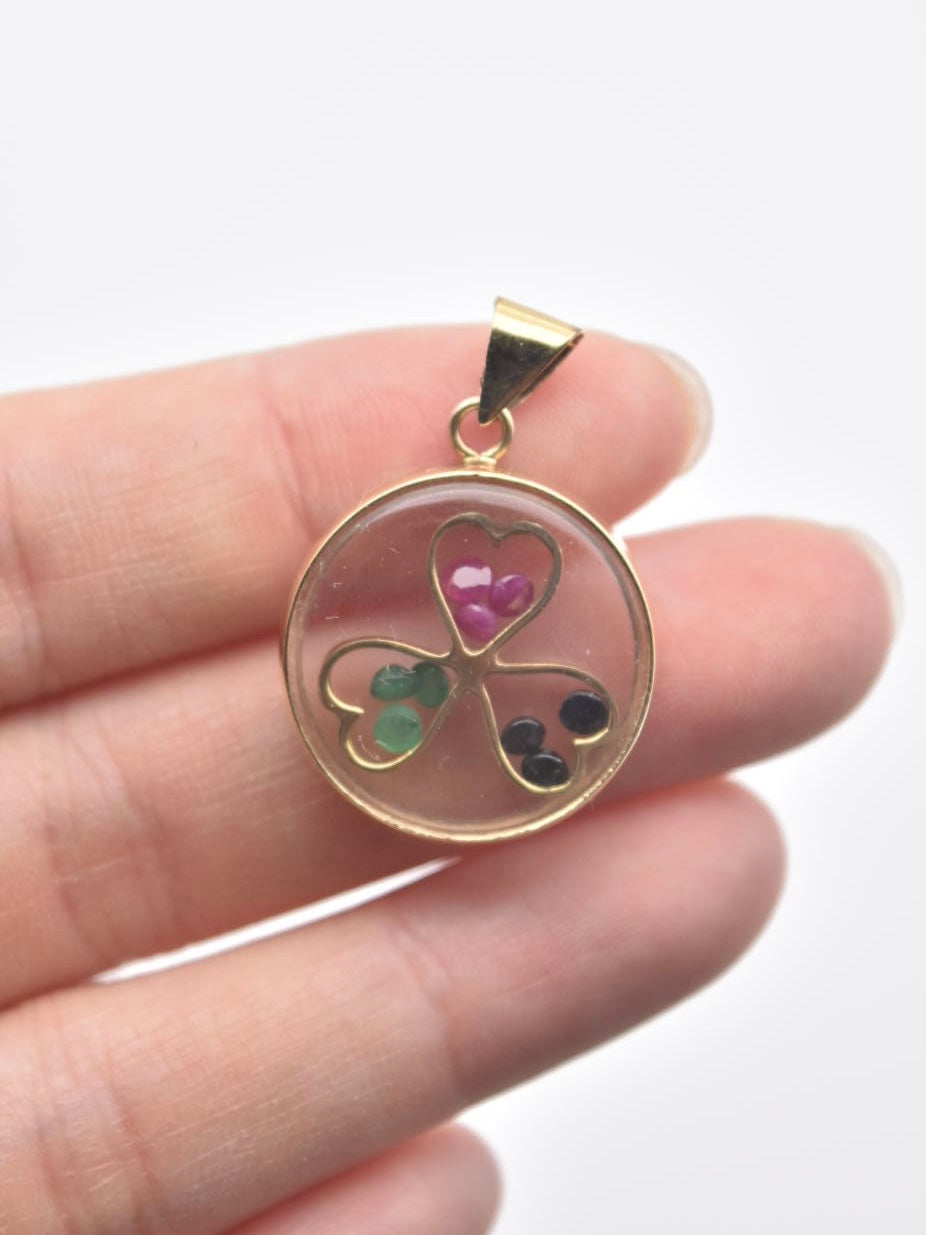复古 14K 金蓝宝石红宝石绿宝石三叶草摇动器吊饰