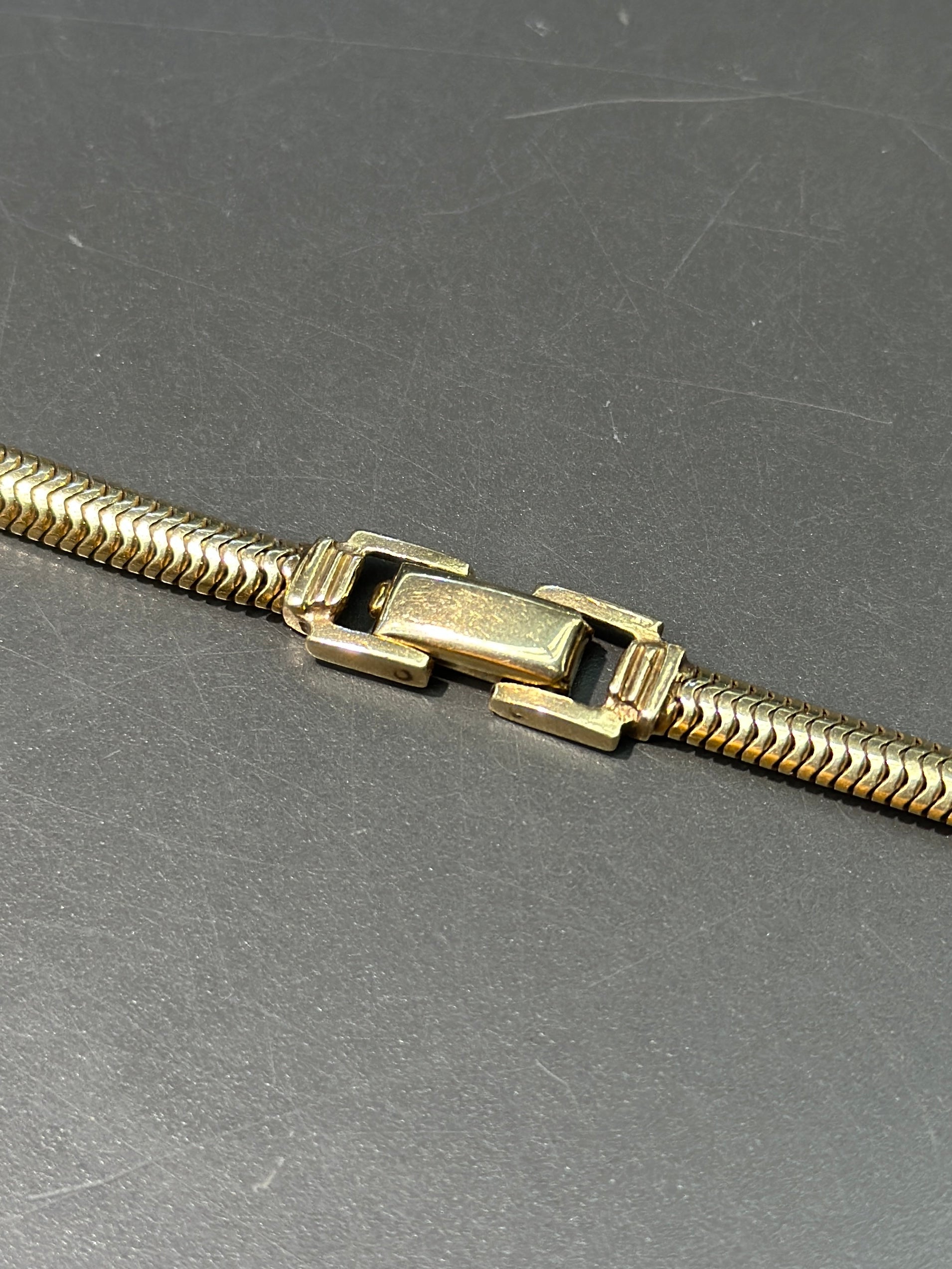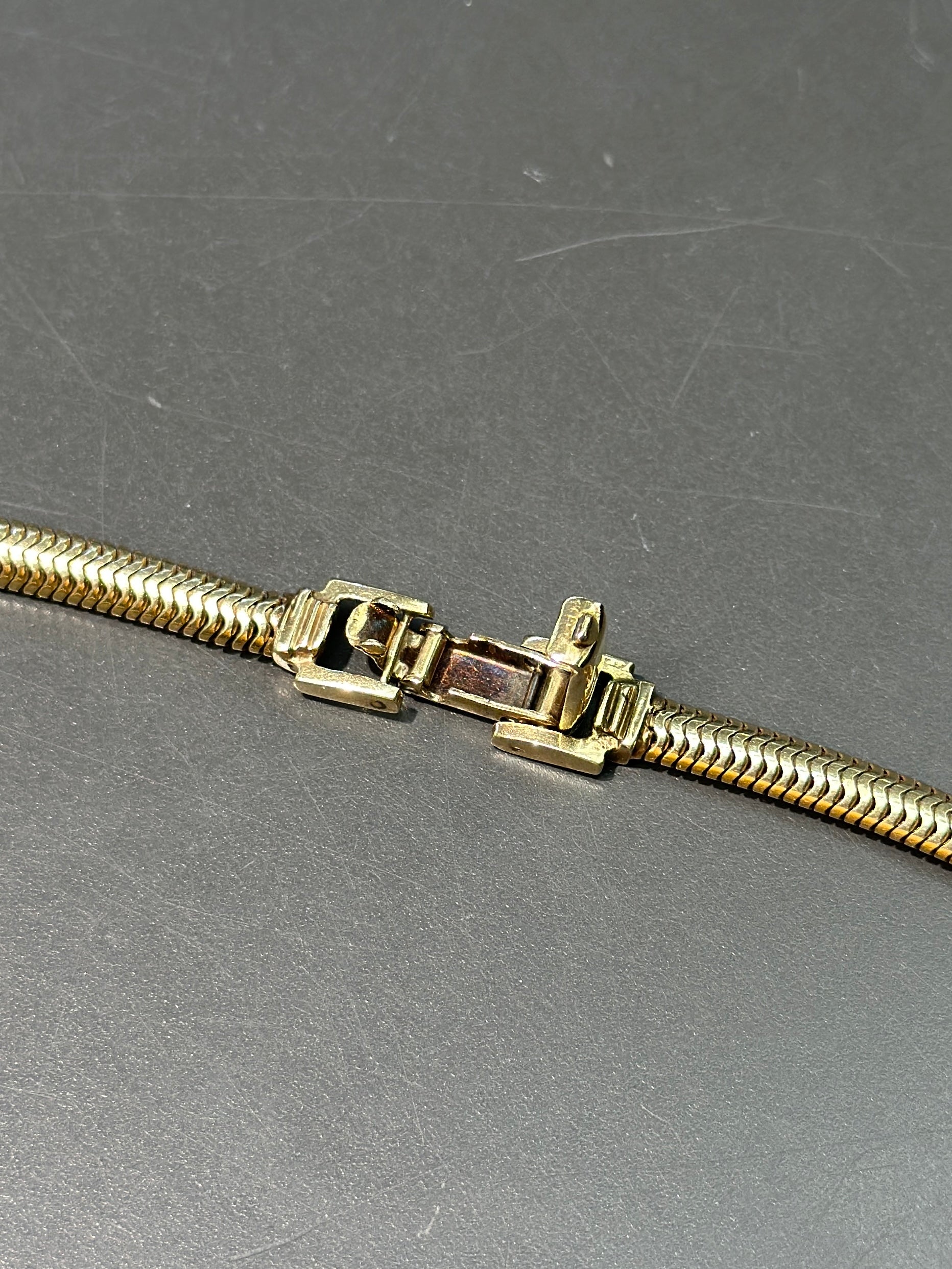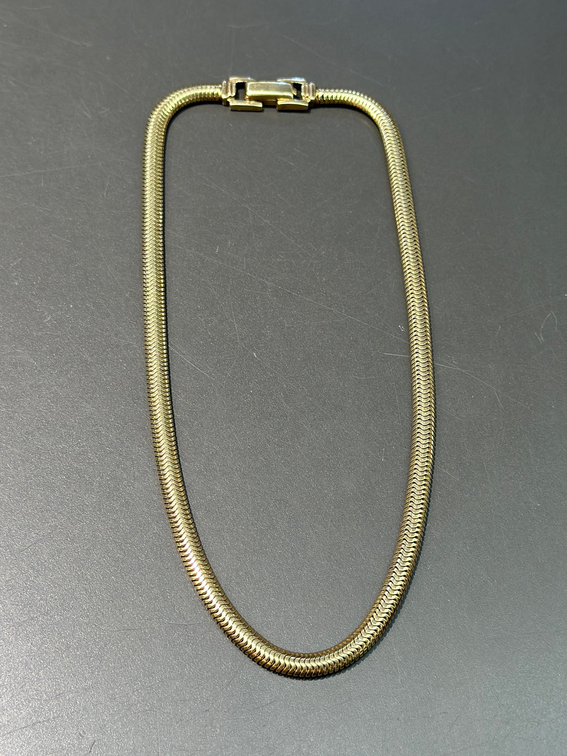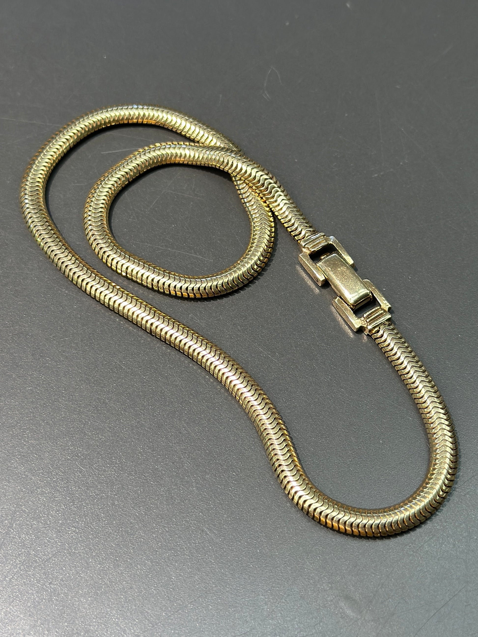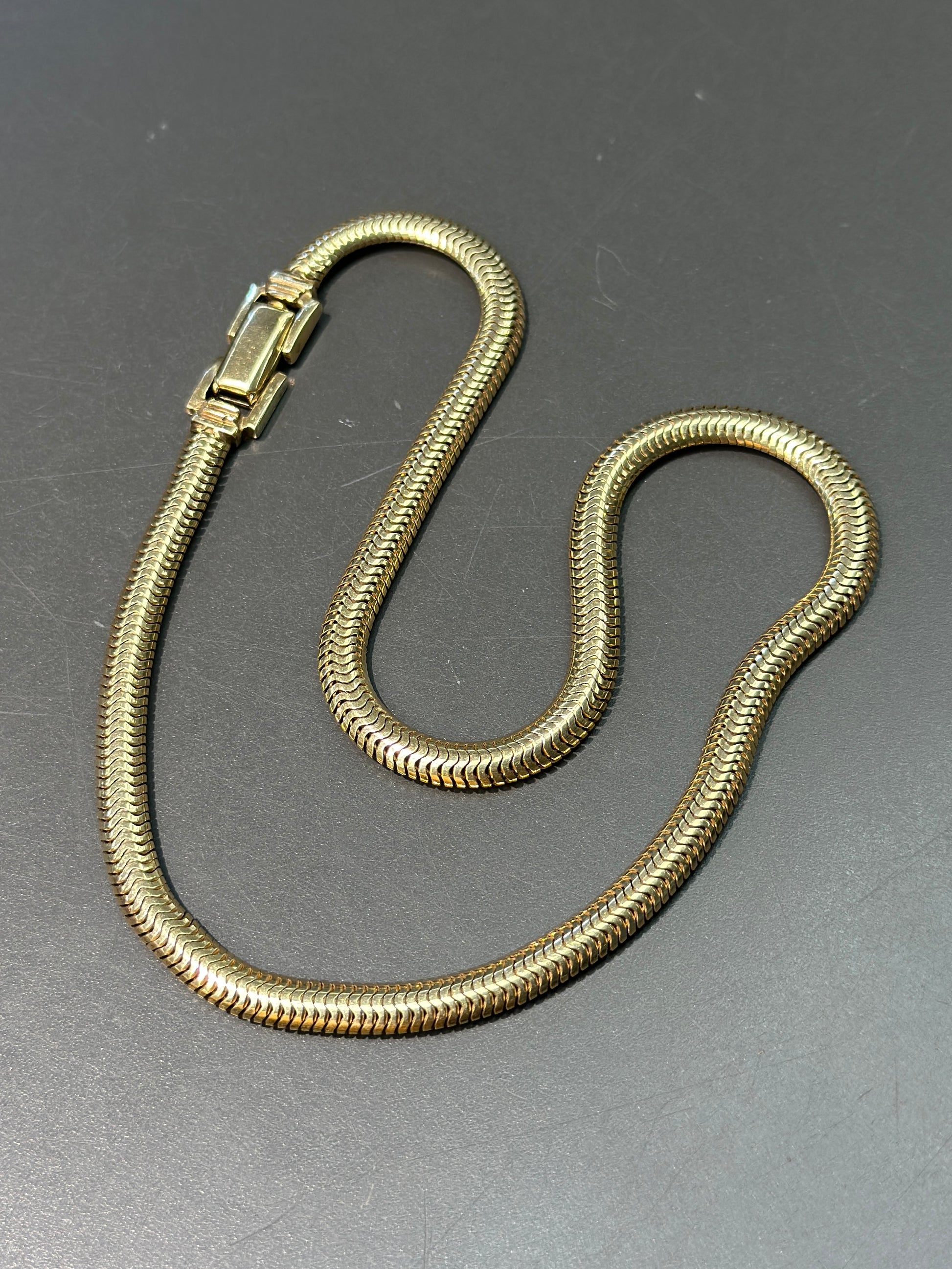 约 20 世纪 40 年代的蛇形链项链,采用 14K 金精制而成,光滑细腻。长度为 15.5 英寸,宽度为 5.0 毫米。配有折叠扣。