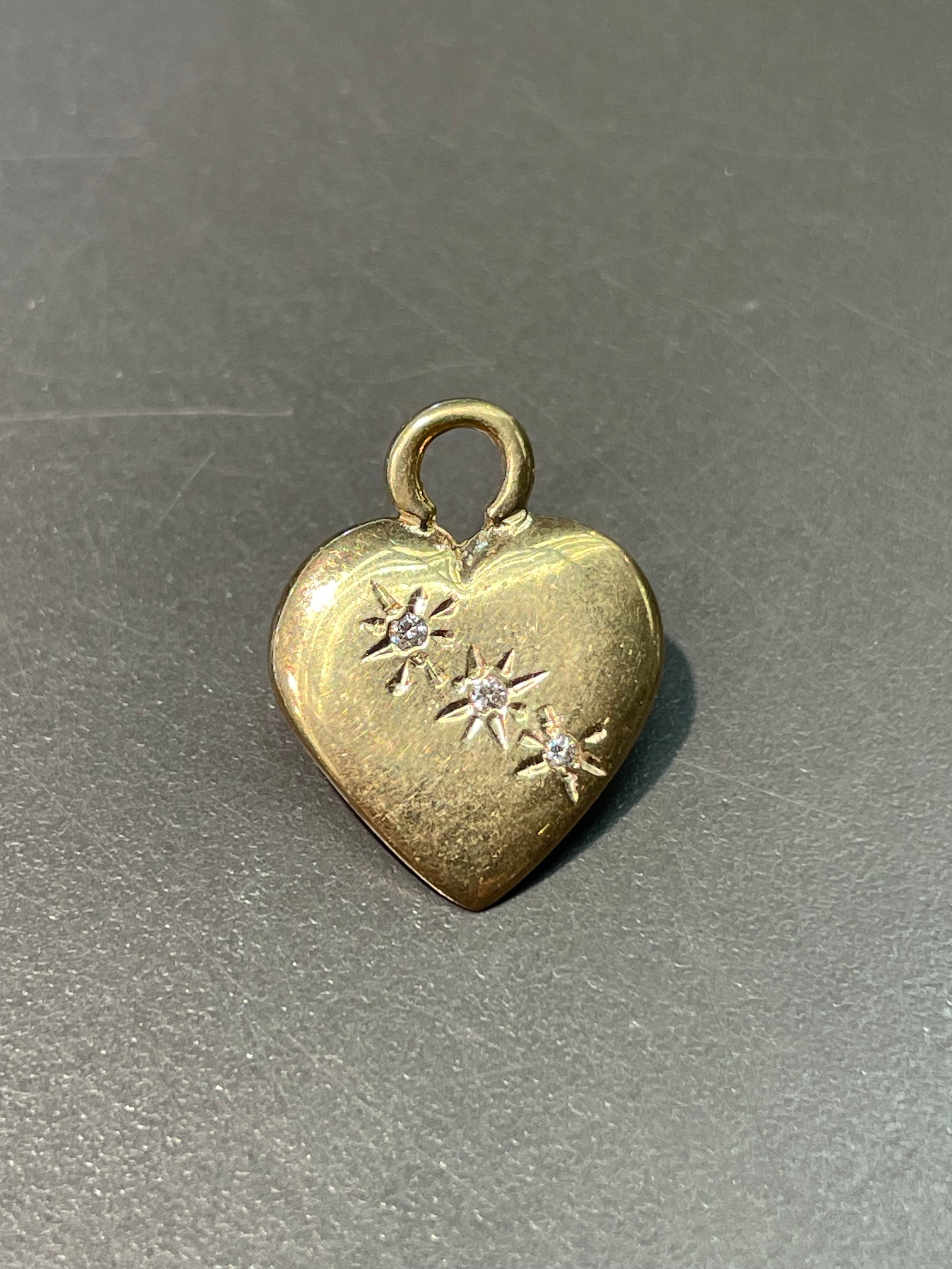 复古 14K 黄金 0.06 CTW 钻石星形心形吊坠