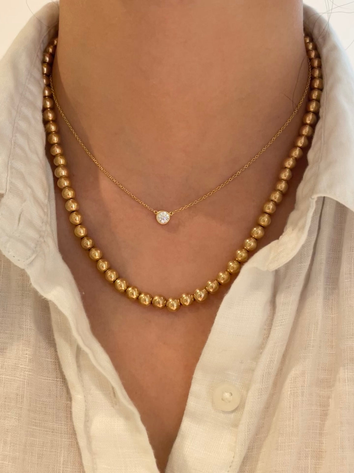Vintage 14K Yellow Gold 6.0 mm Bead Necklace