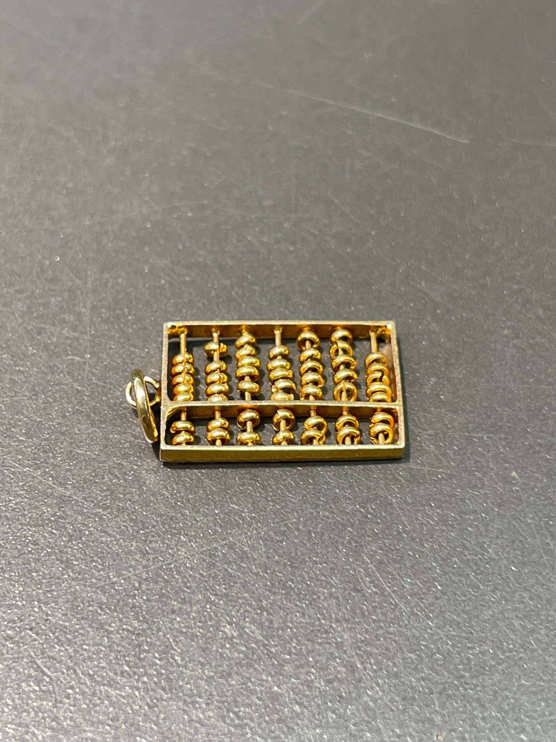 A vintage 14K gold abacus charm with articulating tiny beads that move in action.