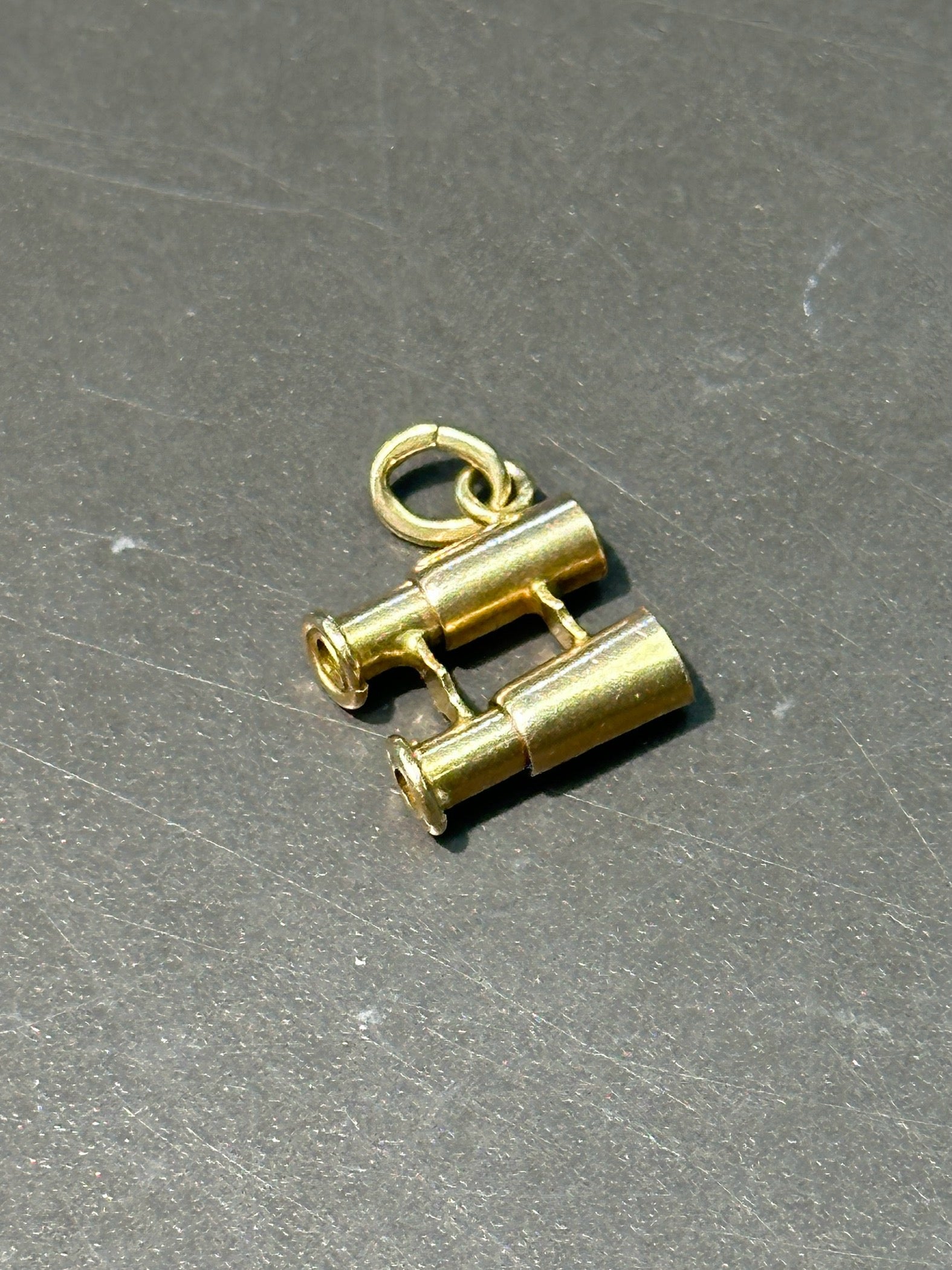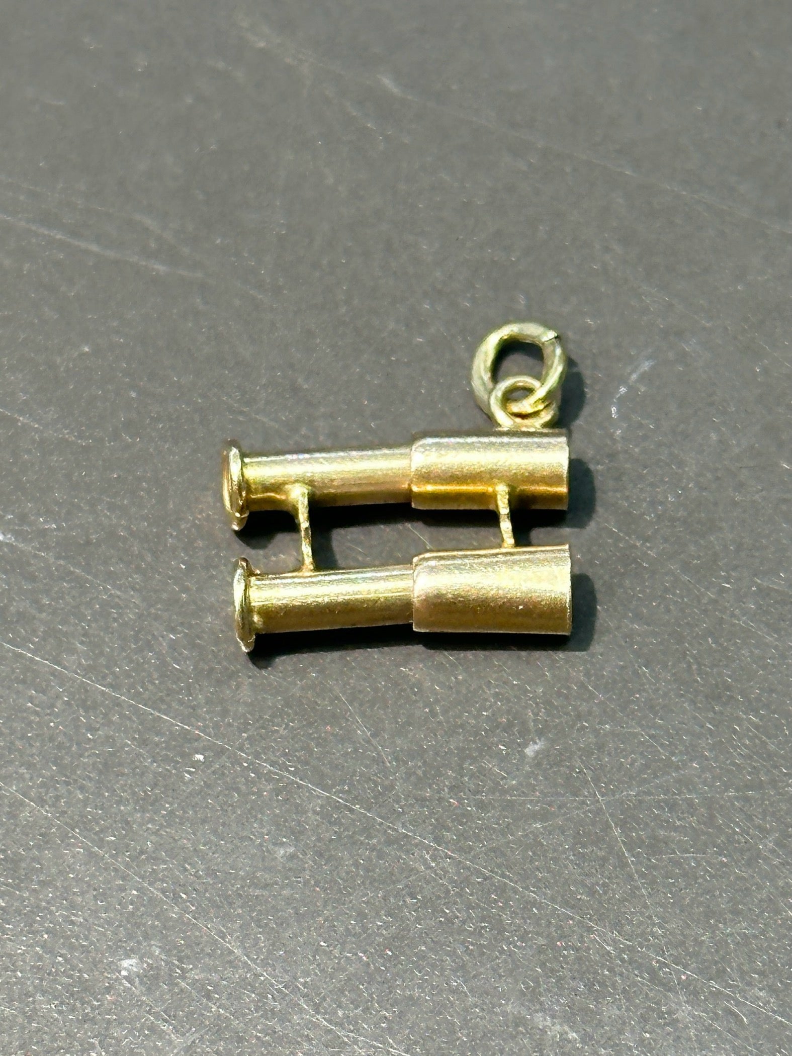 复古 14K 黄金铰接式双筒望远镜吊饰