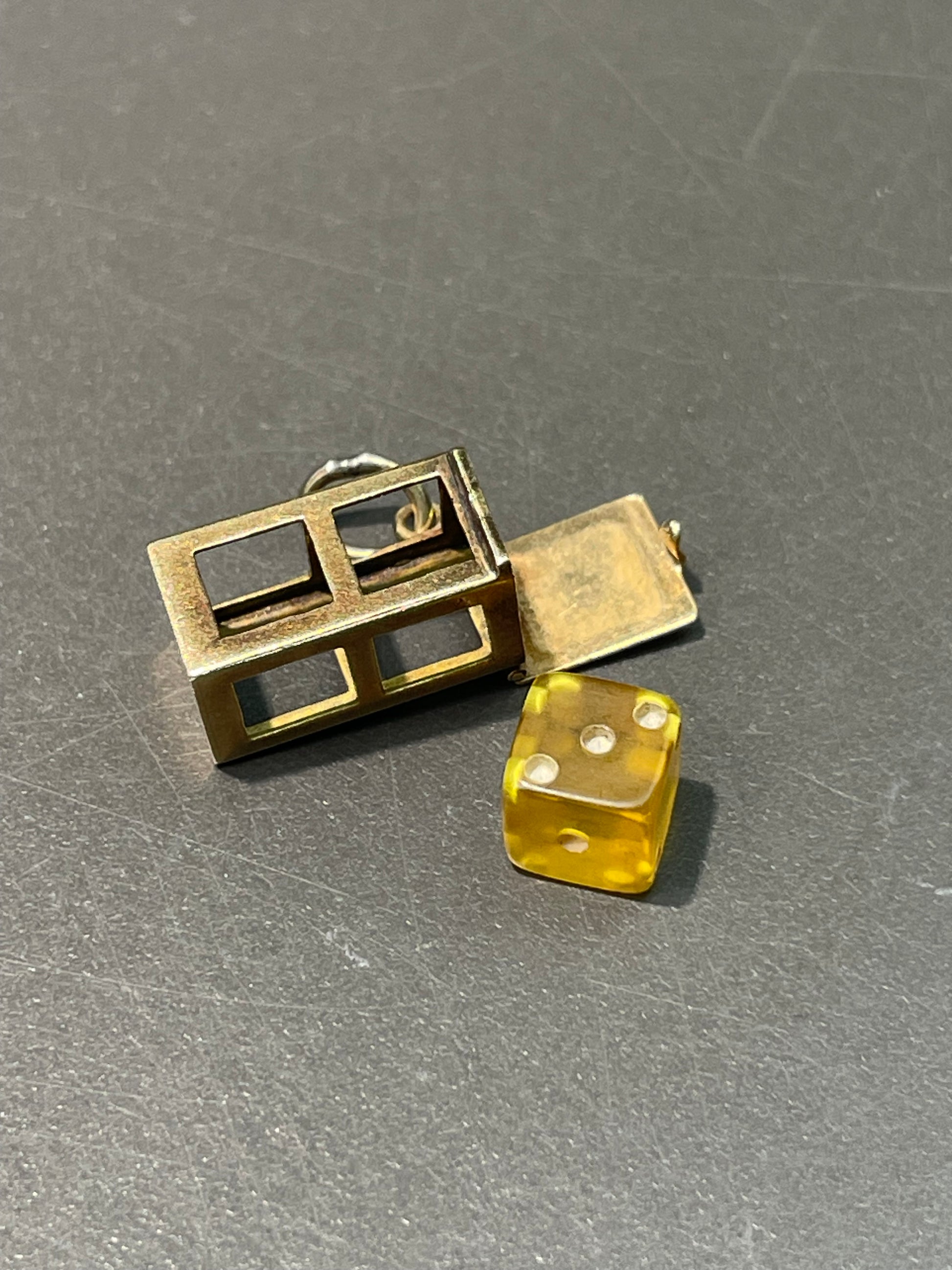 A utterly cool miniature 14K gold removable dice holder charm pendant.