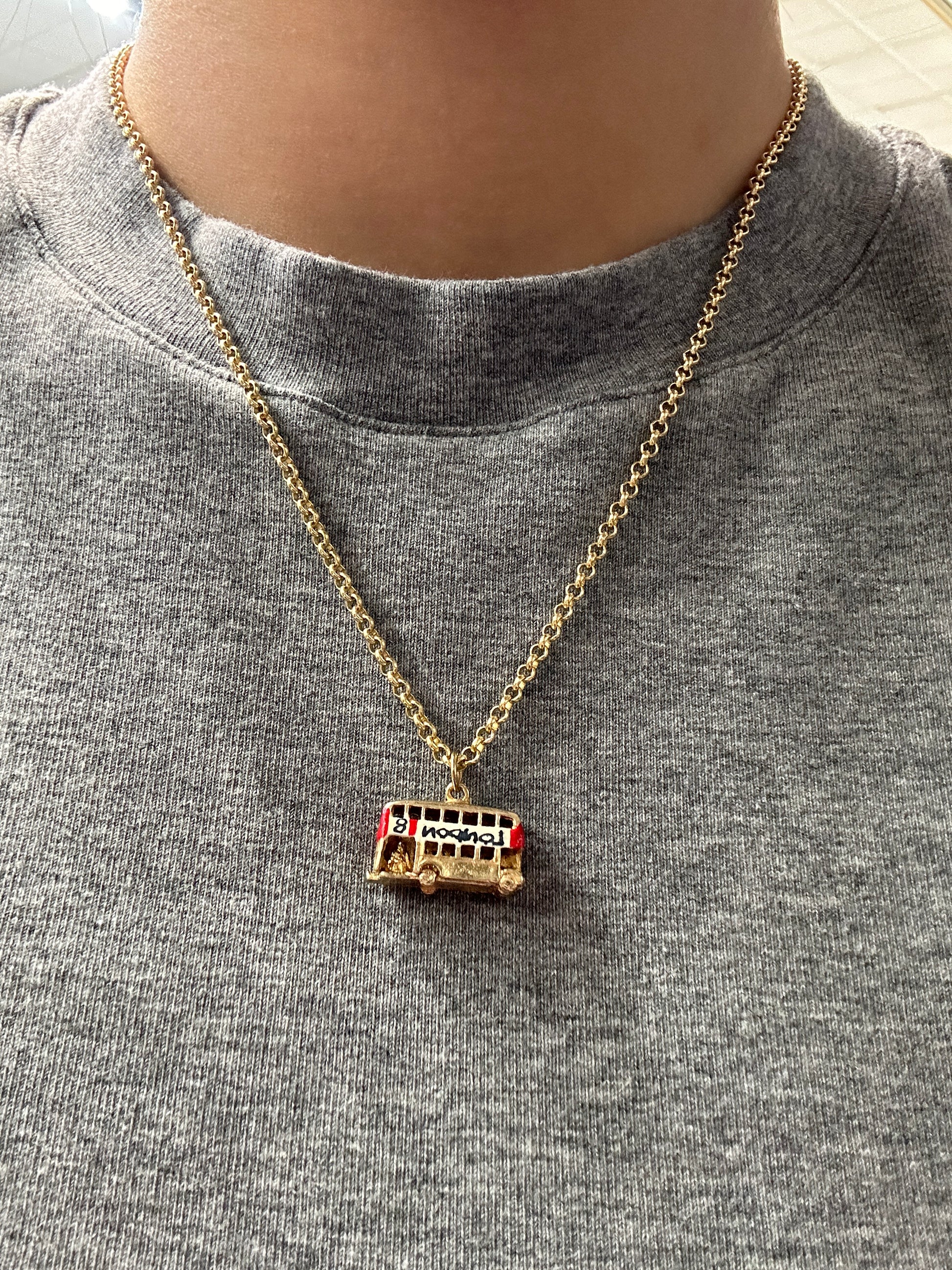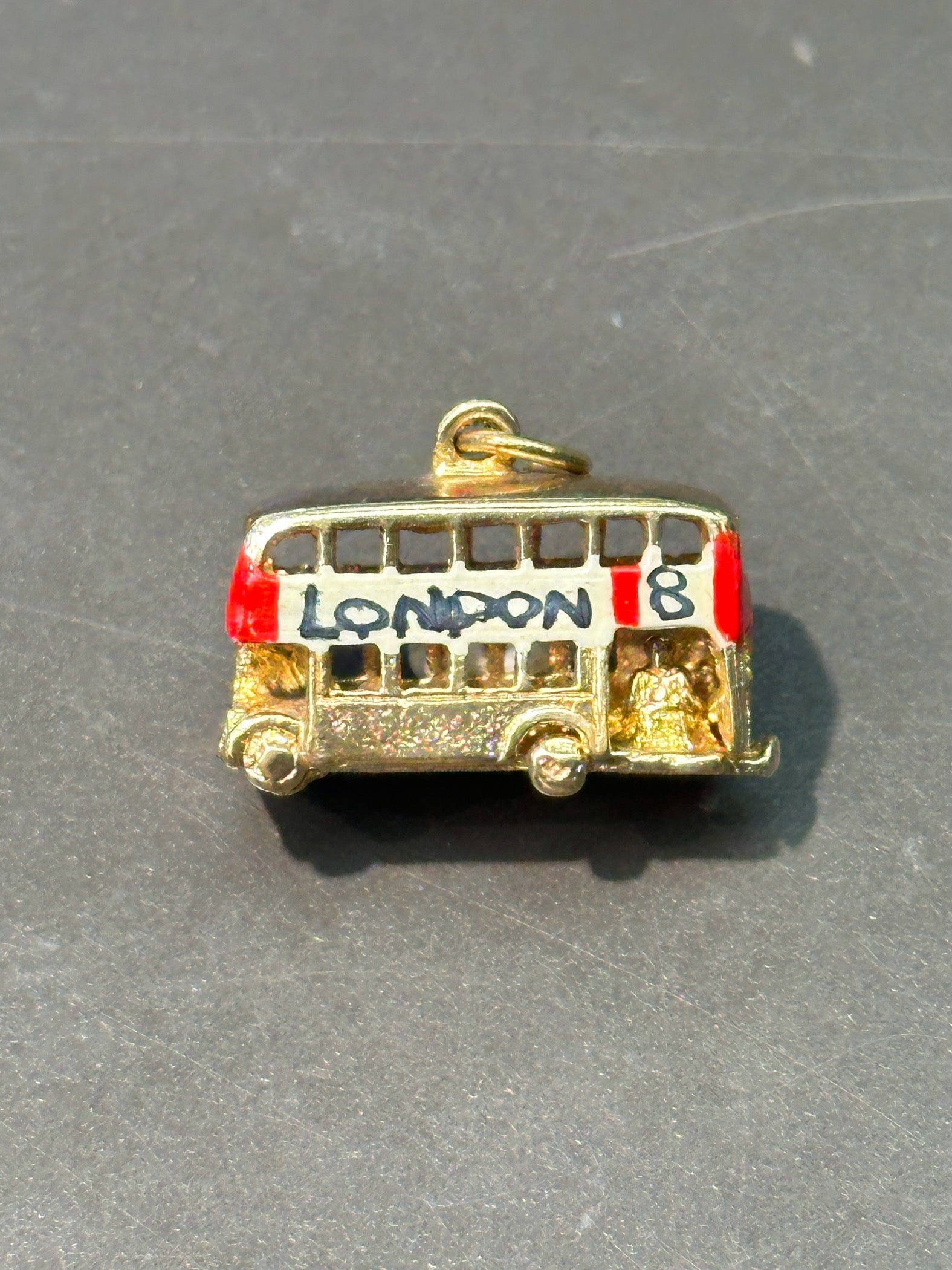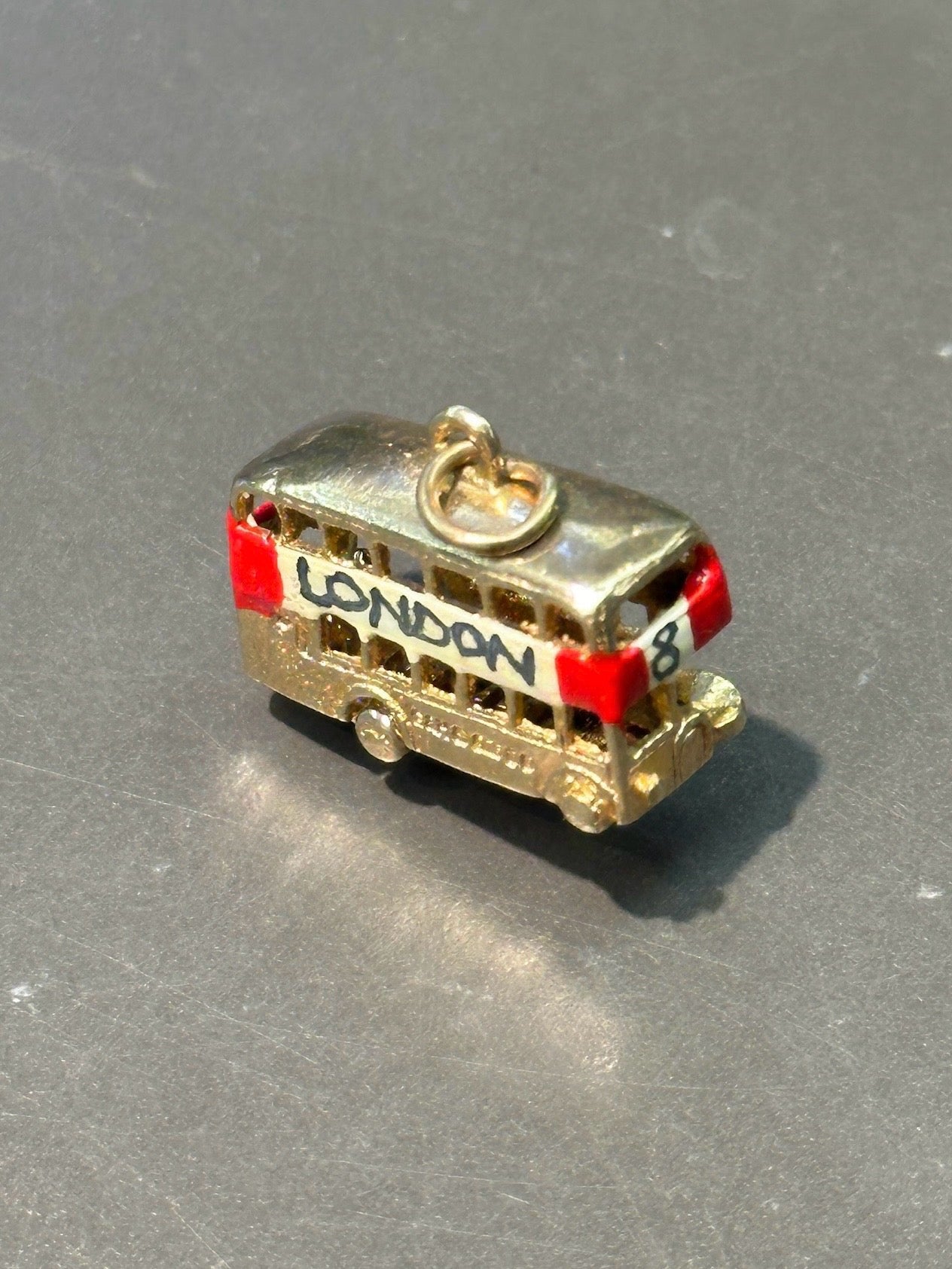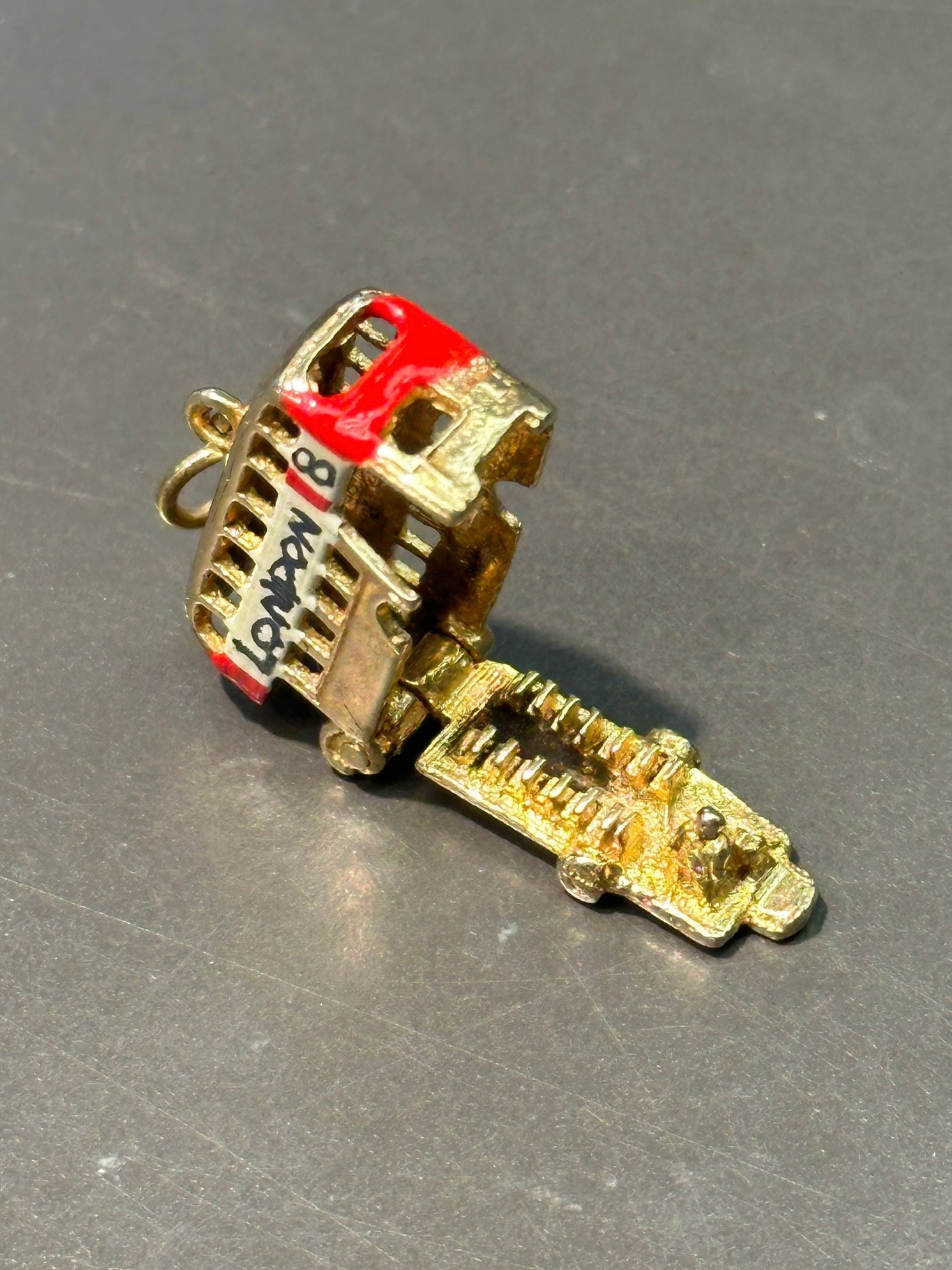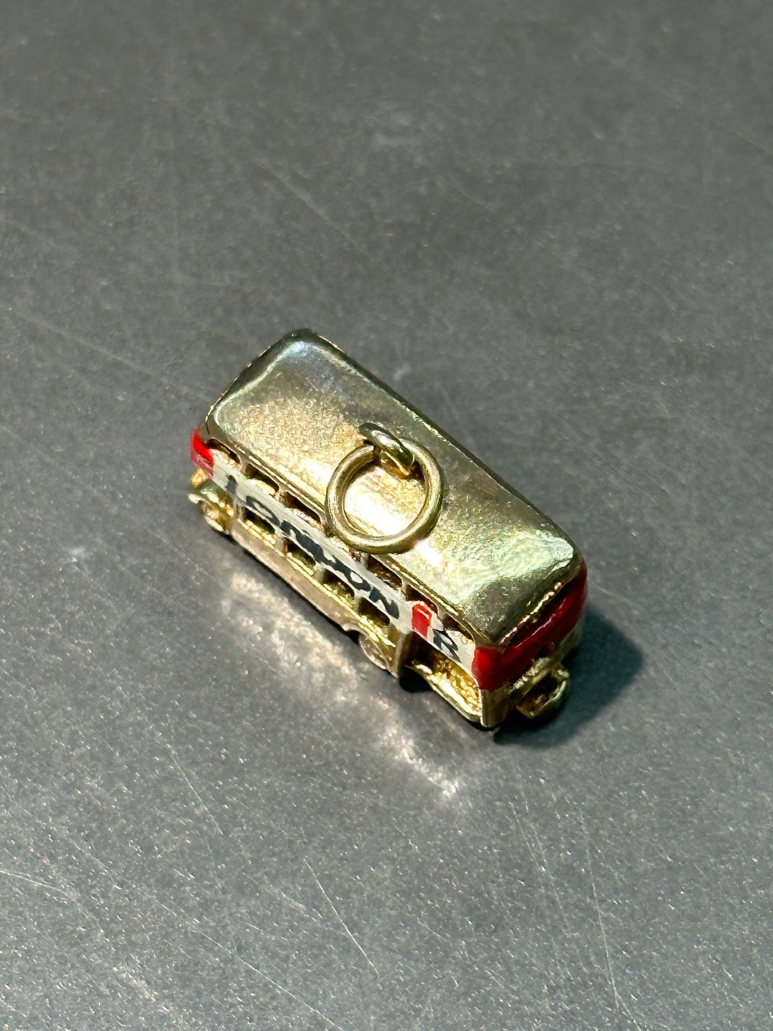复古 14K 黄金伦敦双层巴士珐琅吊饰