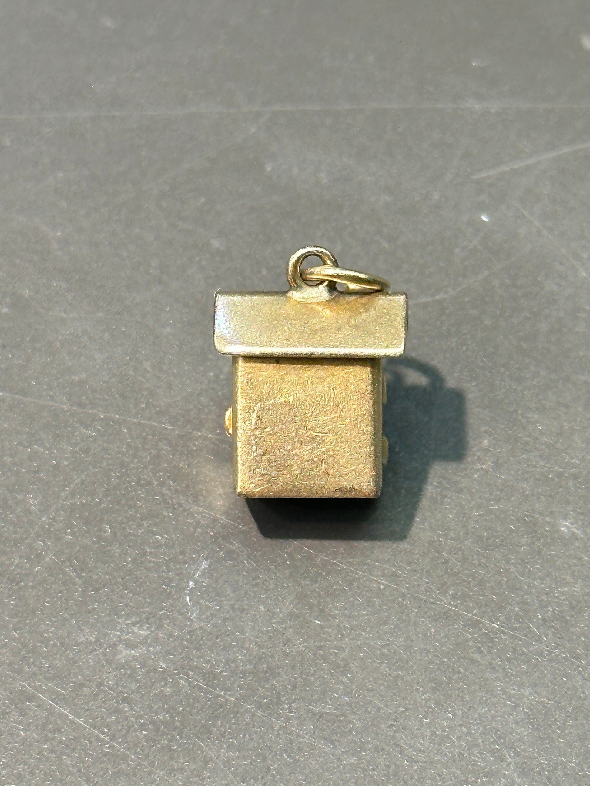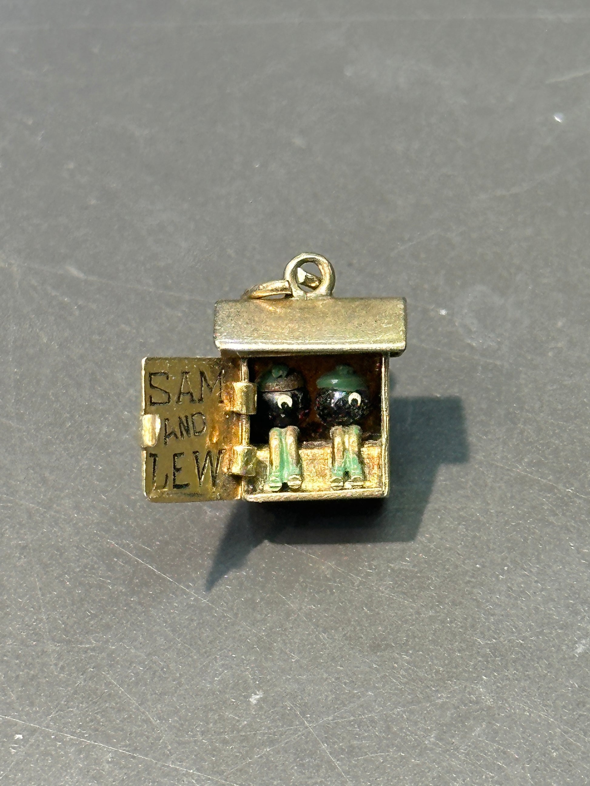 复古 14K 黄金 Sam 和 Lew 户外厕所珐琅吊饰