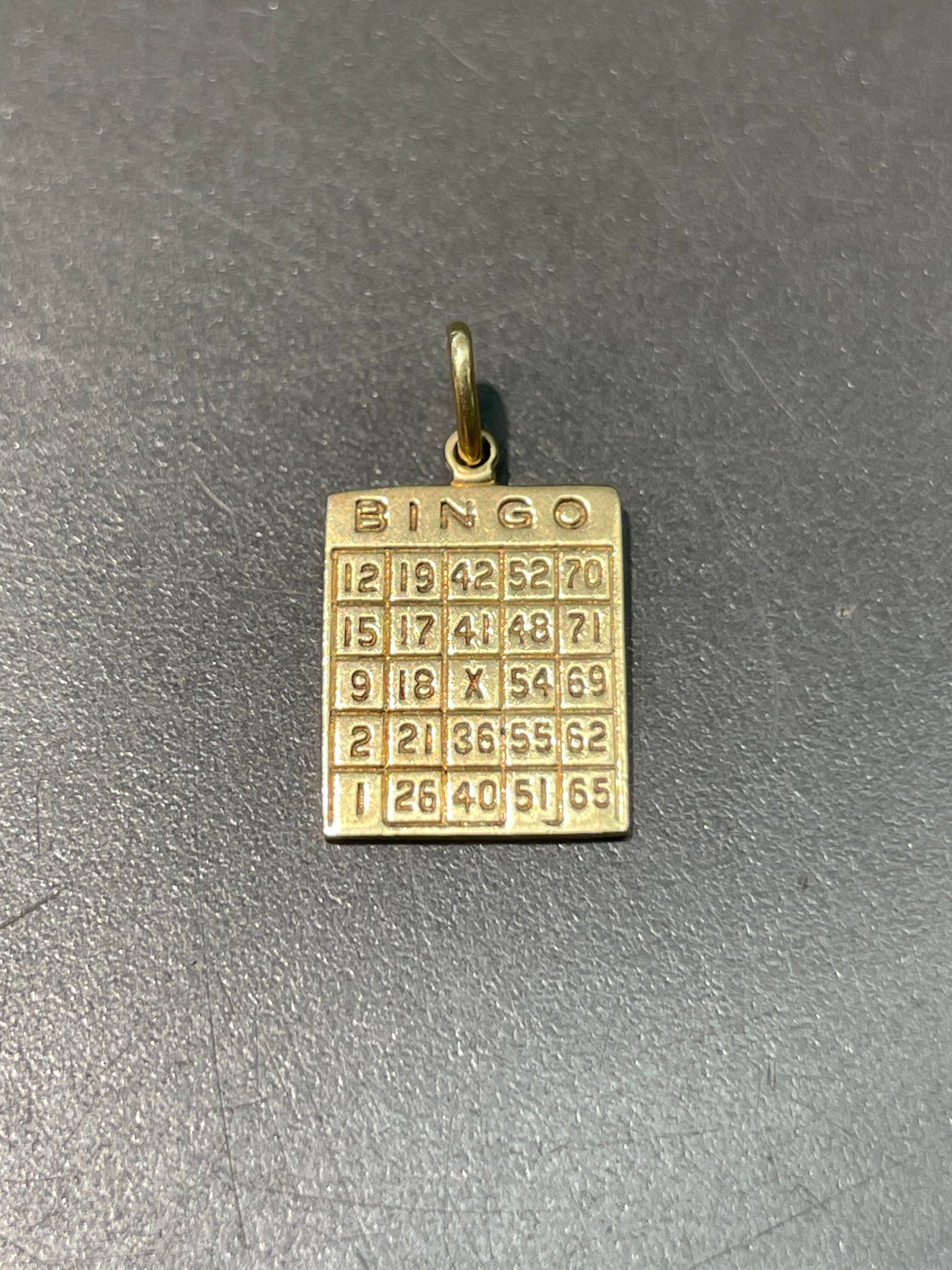 Vintage 14K Yellow Gold Bingo Board Game Charm Pendant